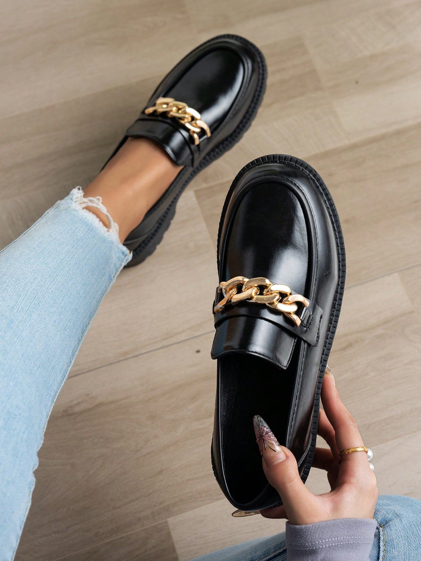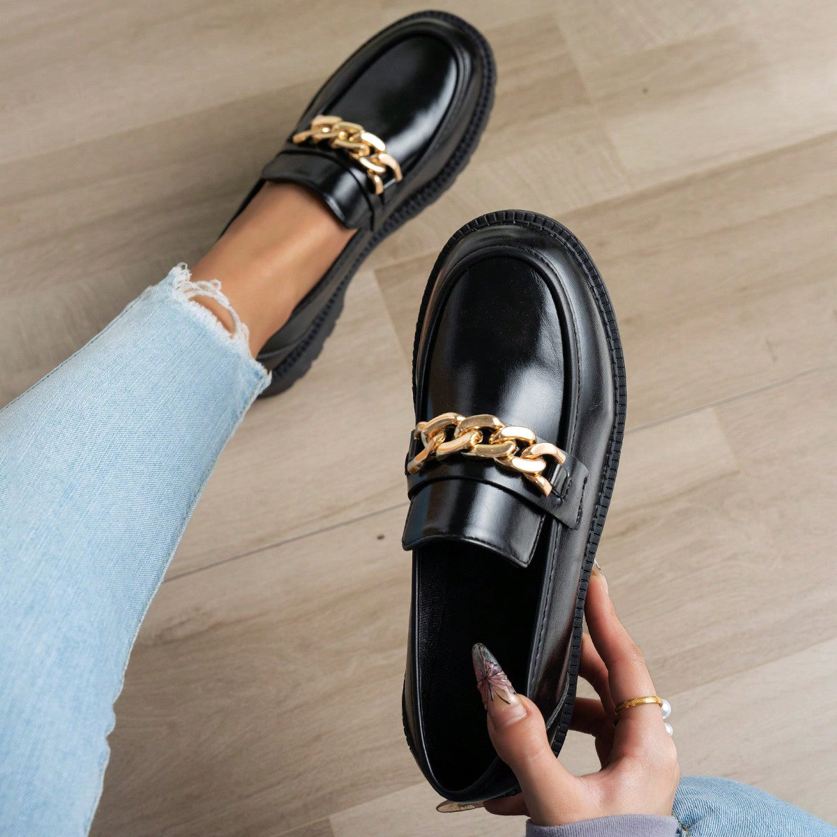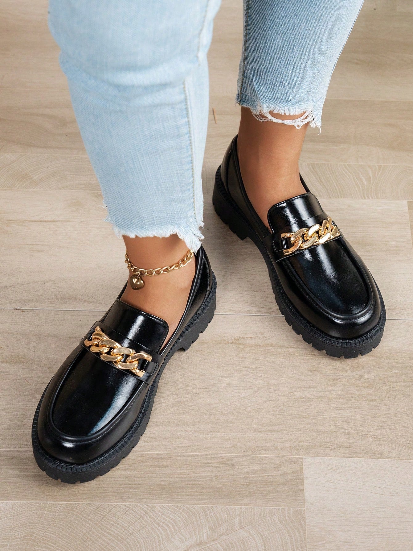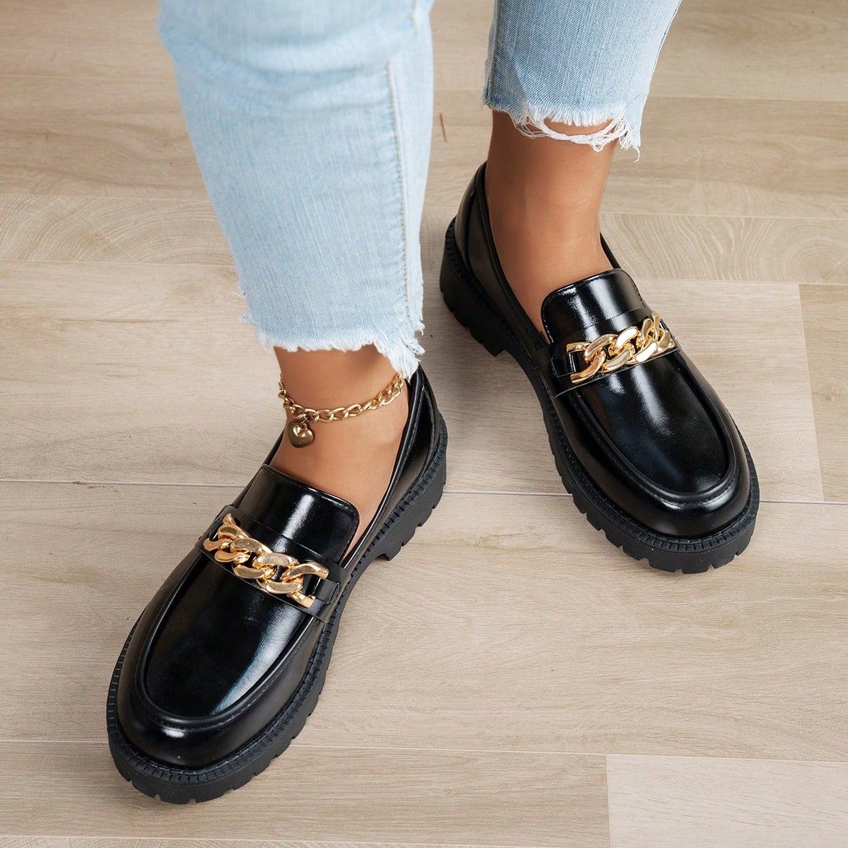 لوافر نسائي بشريط سحاب أسود بسيط، قاع ناعم وجذاب مريح وغير منزلق، مزين بسلسلة معدنية، طراز كاجوال متعدد الاستخدامات وكوليجي