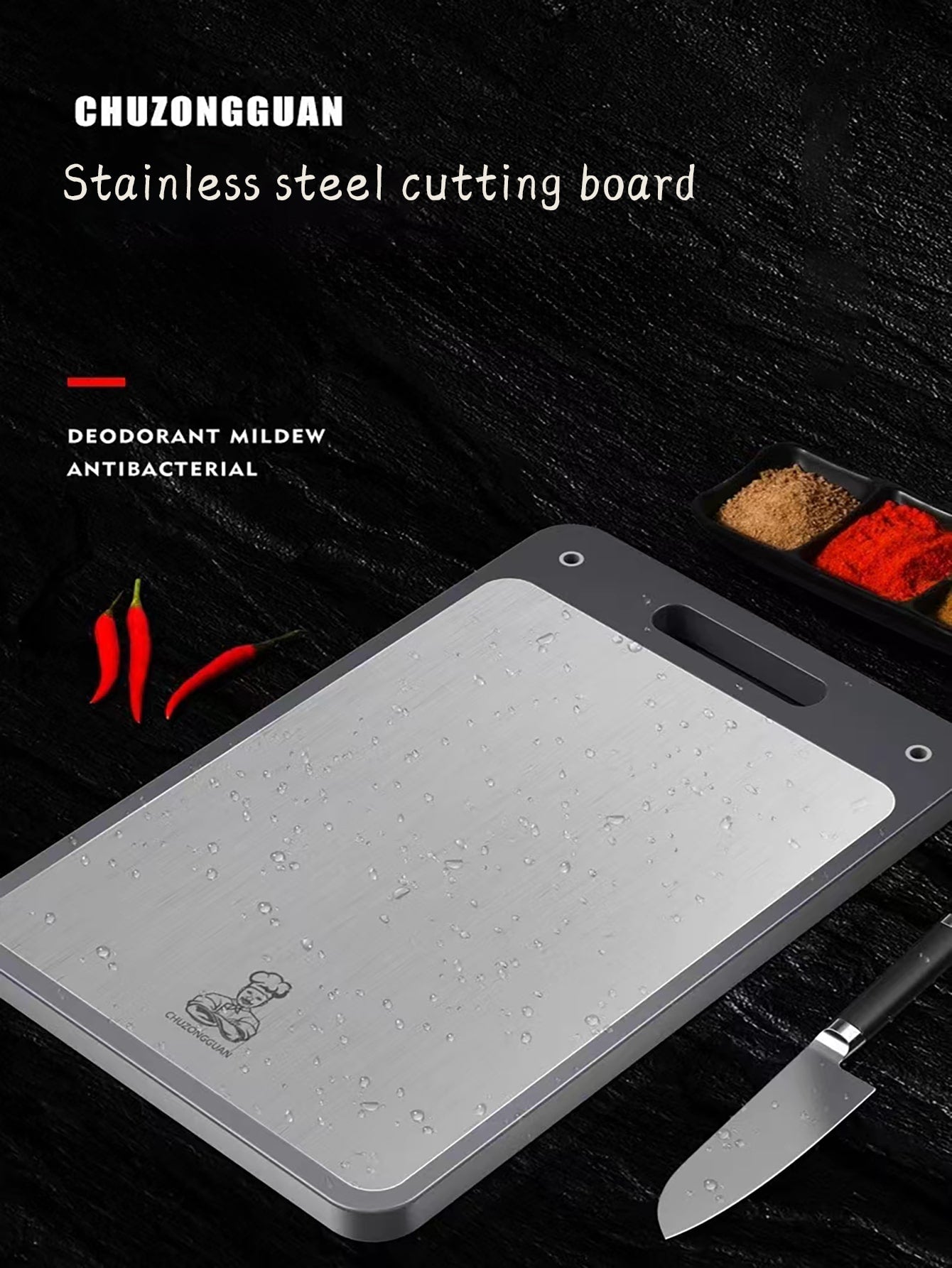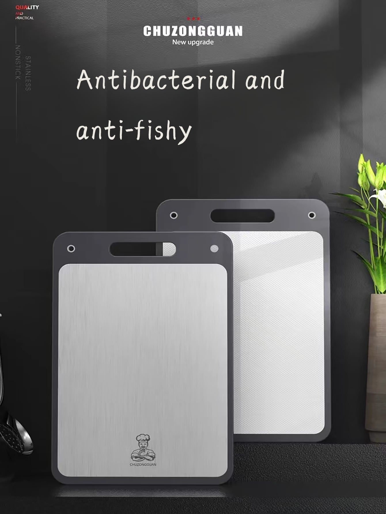 لوح قطع مزدوج من الفولاذ المقاوم للصدأ قابل للثني للمنزل، لوح تقطيع مطبخي سميك مضاد للبكتيريا و العفن مع صينية بلاستيكية