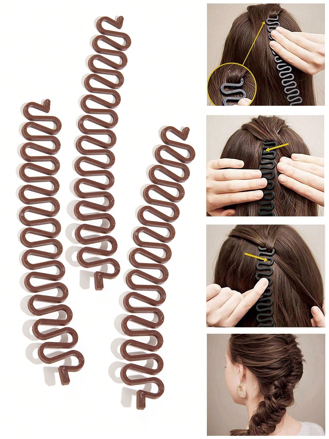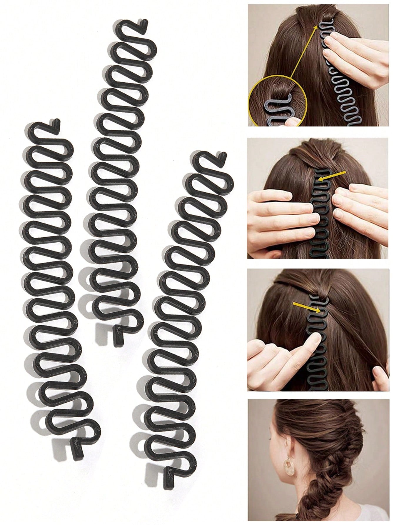 مجموعة أدوات تصفيف الشعر الكسولة مكونة من 3 قطع (3 ضفائر مختلفة) لضفائر هيكل السمكة واللف الفرنسي وضفائر الشلال وما إلى ذلك
