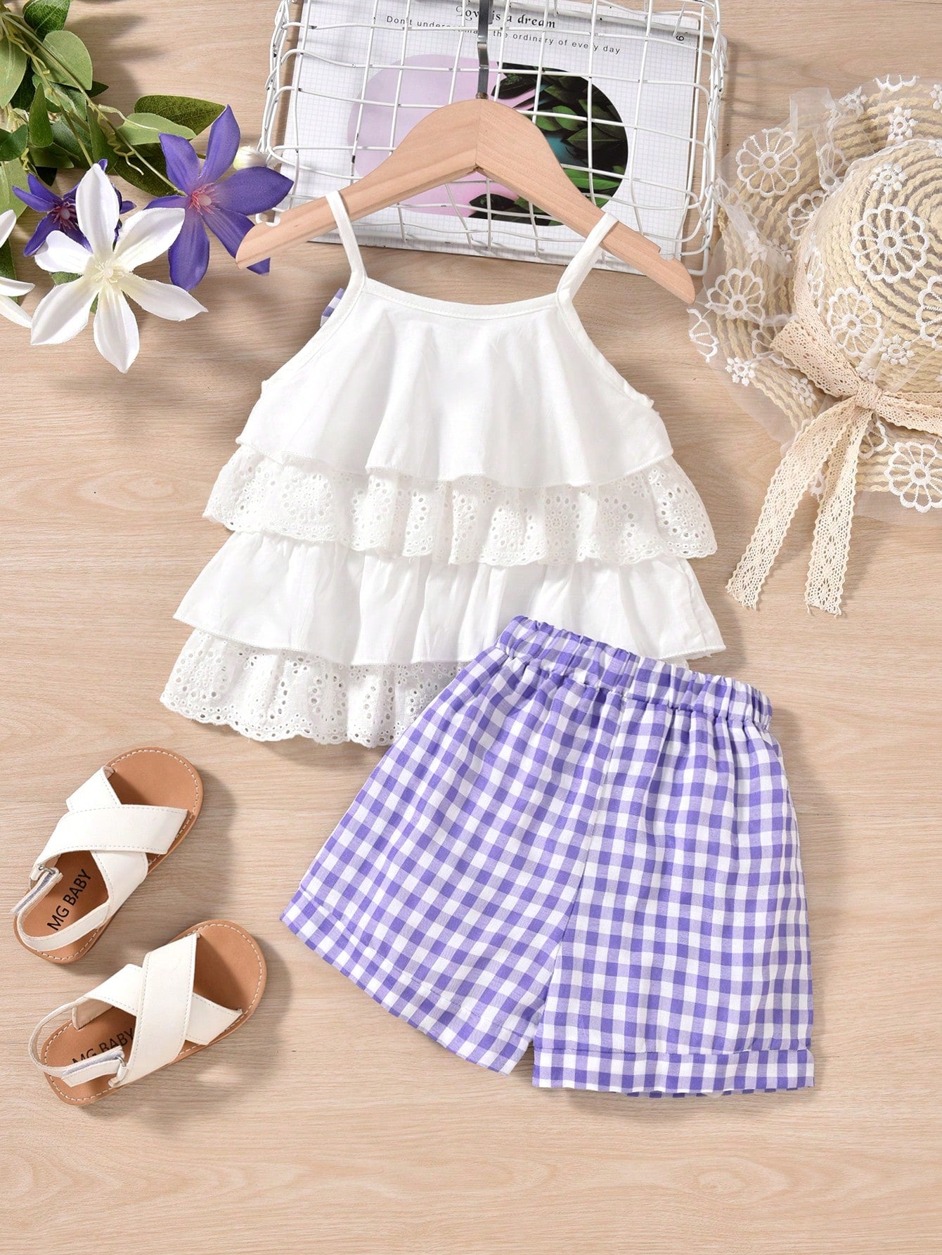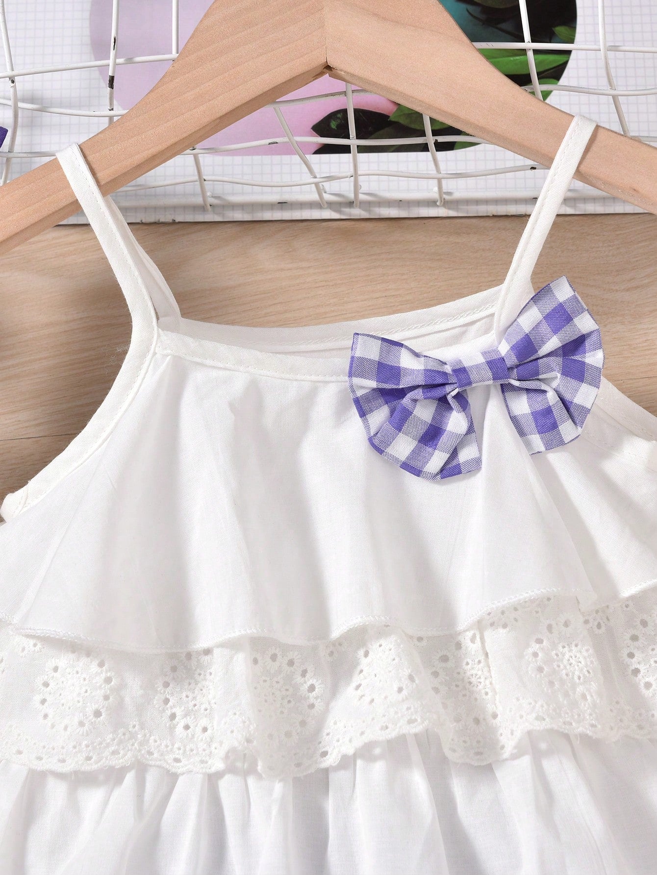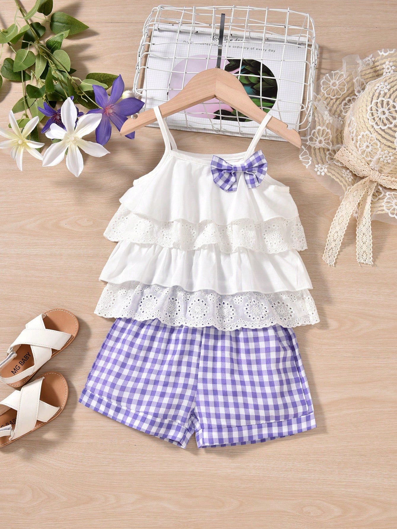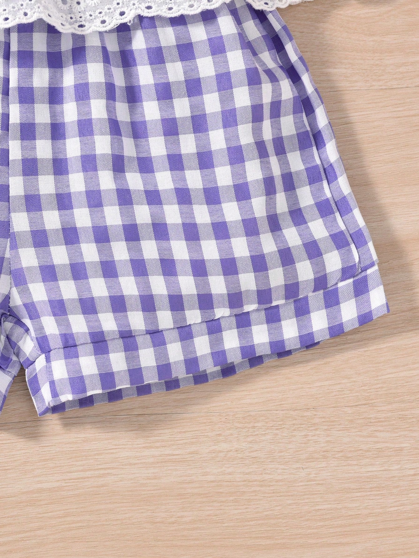 مجموعة القميص بدون أكمام البنات الصغيرات بتصميم الكشكشة الجذابة بقوس و ملابس السراويل بنمط المربعات