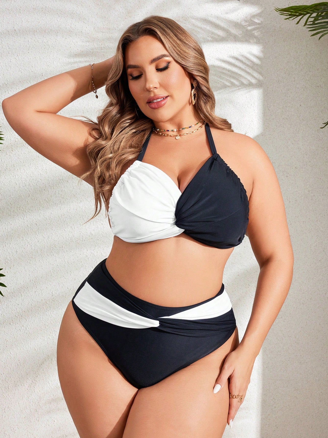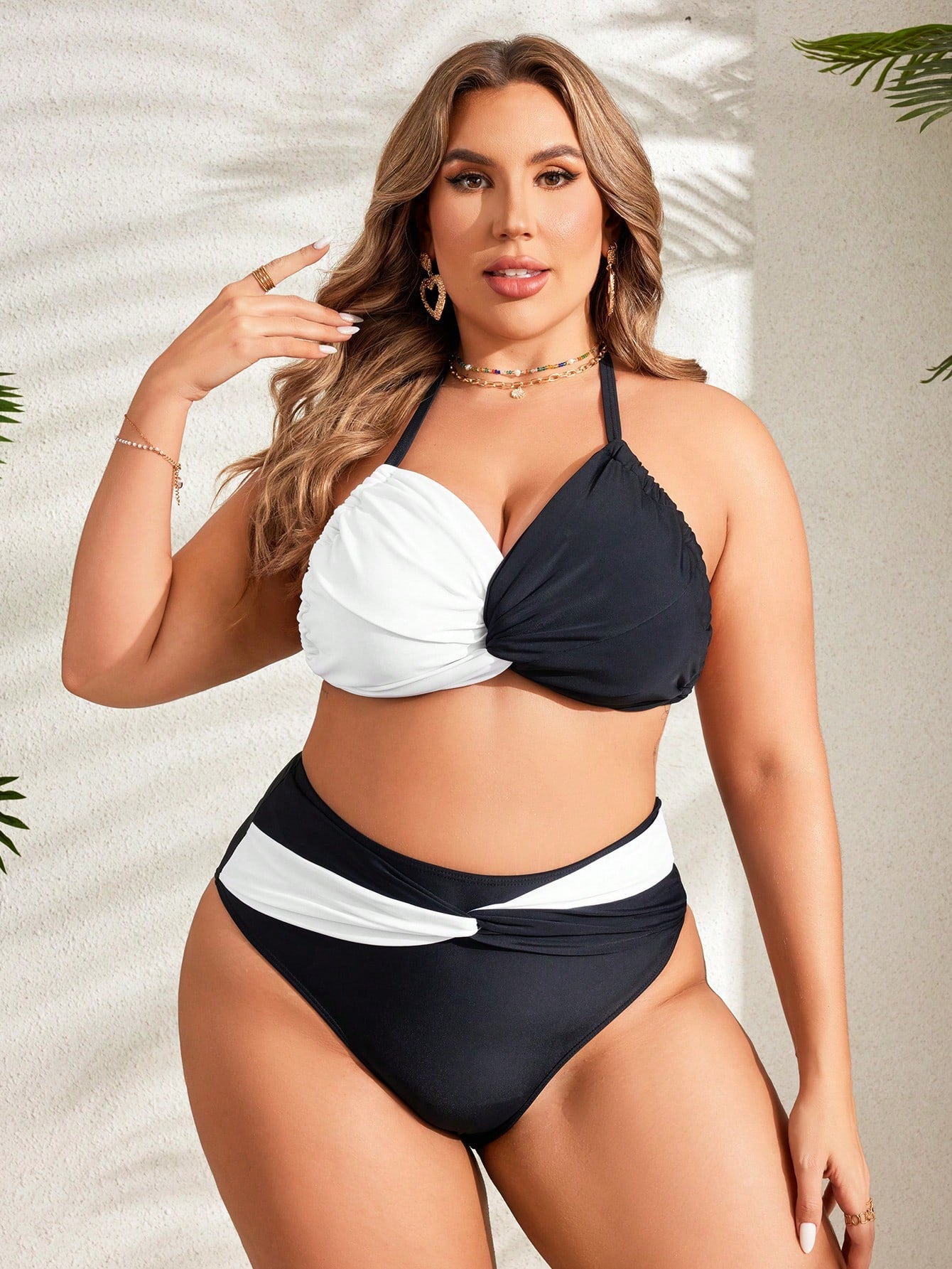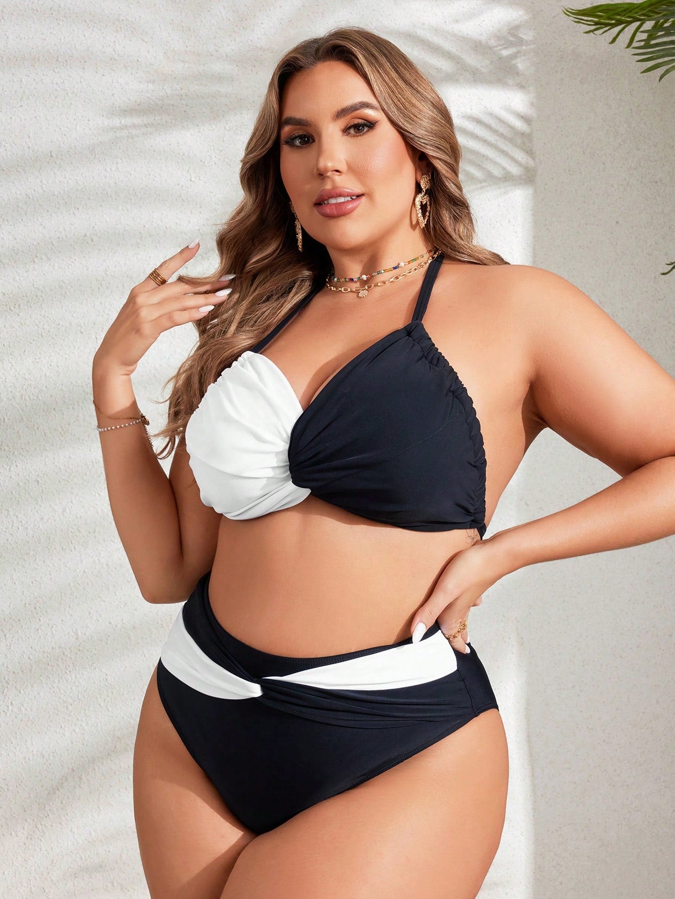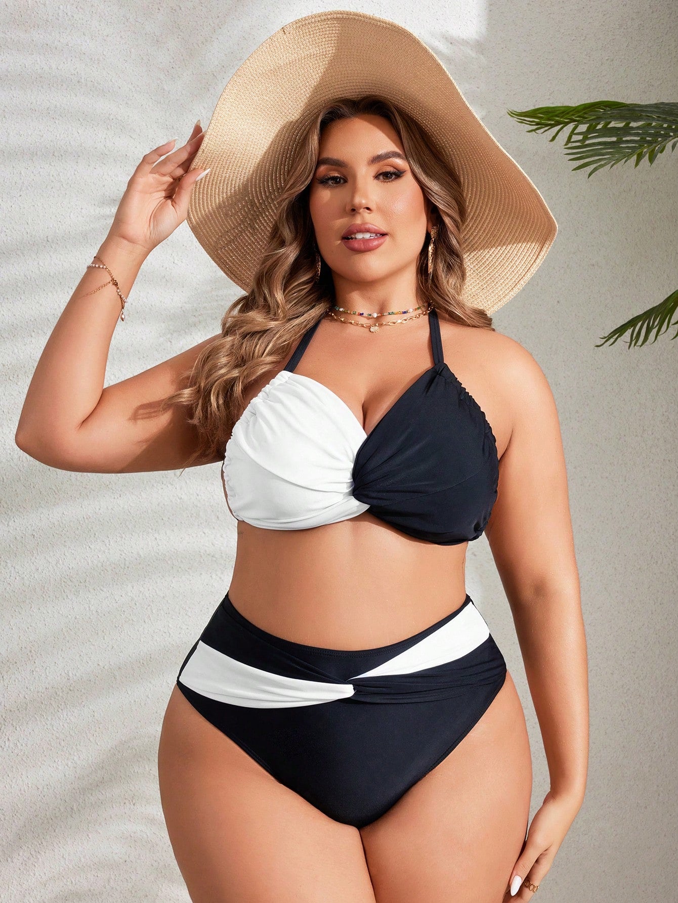 مجموعة بيكيني ملابس سباحة للشاطئ بألوان مختلفة وحجم كبير، تفاصيل أمامية ملتوية، الصيف