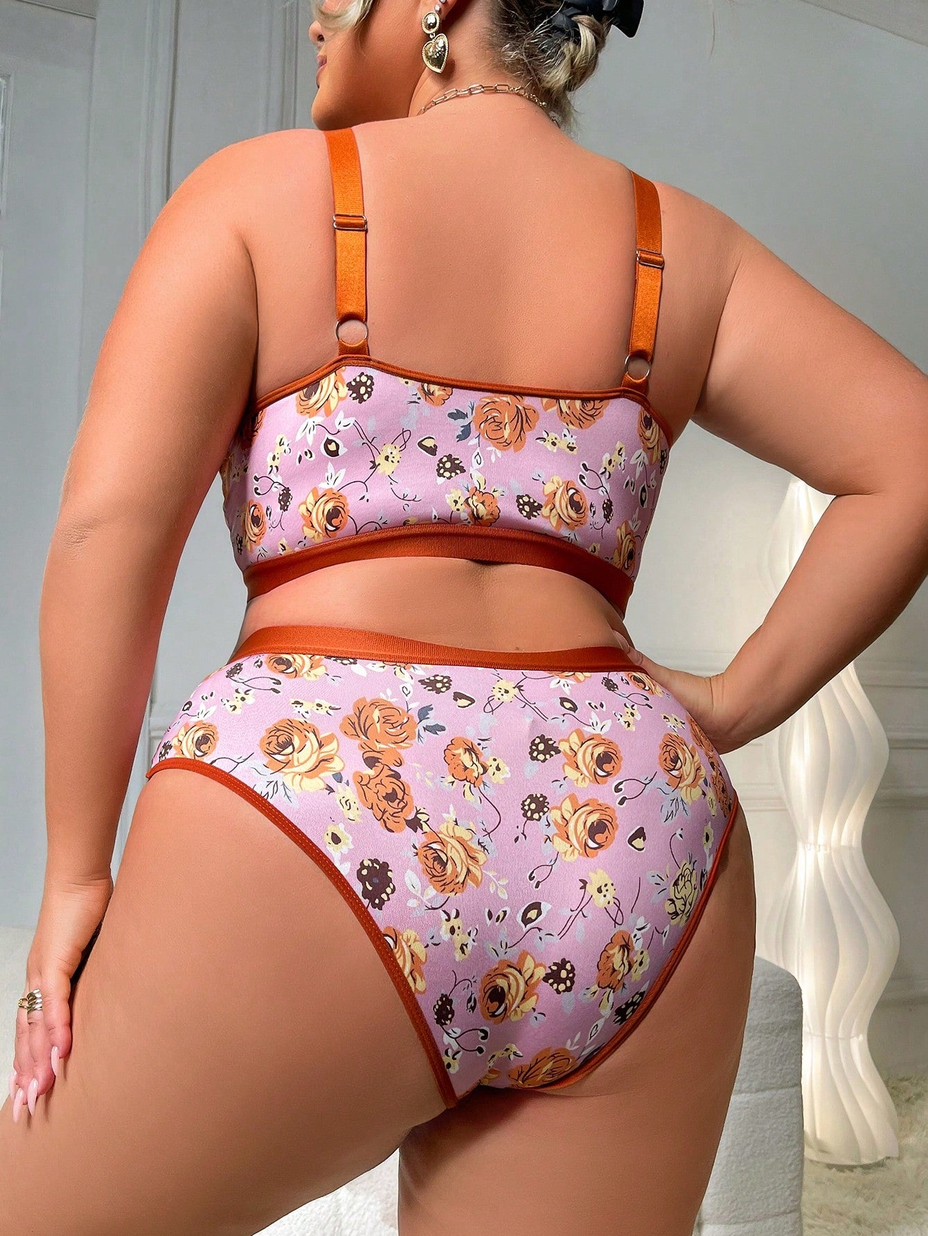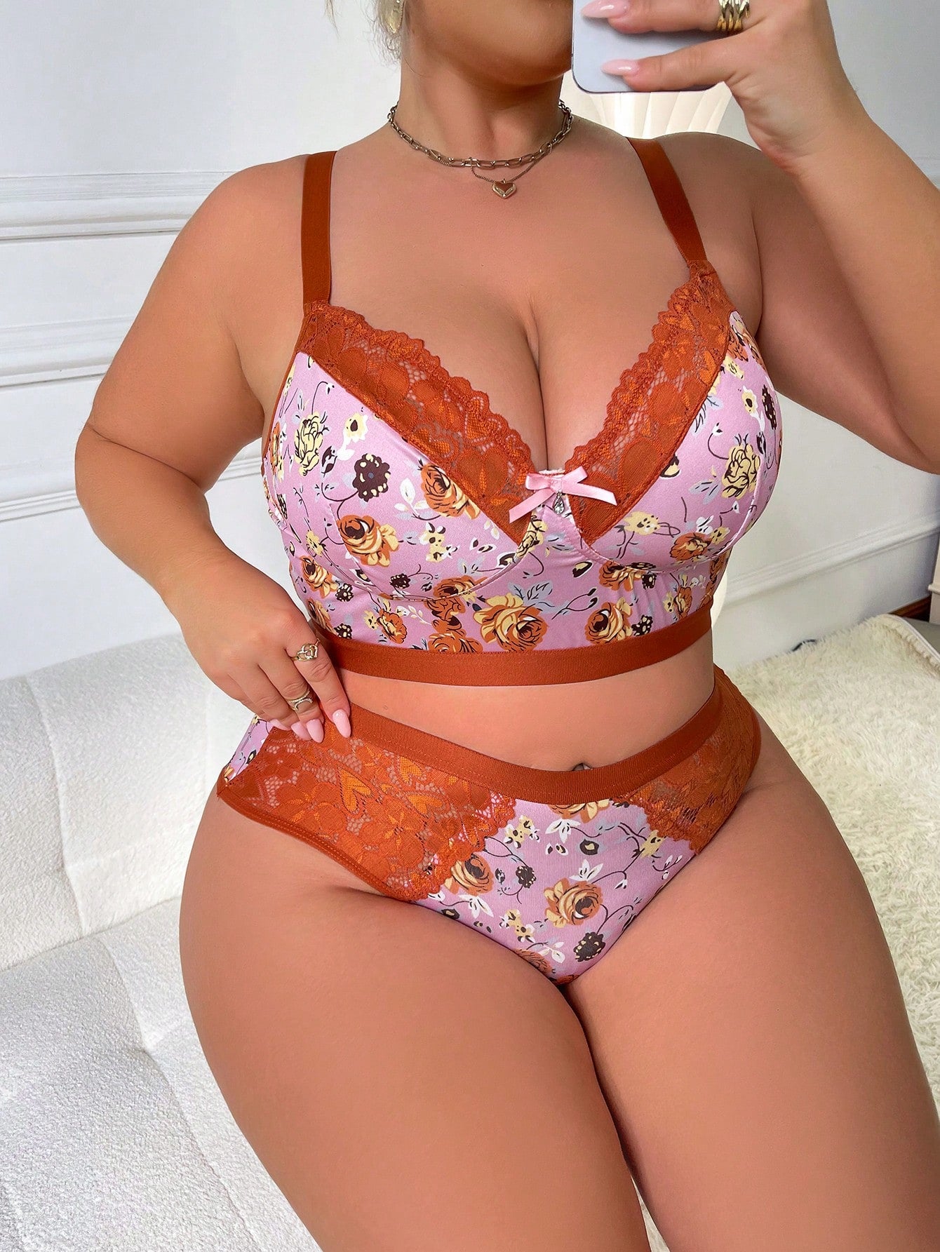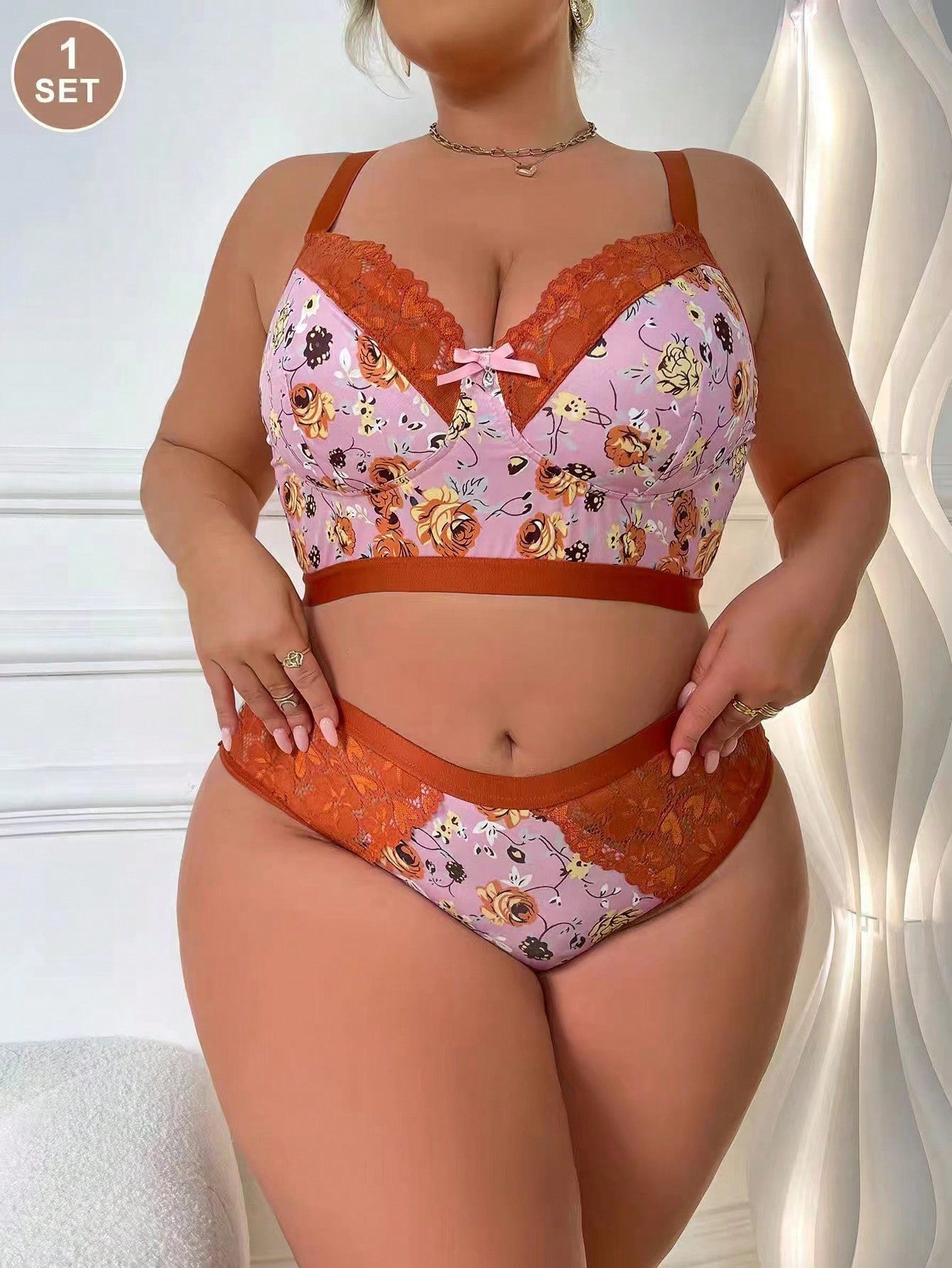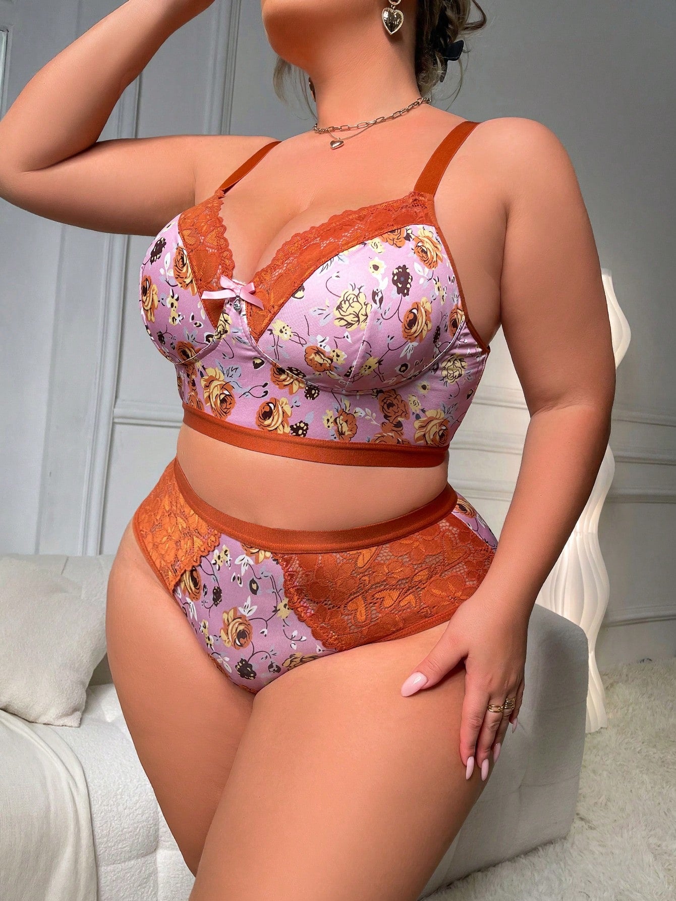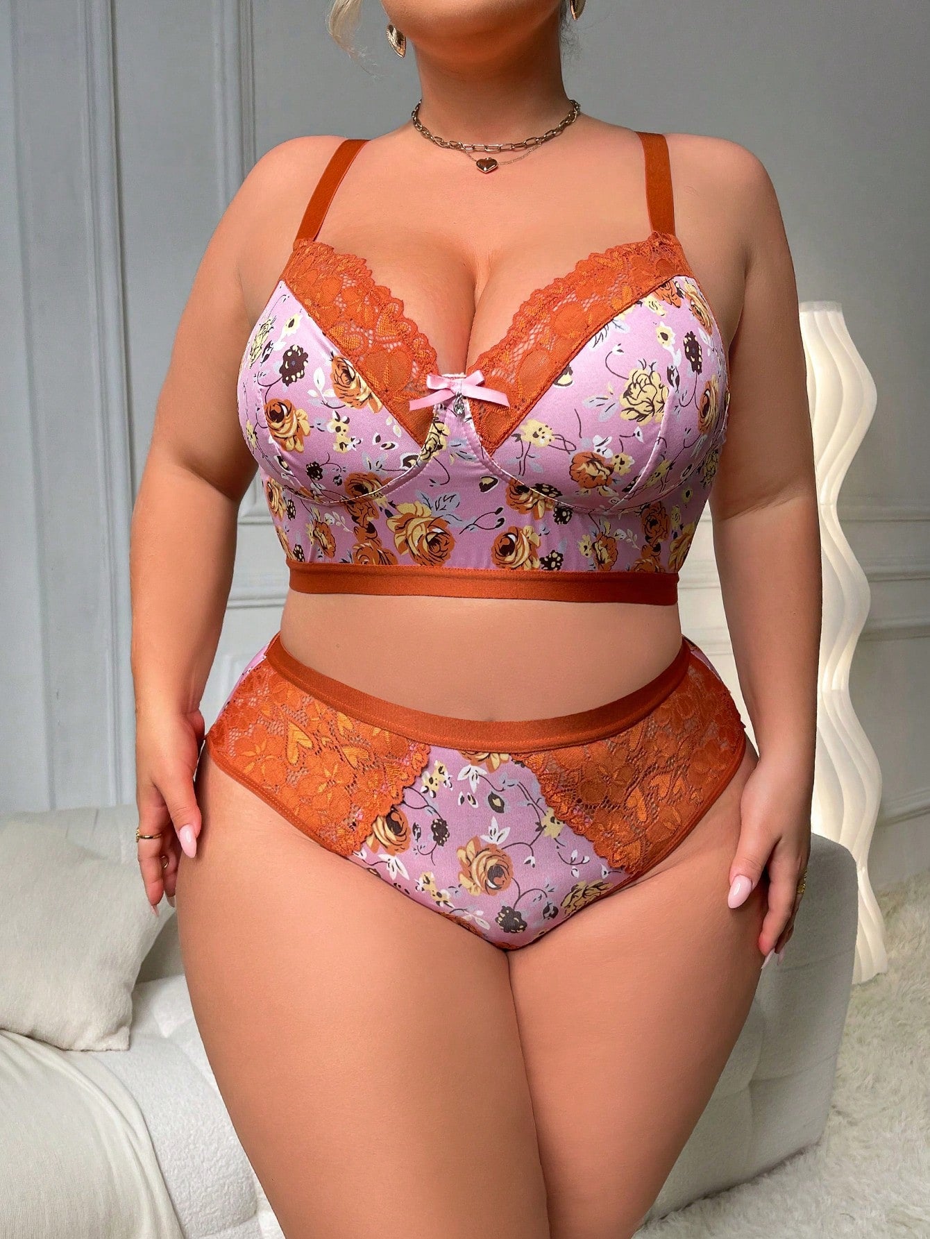 مجموعة صدرية نسائية مريحة لحجم كبير مثيرة بتصميم وردي زهري لاسلكي