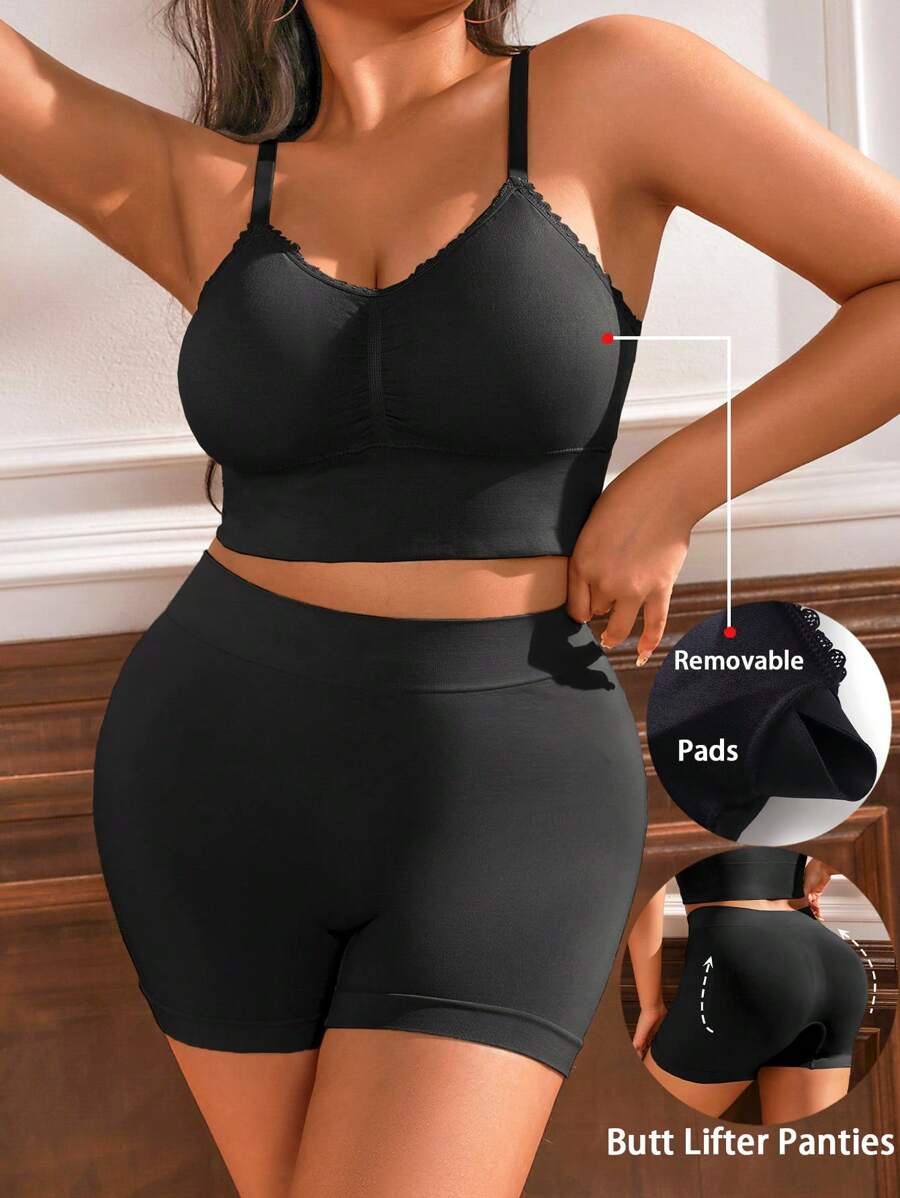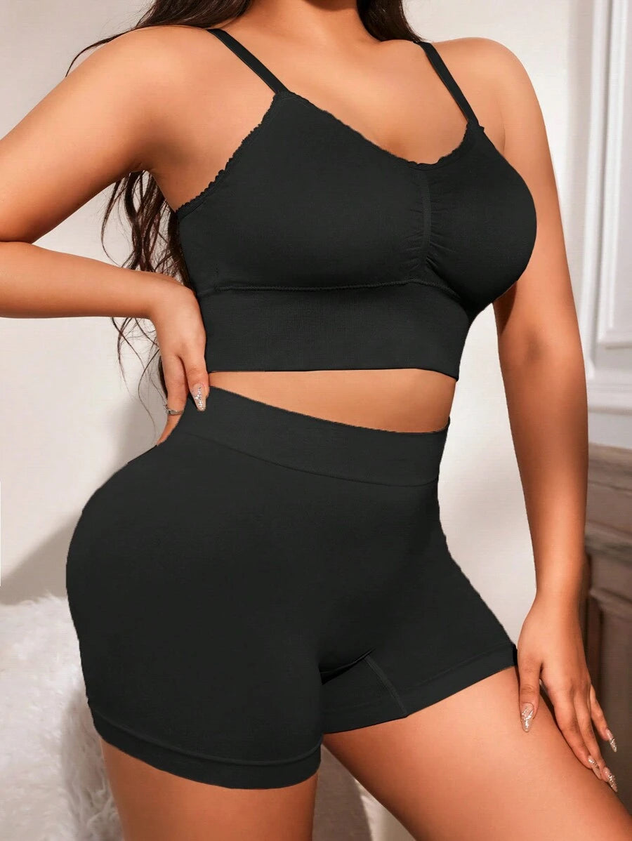 مجموعة صدرية يوغا بلس سايز متماسكة وسراويل رياضية