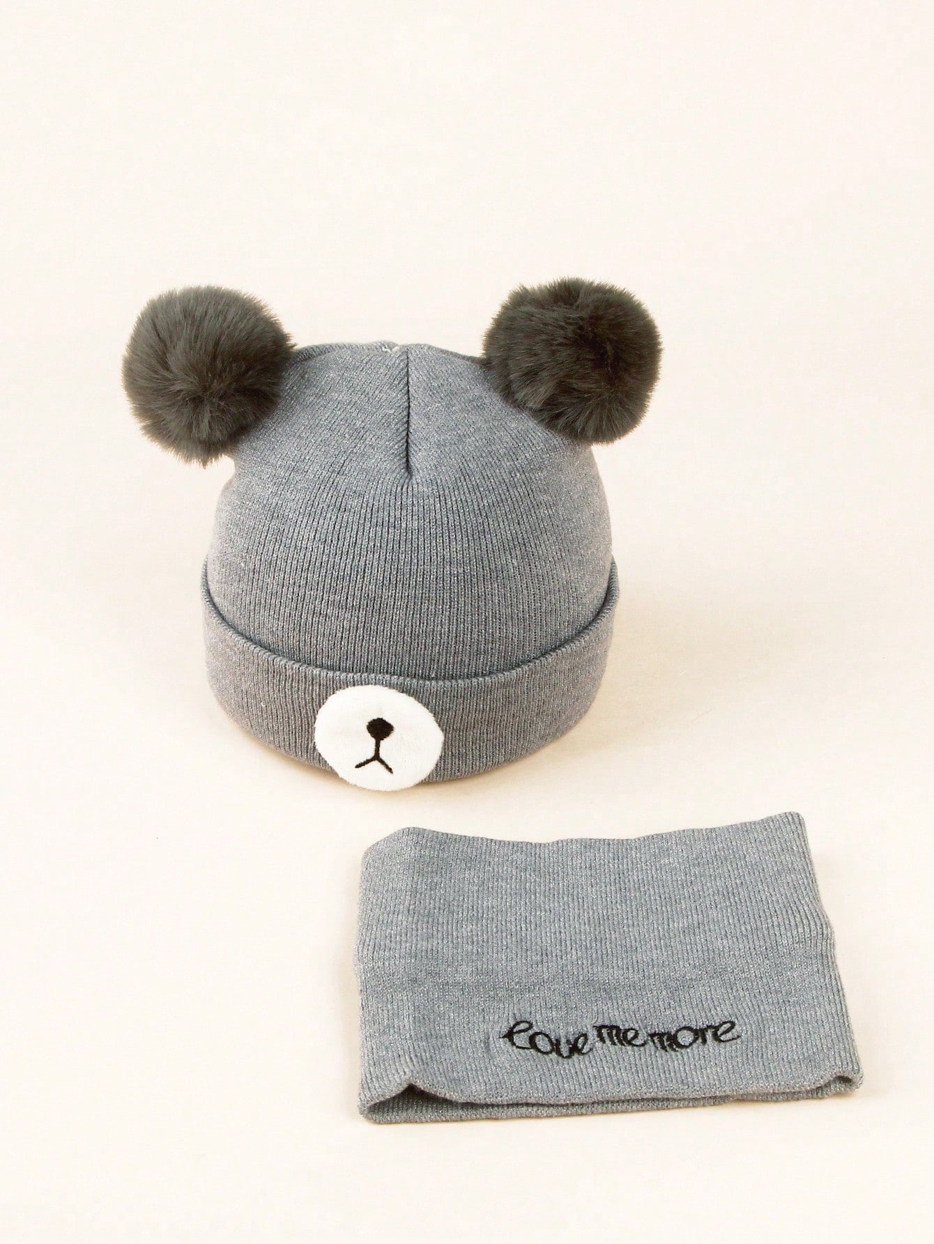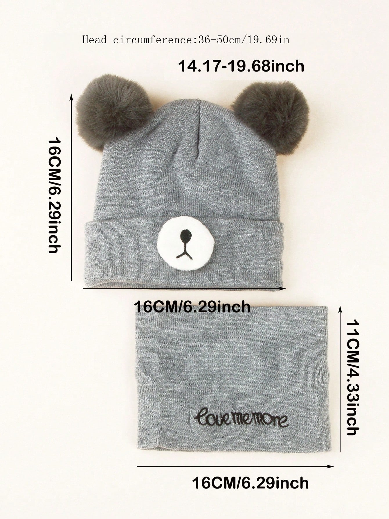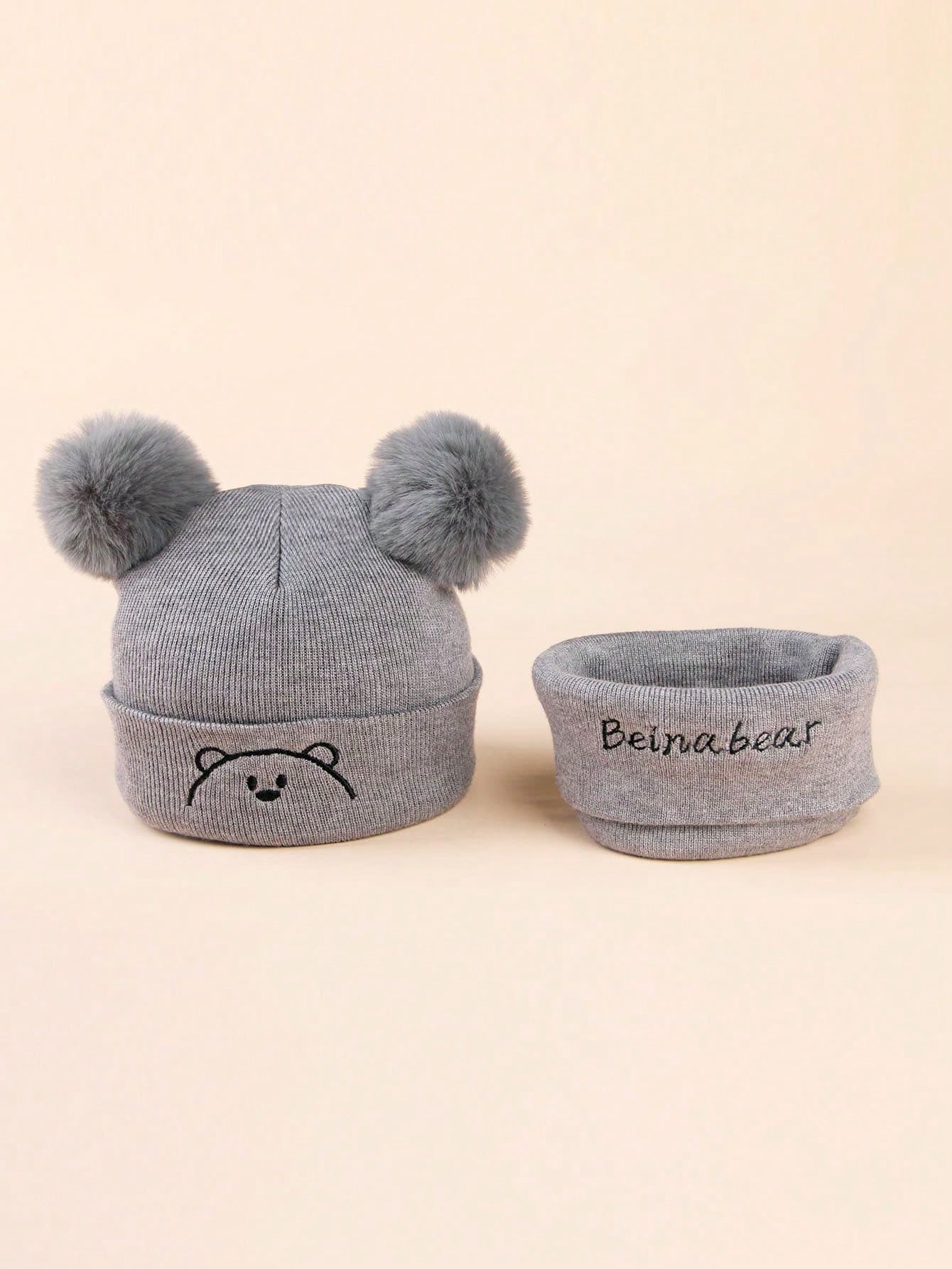 مجموعة قبعة وأوشحة مطرزة بالدب للأطفال الرضع والصغار 0-3 سنوات، لحفظ الدفء، قطعتان