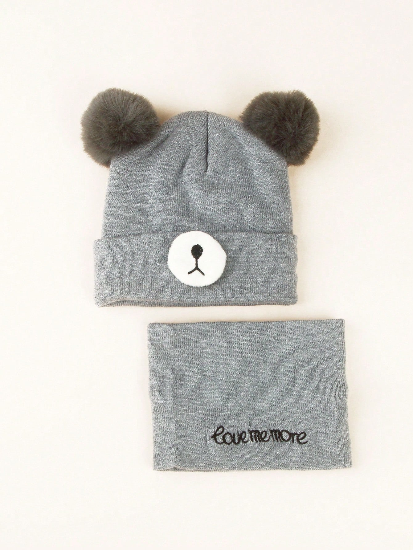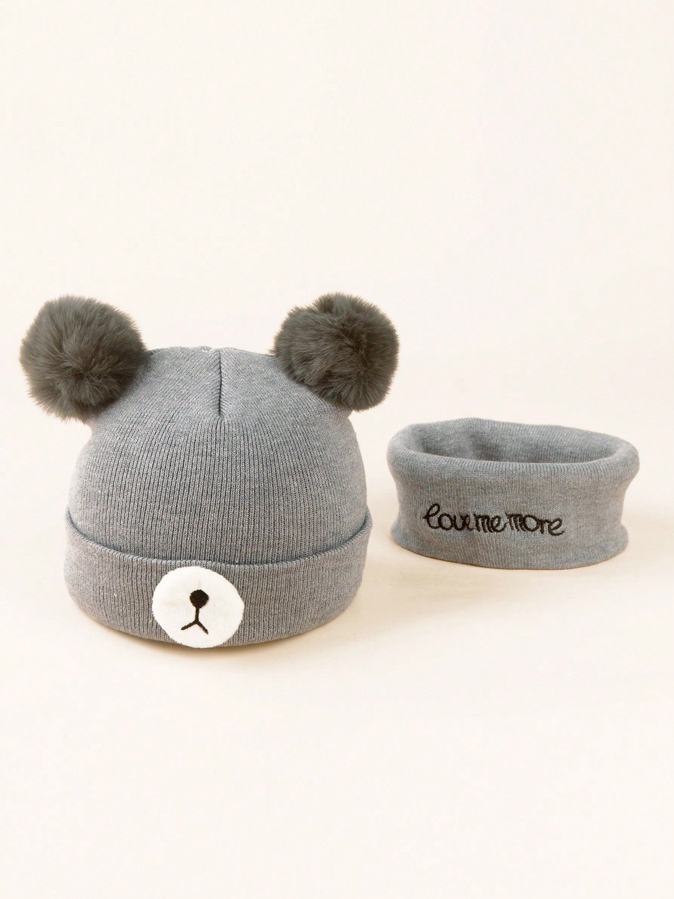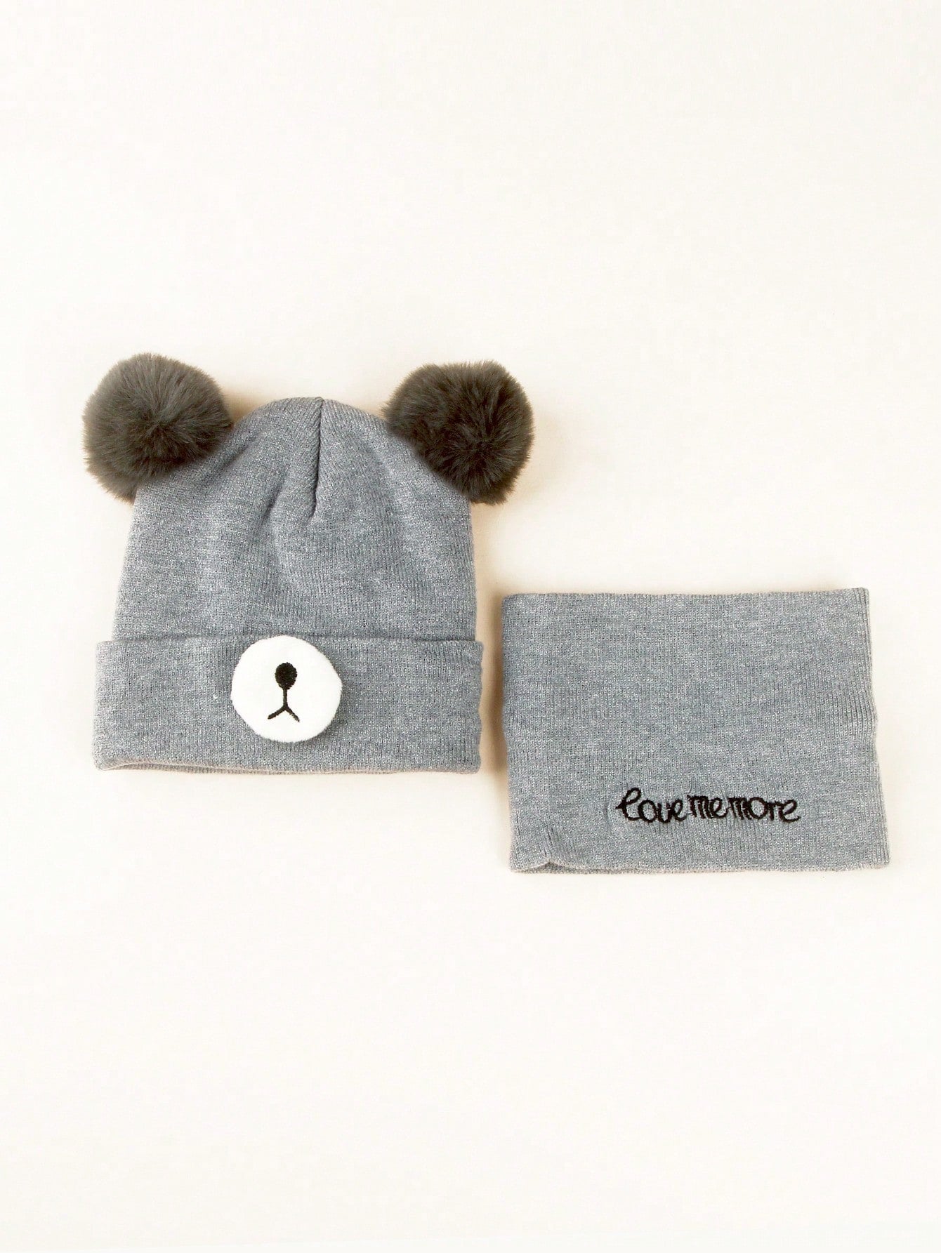 مجموعة قبعة وأوشحة مطرزة بالدب للأطفال الرضع والصغار 0-3 سنوات، لحفظ الدفء، قطعتان