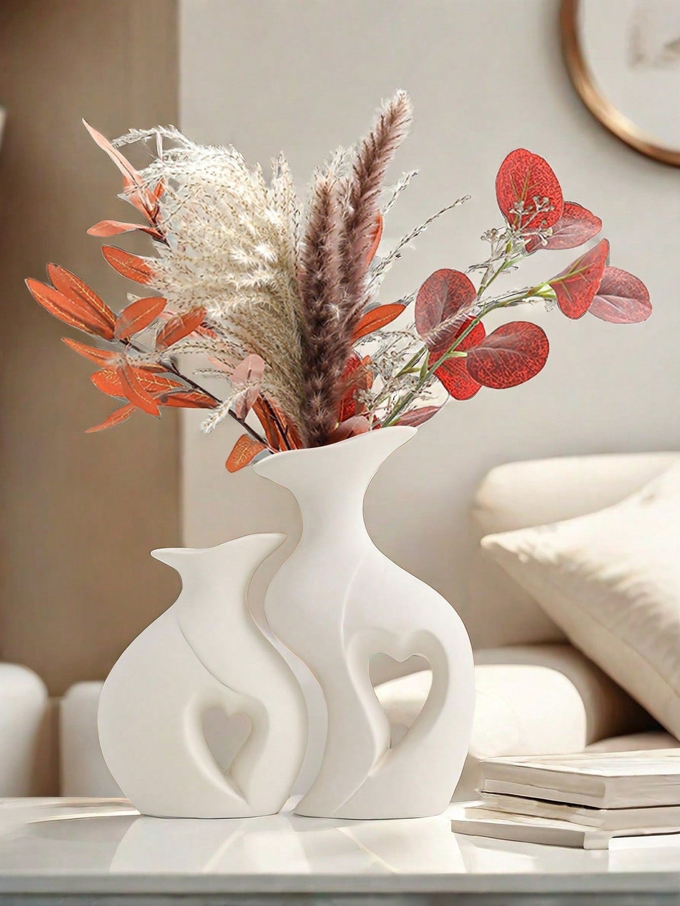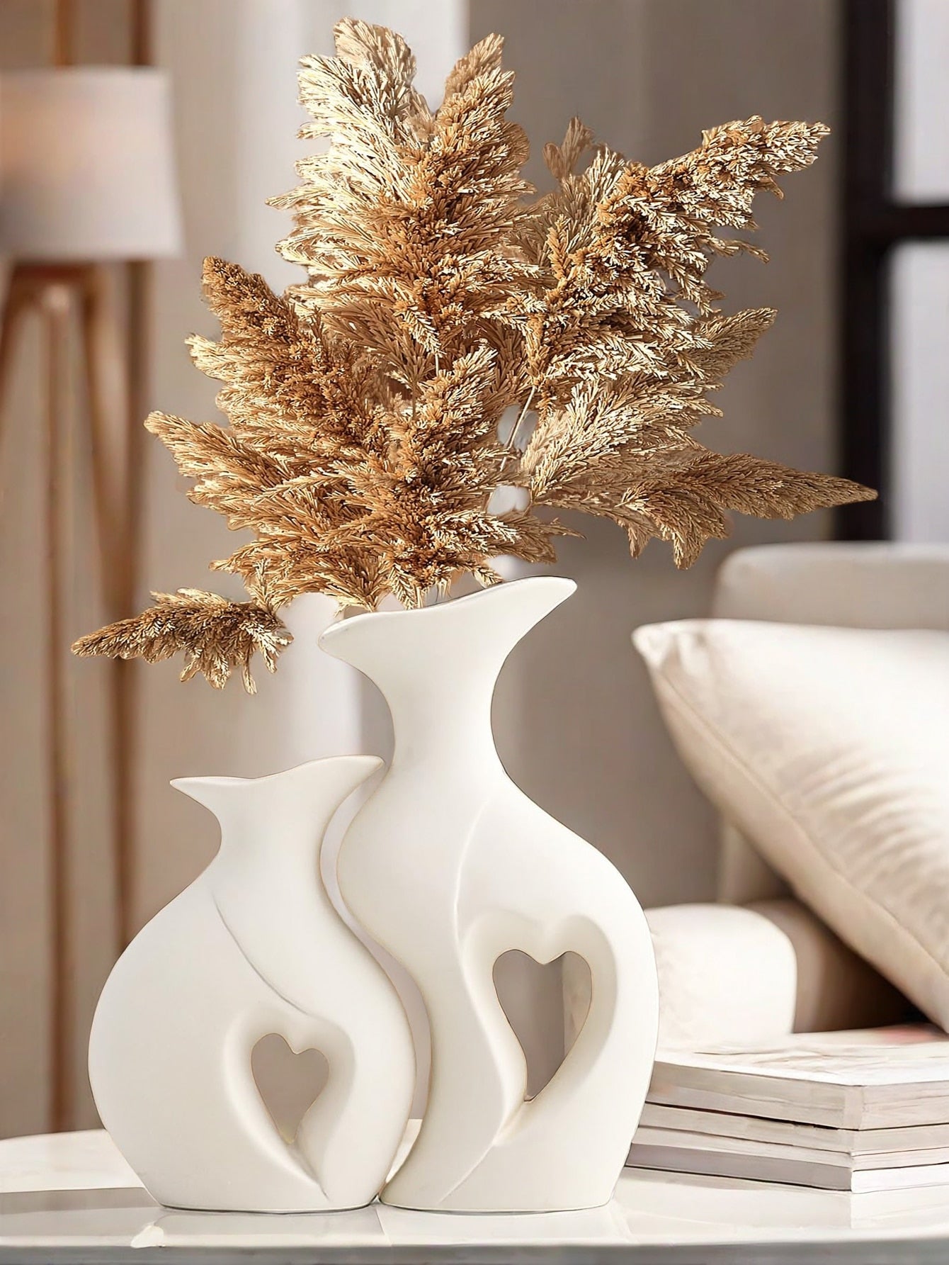 مجموعة قوارير من السيراميك الأبيض 2 قطعة لديكور