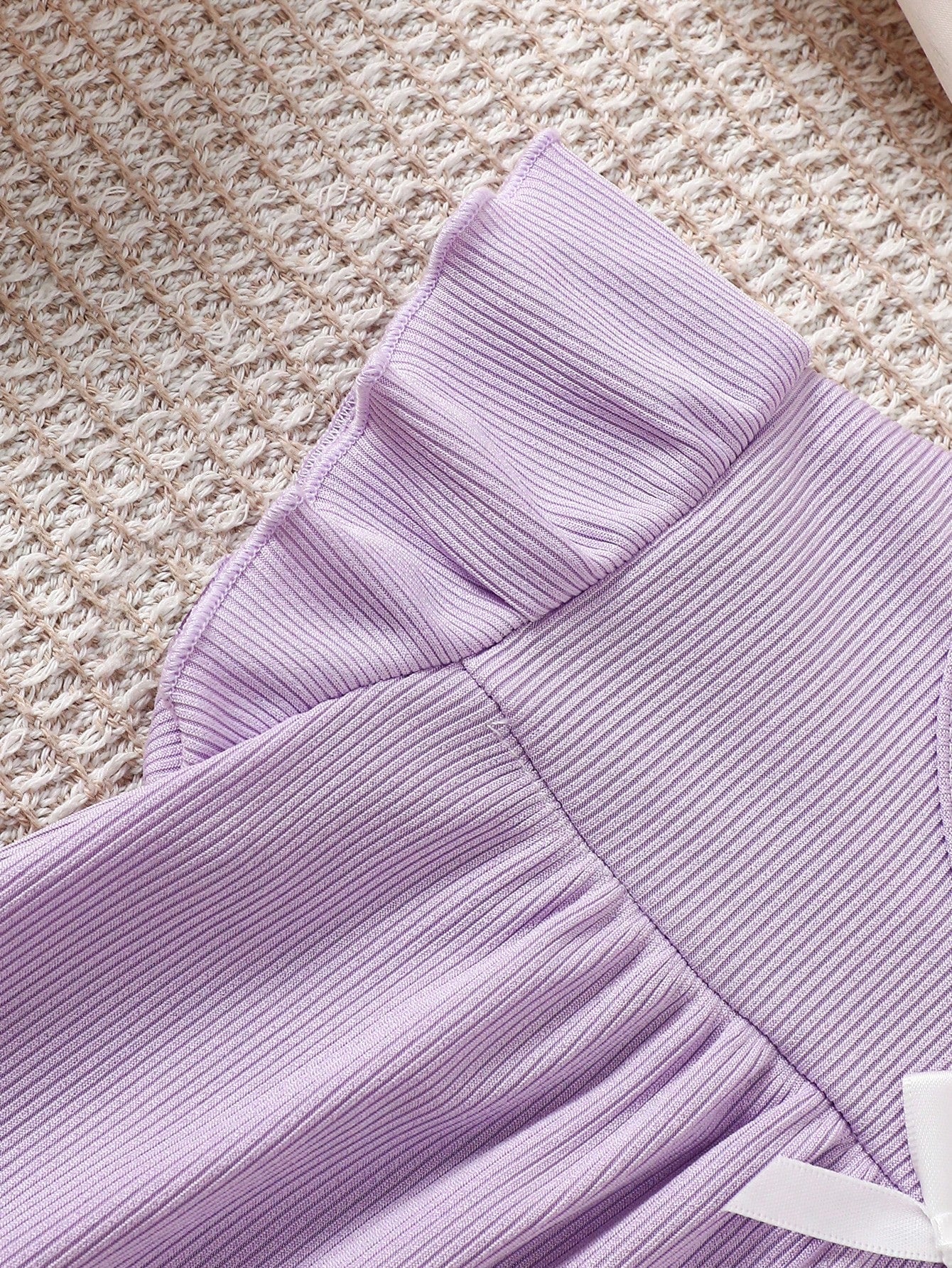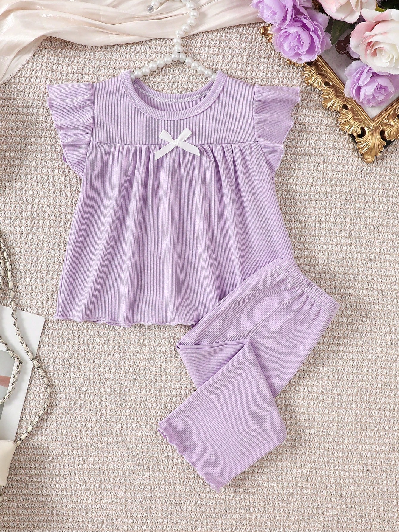 مجموعة ملابس علوية بأكمام قصيرة ربطة مخرمة وبنطال طويل