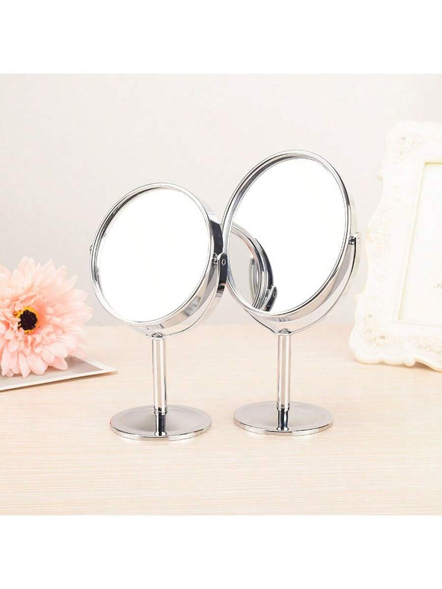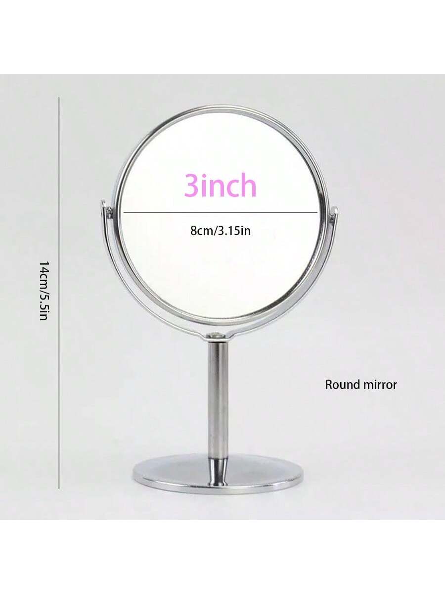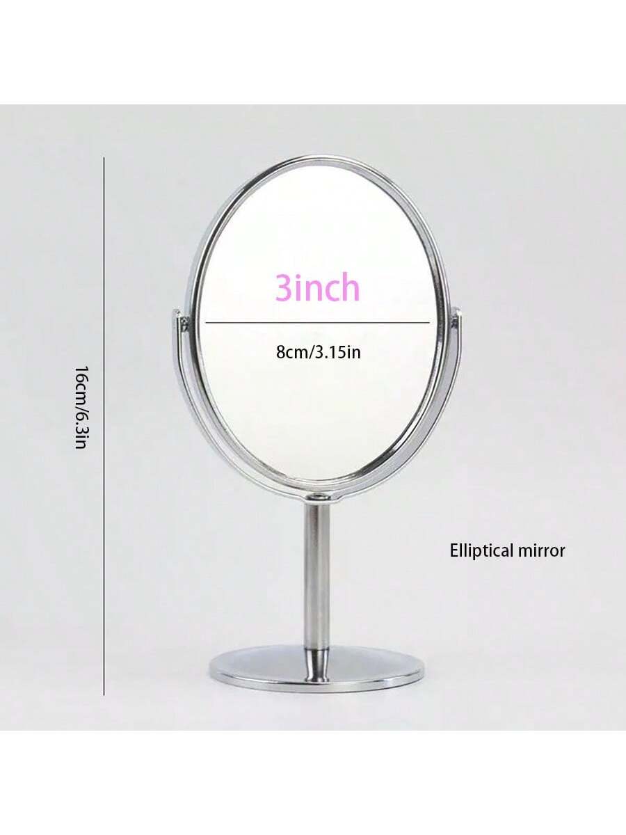 مرآة ماكياج مكتبية معدنية ذات وجهين ، 3 بوصات، دائرية أو بيضوية، مرآة تجميل محمولة، مرآة بتكبير 1:2، مرآة دوارة بزاوية 360 درجة