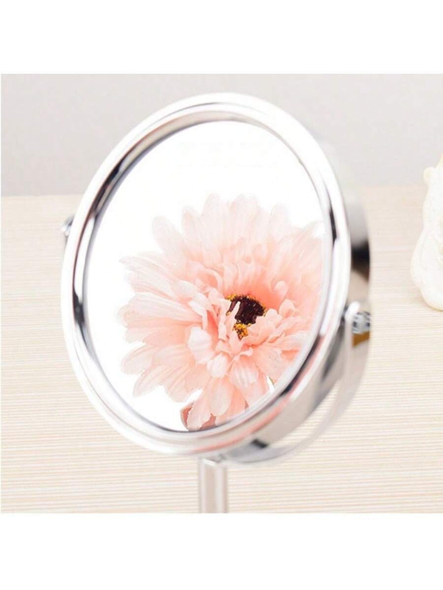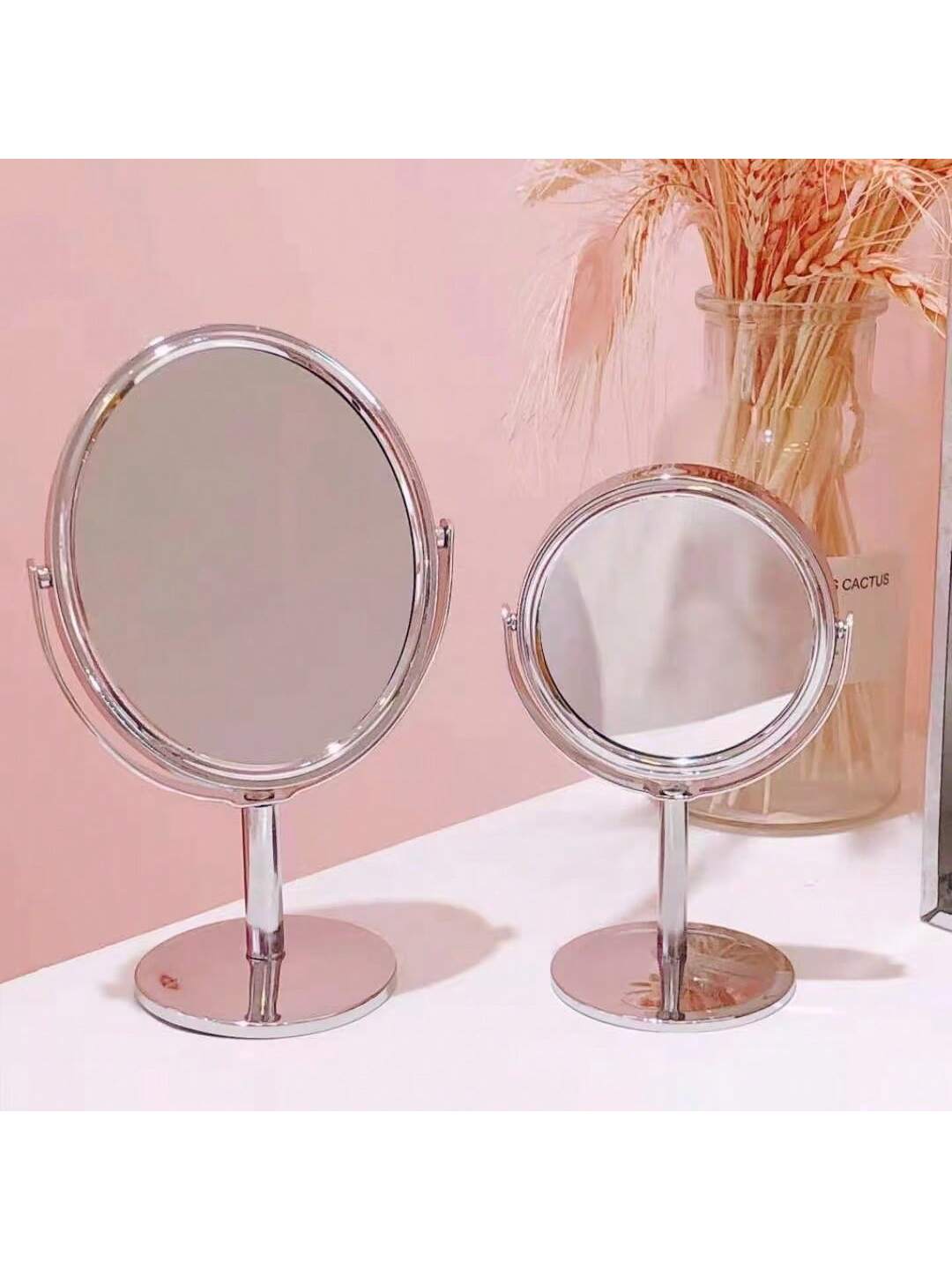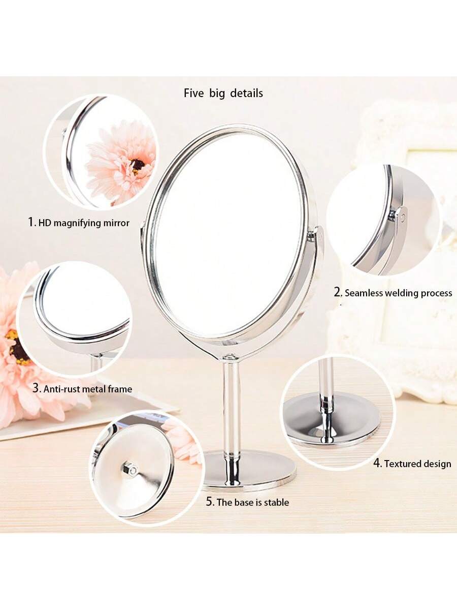 مرآة ماكياج مكتبية معدنية ذات وجهين ، 3 بوصات، دائرية أو بيضوية، مرآة تجميل محمولة، مرآة بتكبير 1:2، مرآة دوارة بزاوية 360 درجة