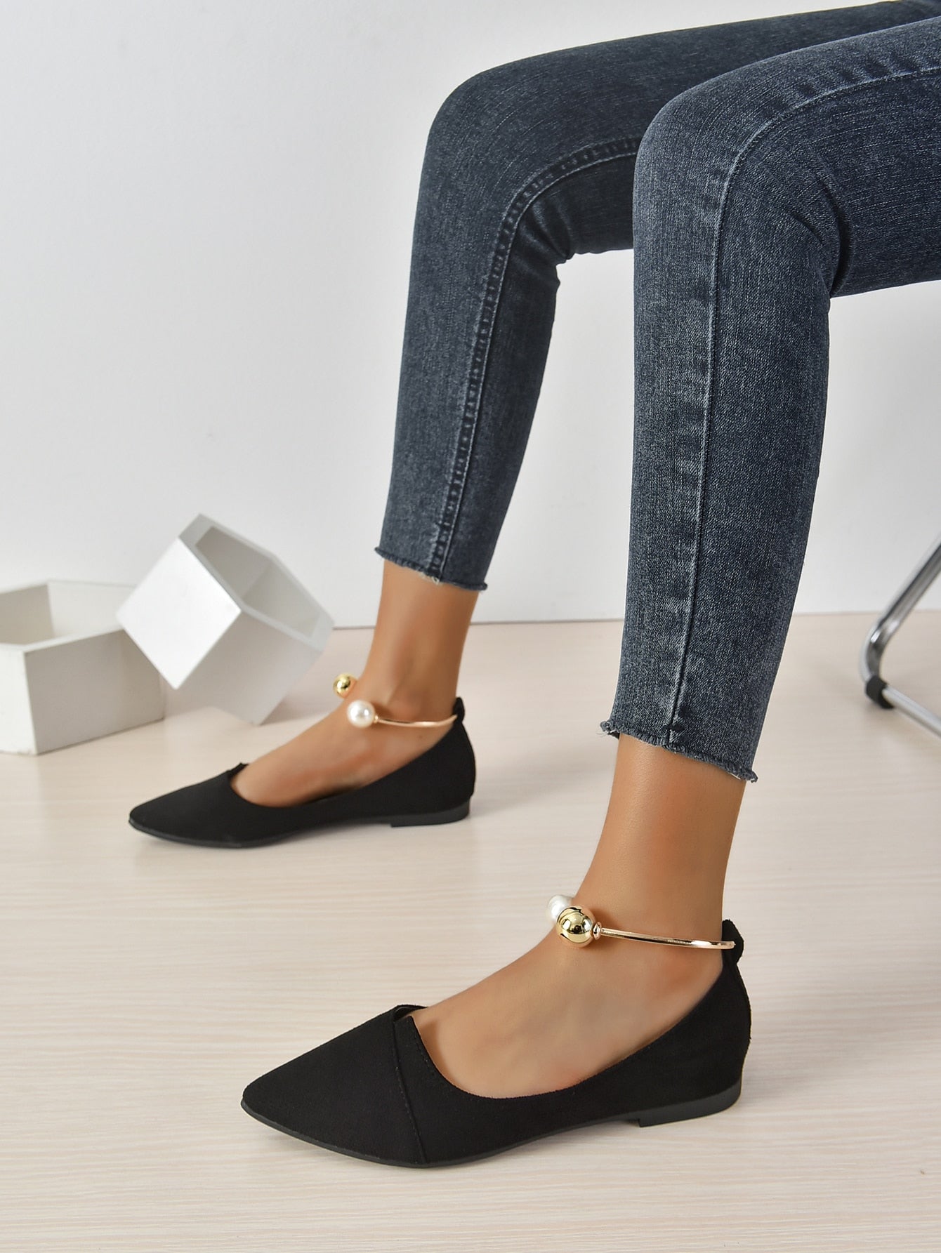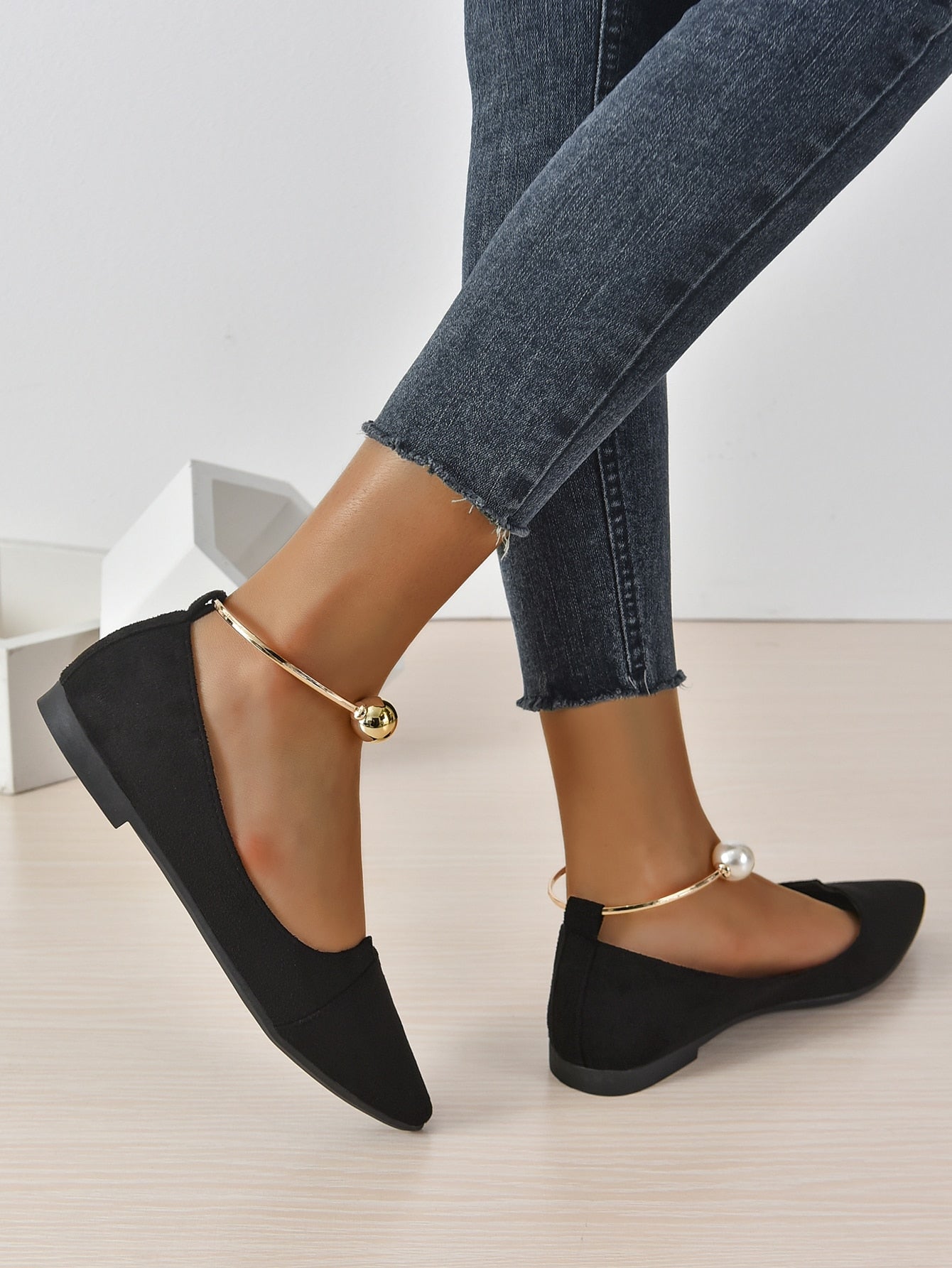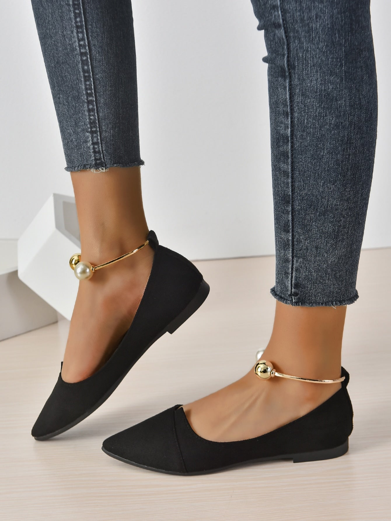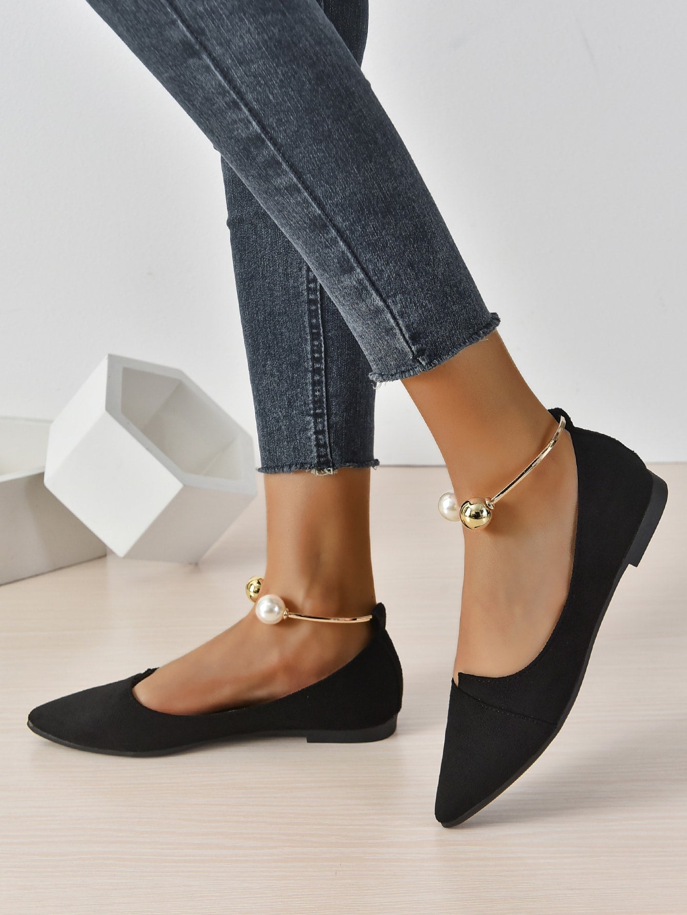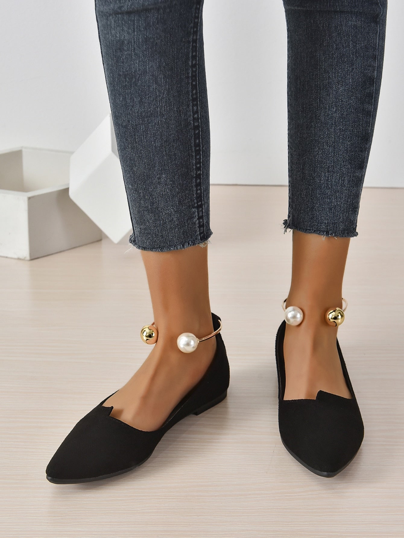 مزخرف بلؤلؤ اصطناعي باصابع قدم مدبب حذاء باليه مسطح