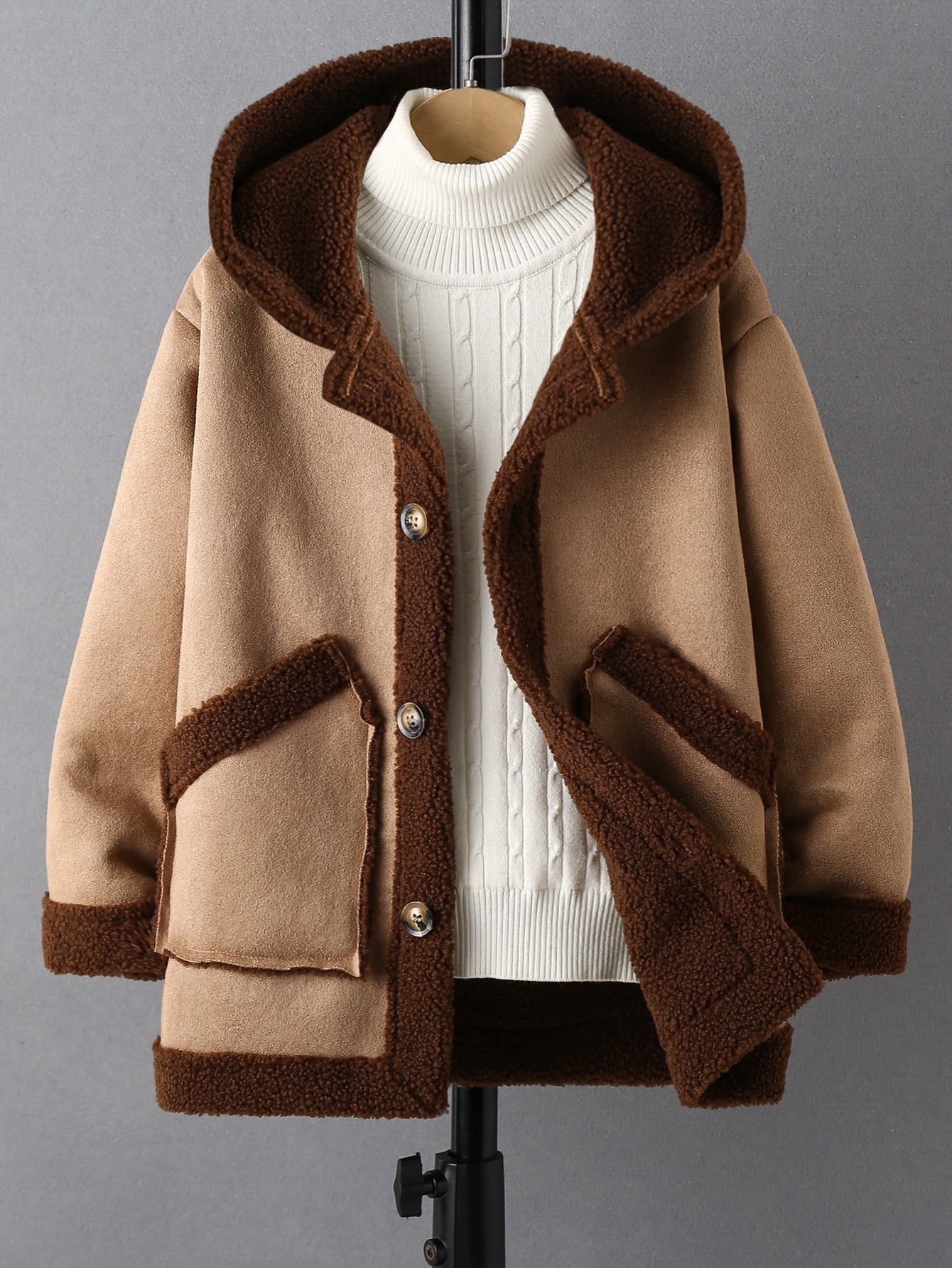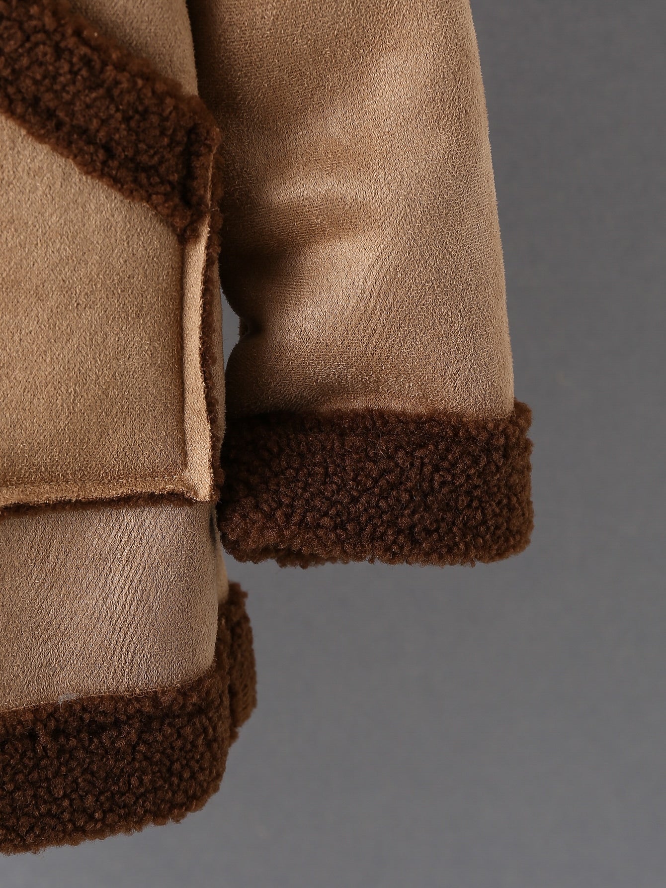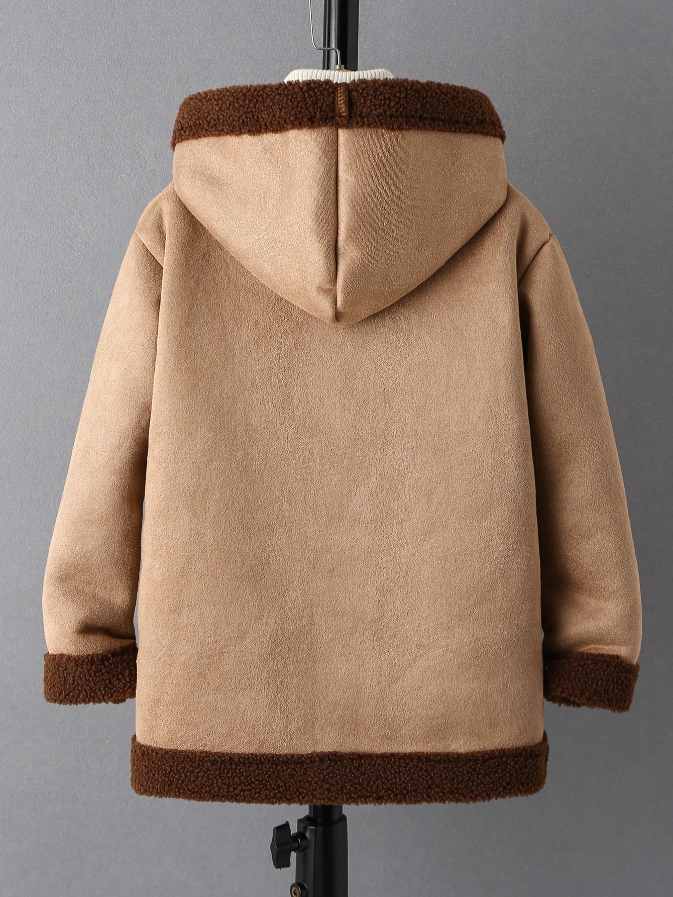 معطف بطباعة تيدي قبعة جلد سويدي بدون كنزة صوف اولاد