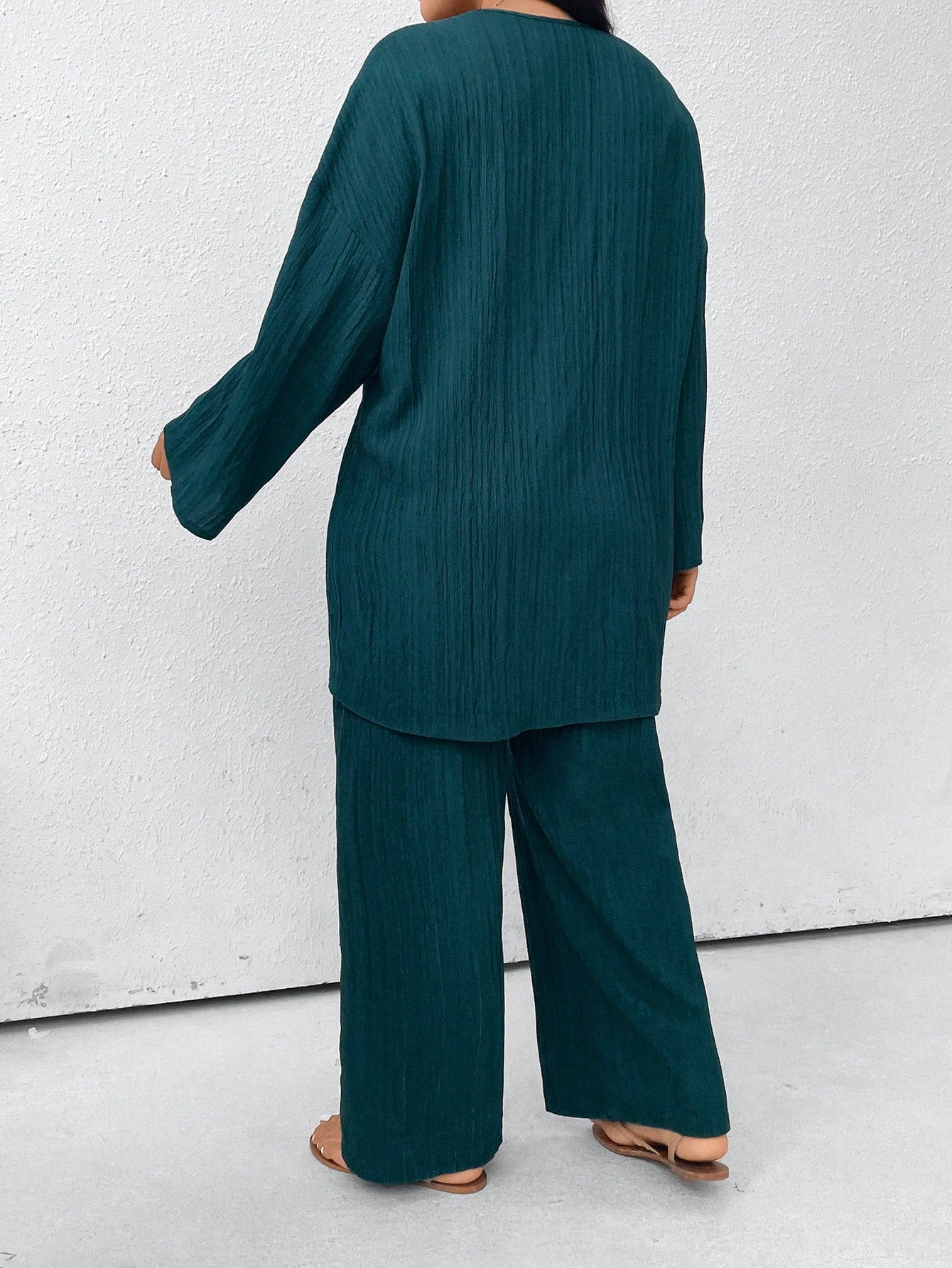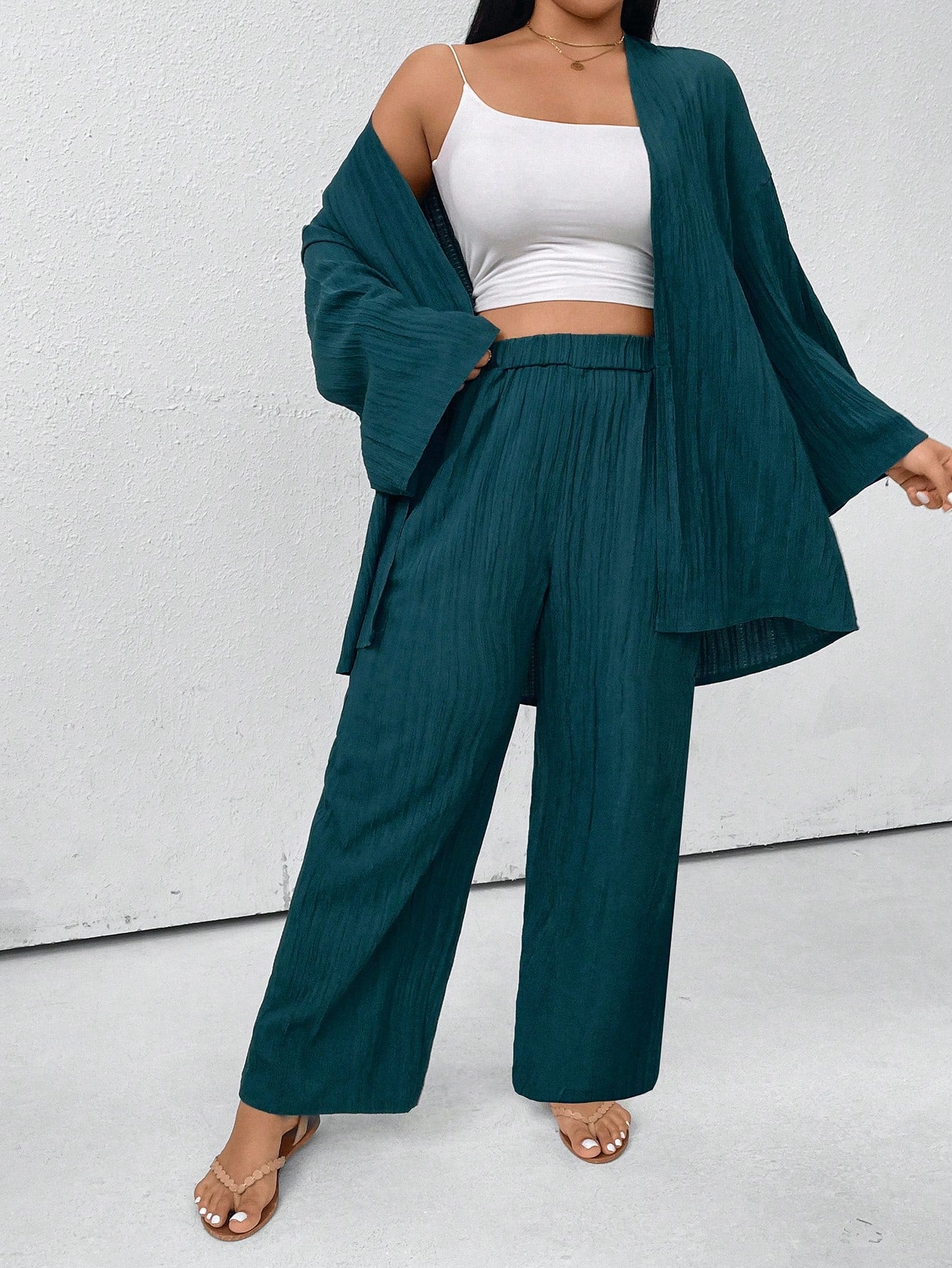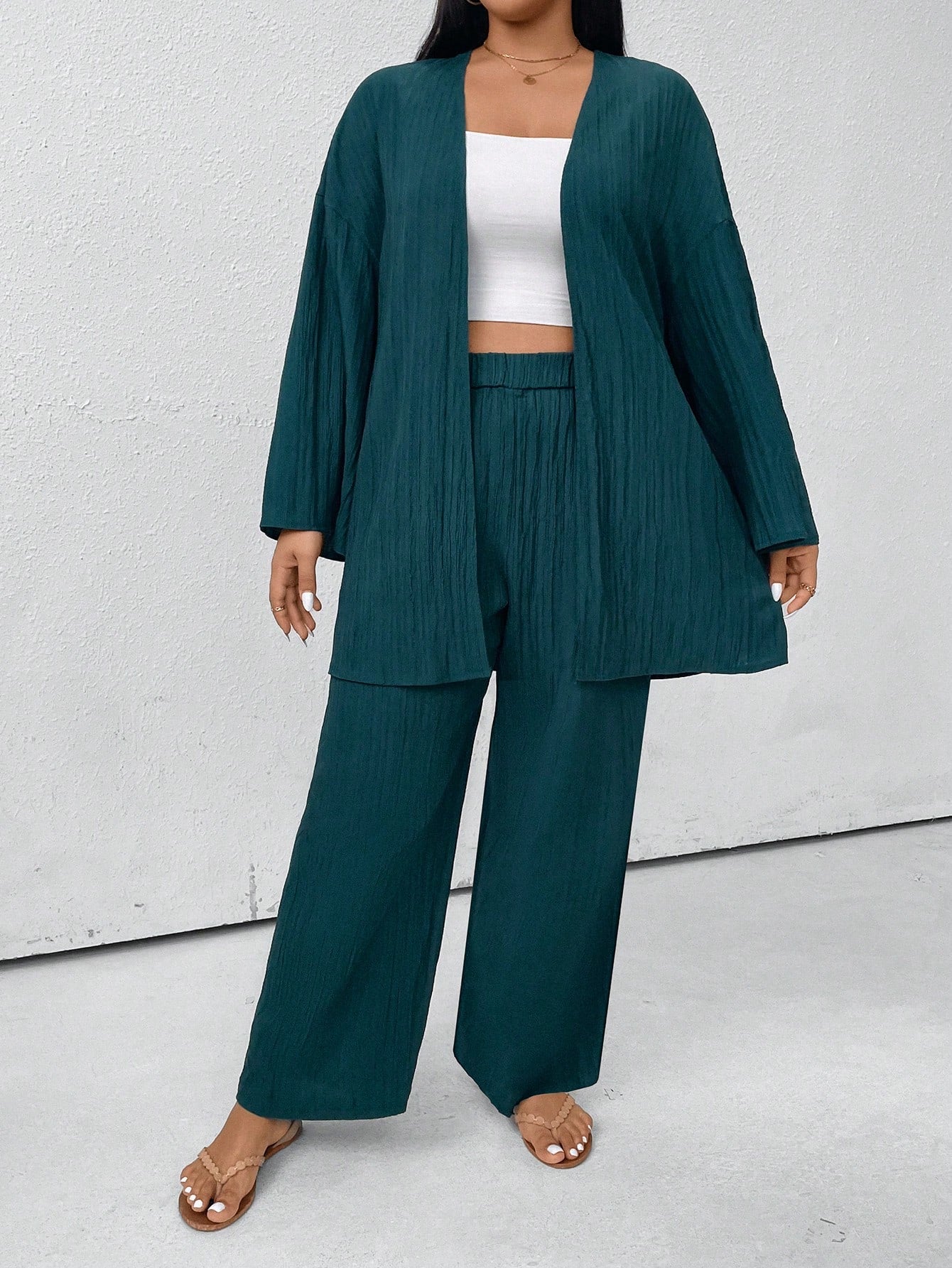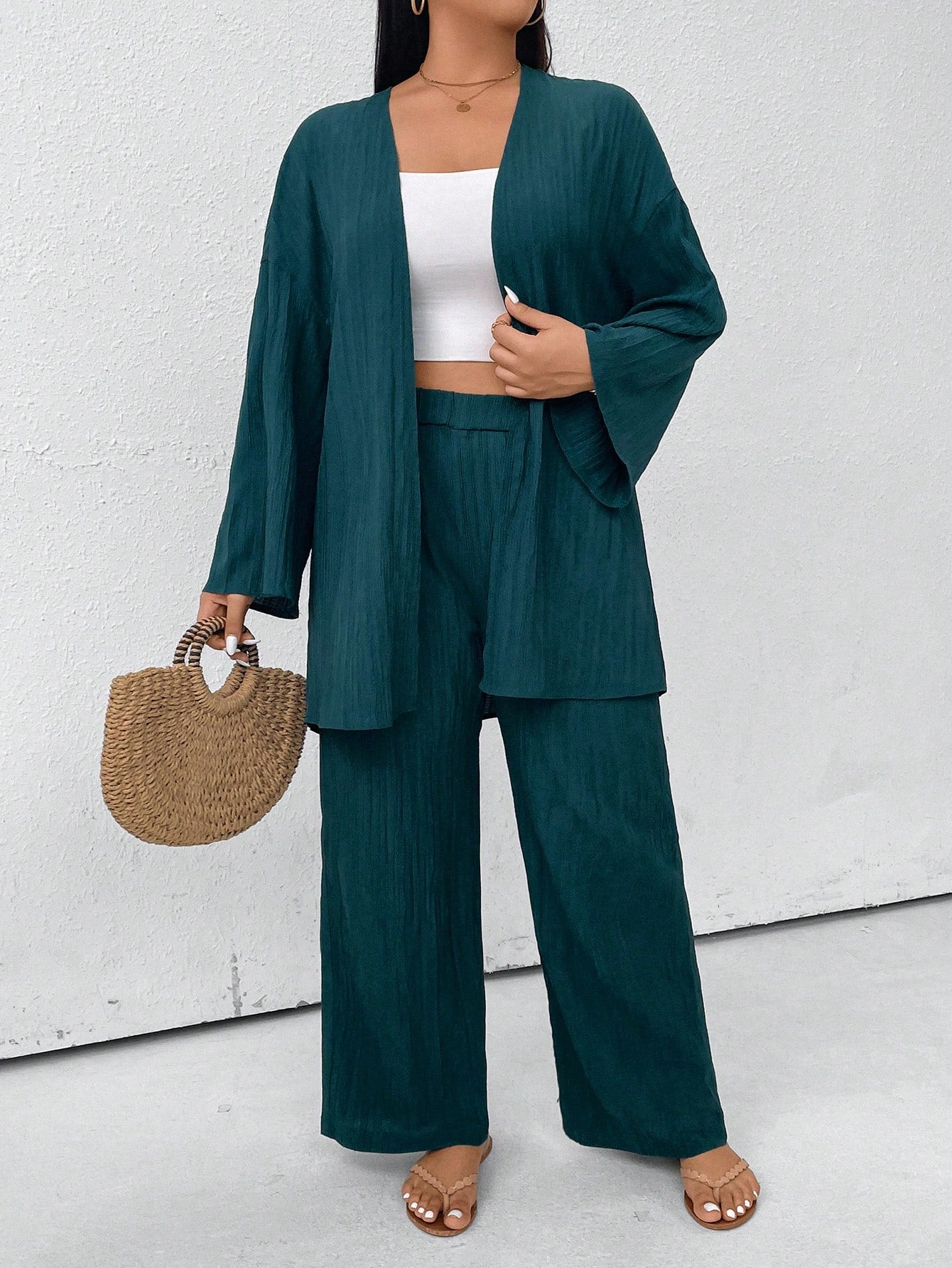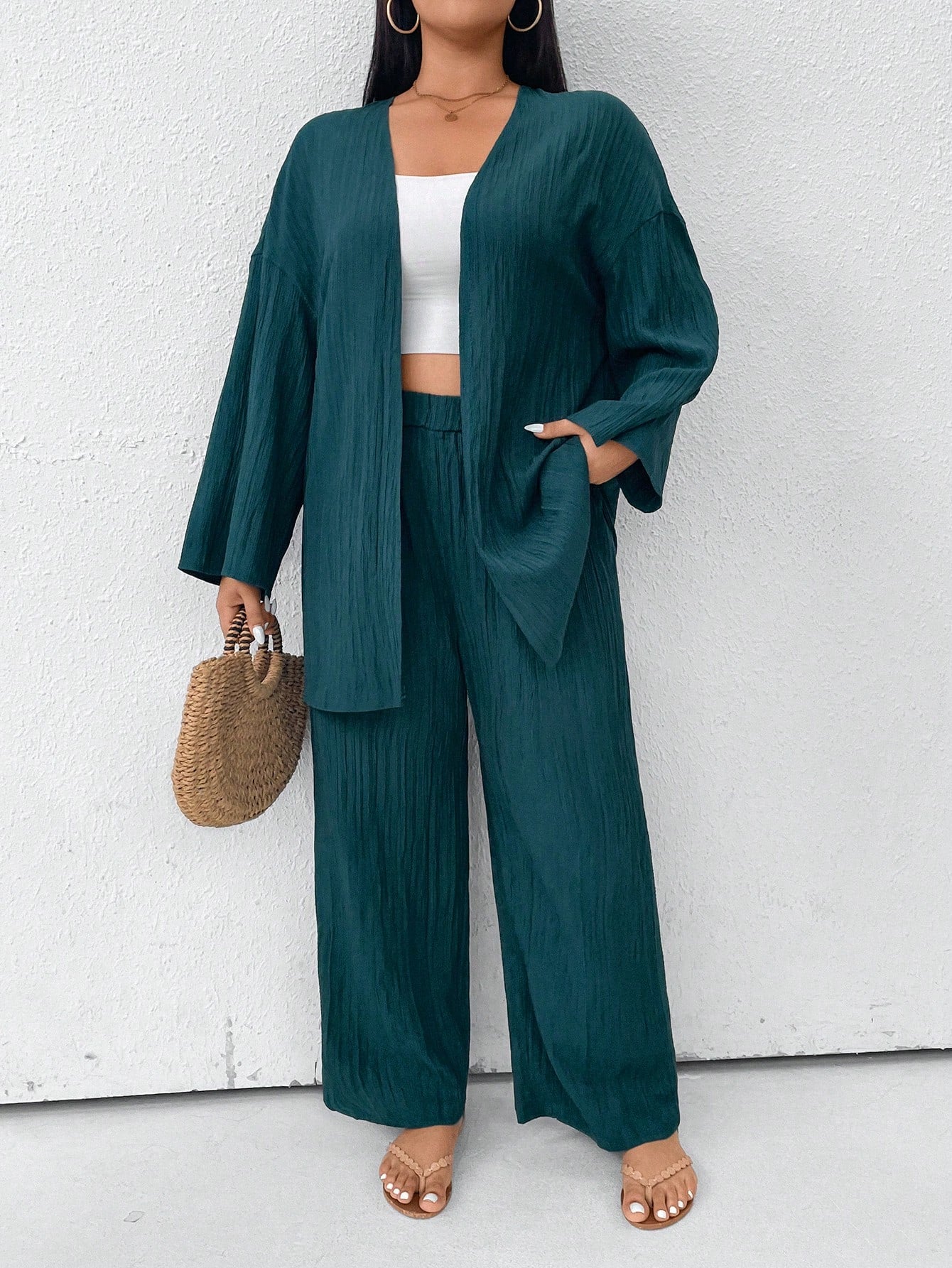 معطف بلا أكمام واسع وبنطلون بأرجل واسعة