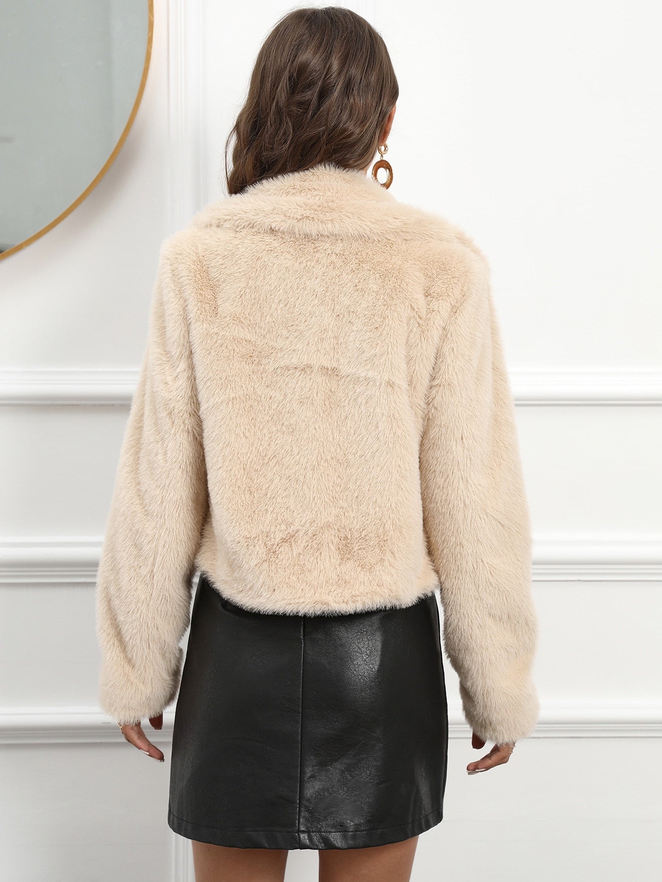 معطف بياقة مطوي مسنن مفتوح امامي زغبي