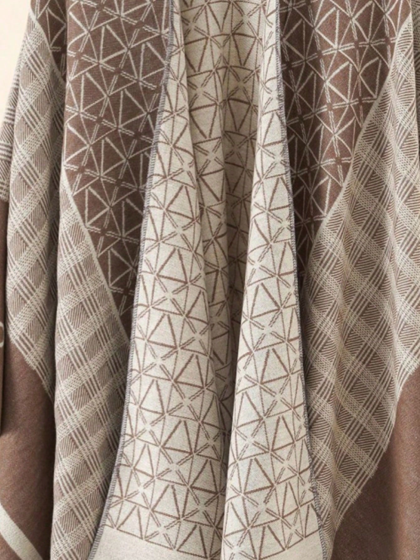 معطف شال دافئ مربعات هندسية قطعة واحدة