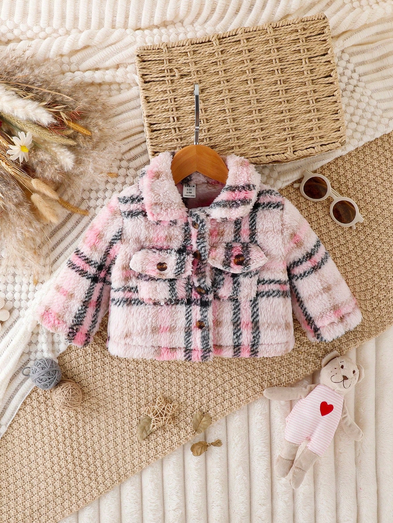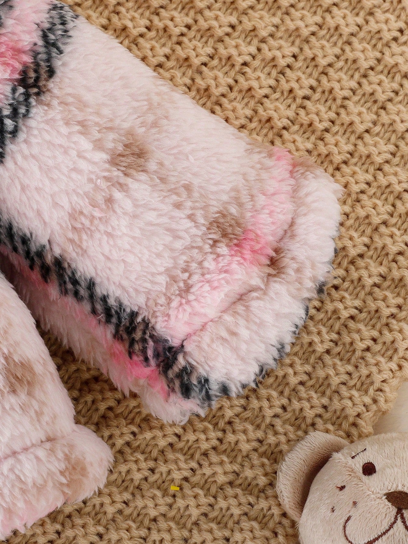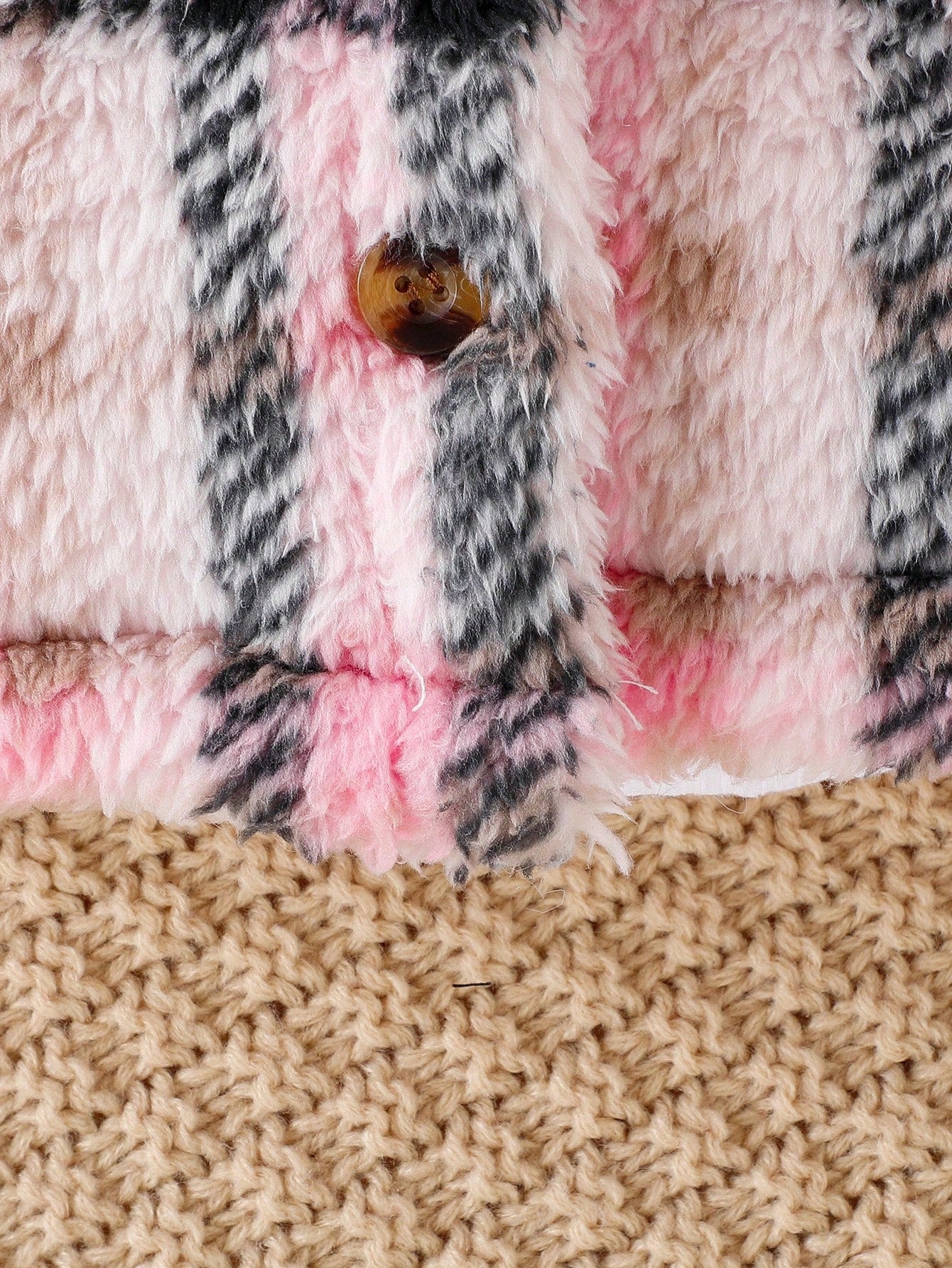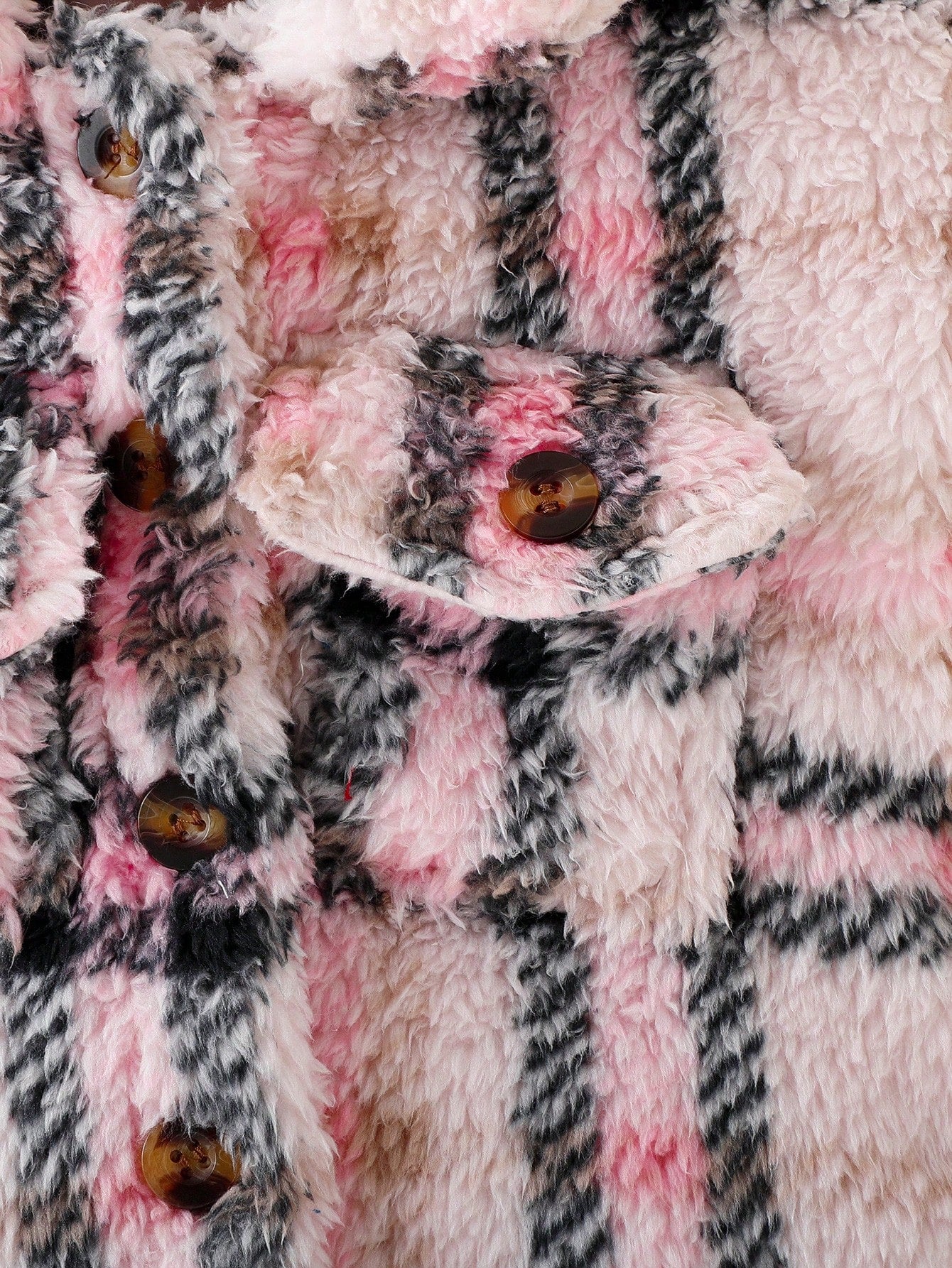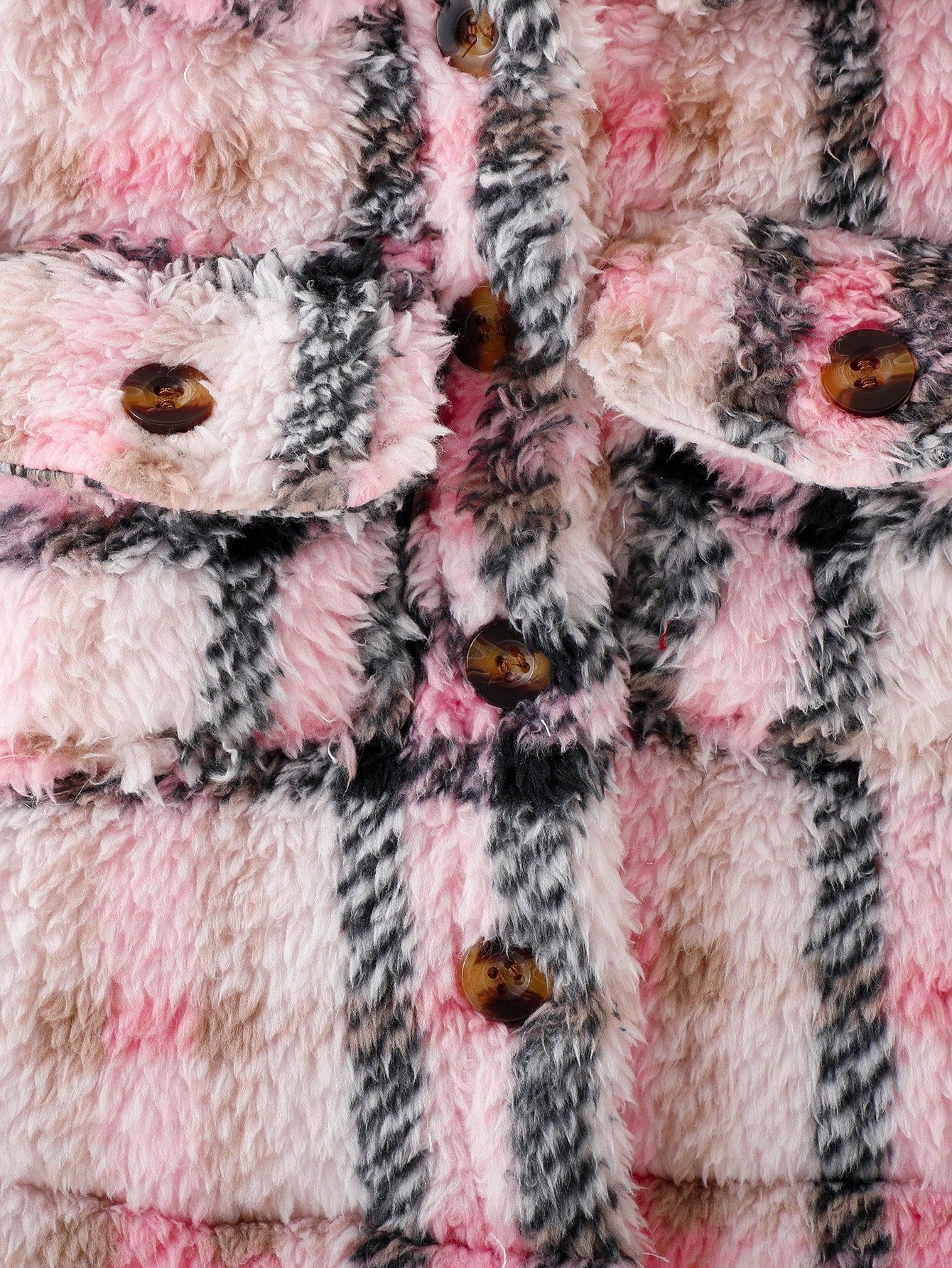 معطف طباعة مربع النقش جيب قلاب الصوف القطبي بدون كنزة صوف للاولاد الاطفال