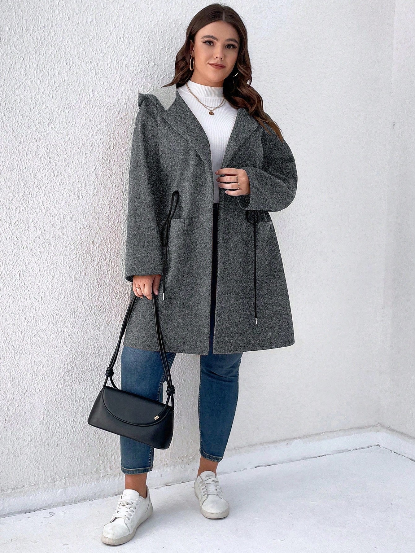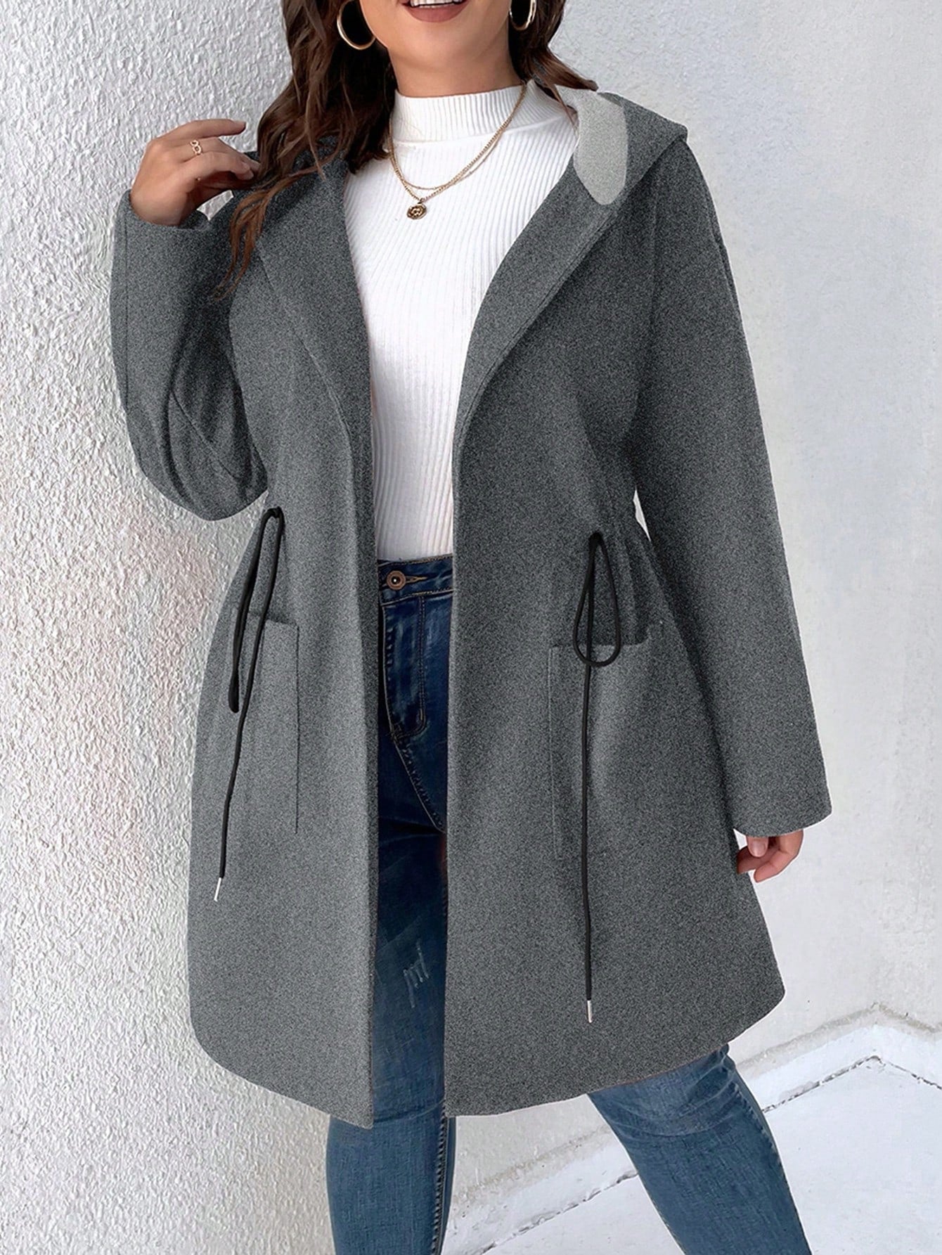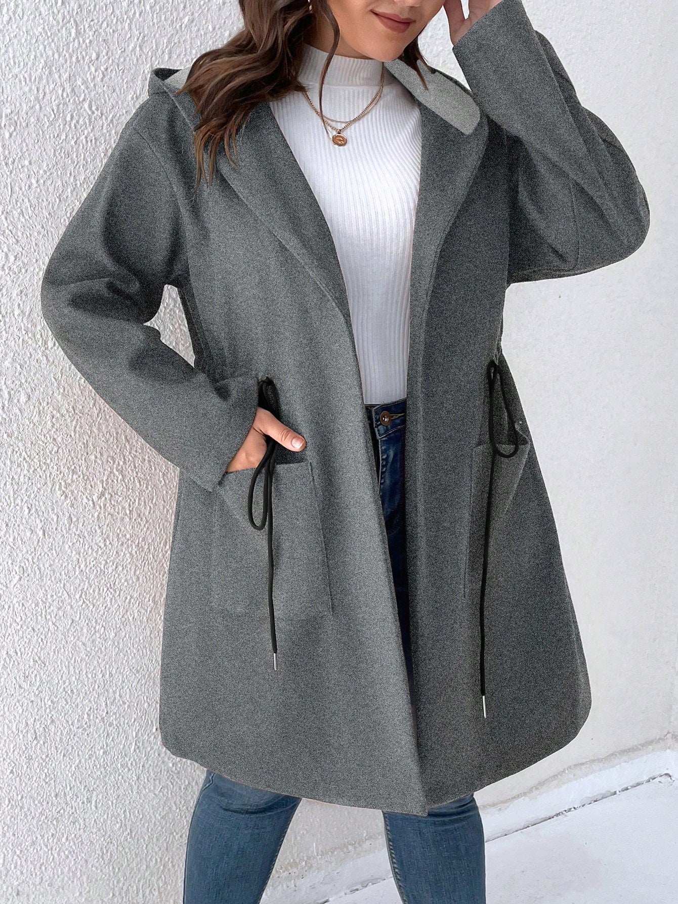 معطف كابور ذو خصر بتكيس وجيبين مع قلنسوة، للموسم الشتوي