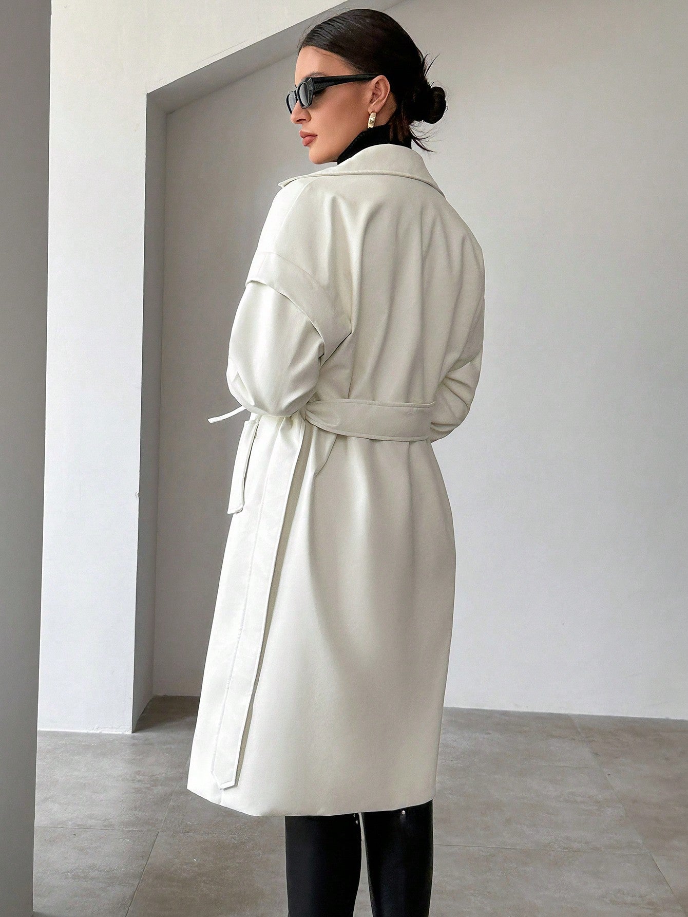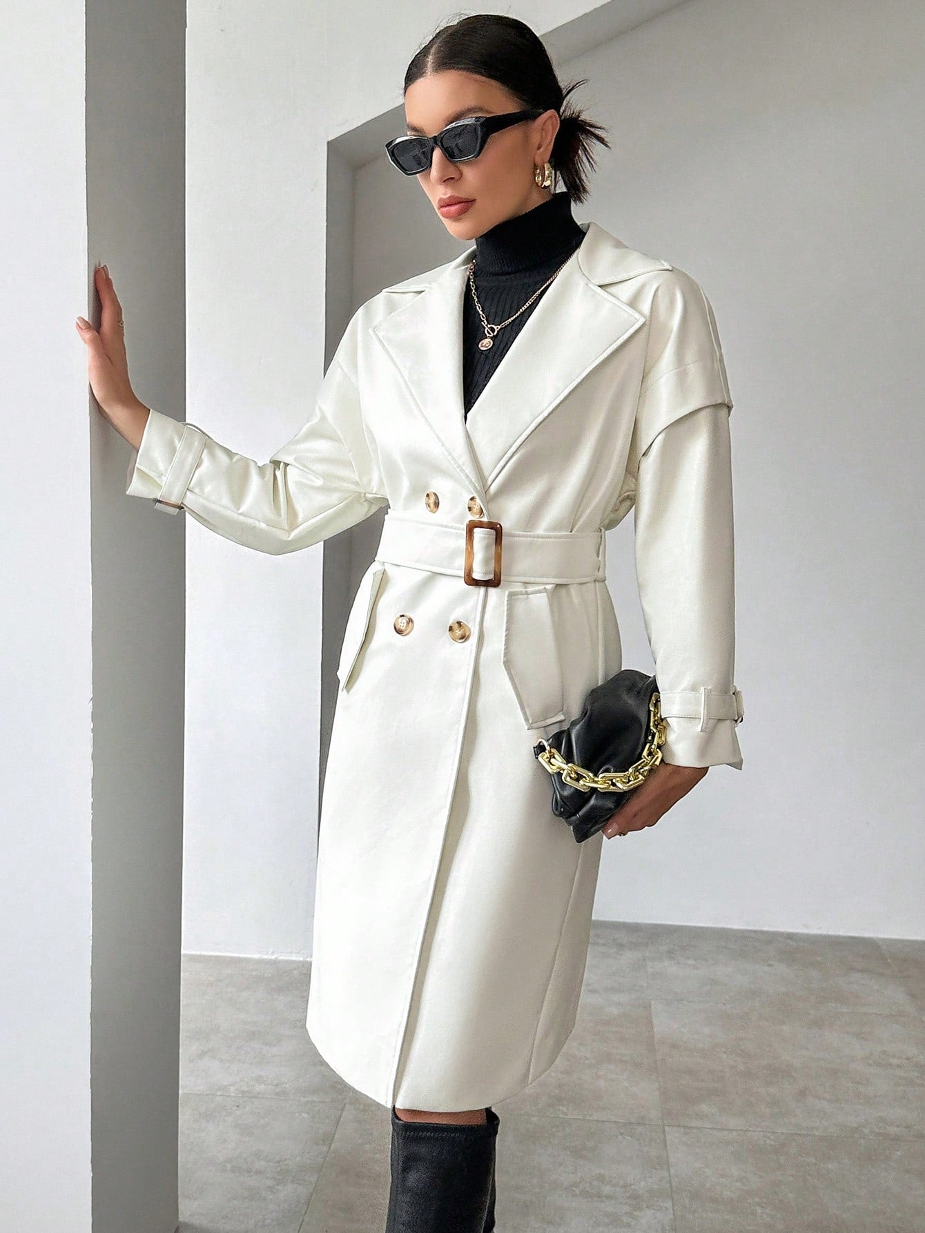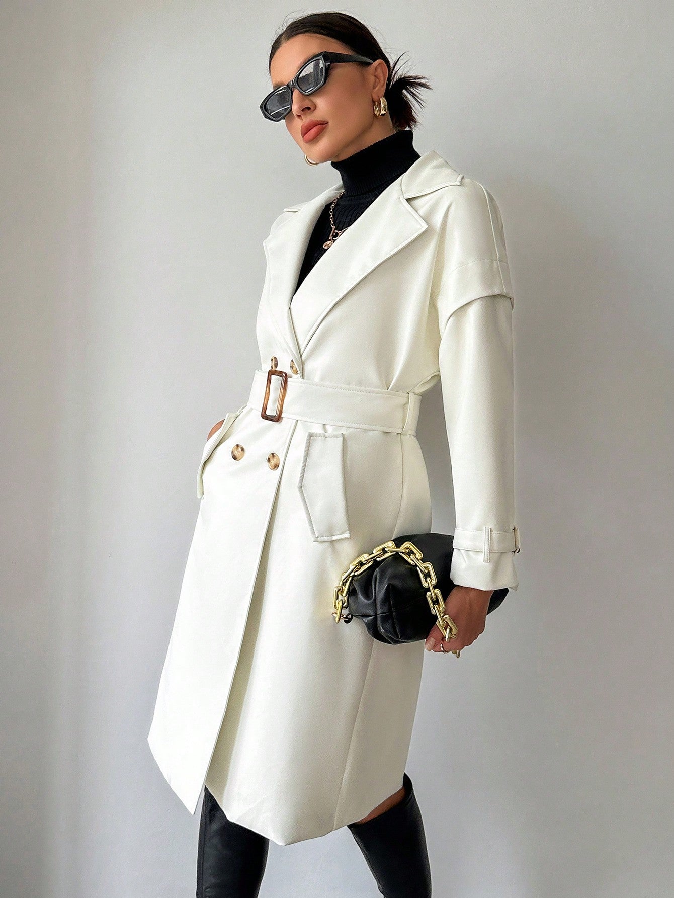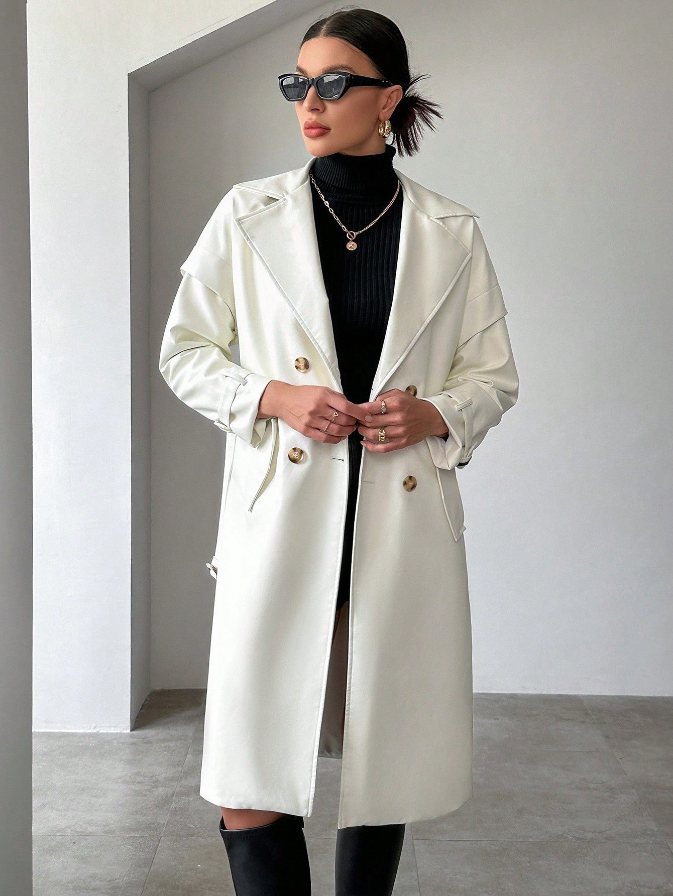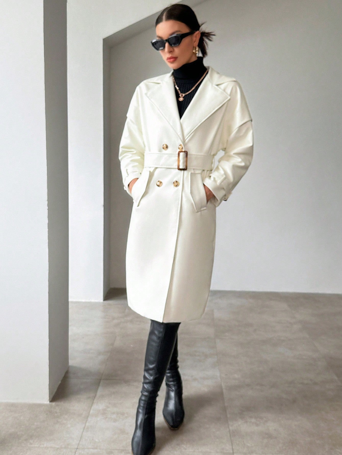 معطف مطر بياقة مطوي مسنن صف ازرار مزدوجة حزام