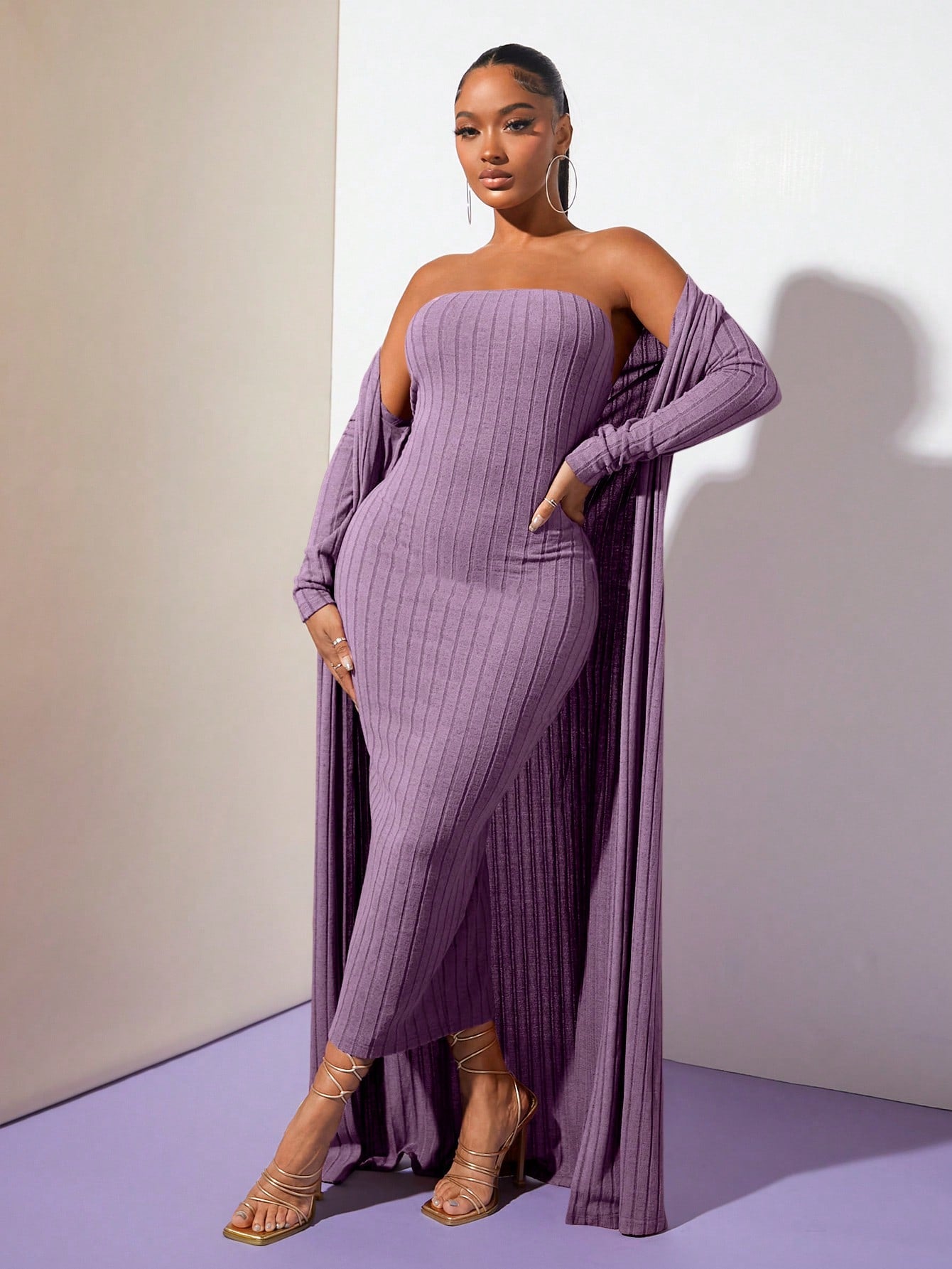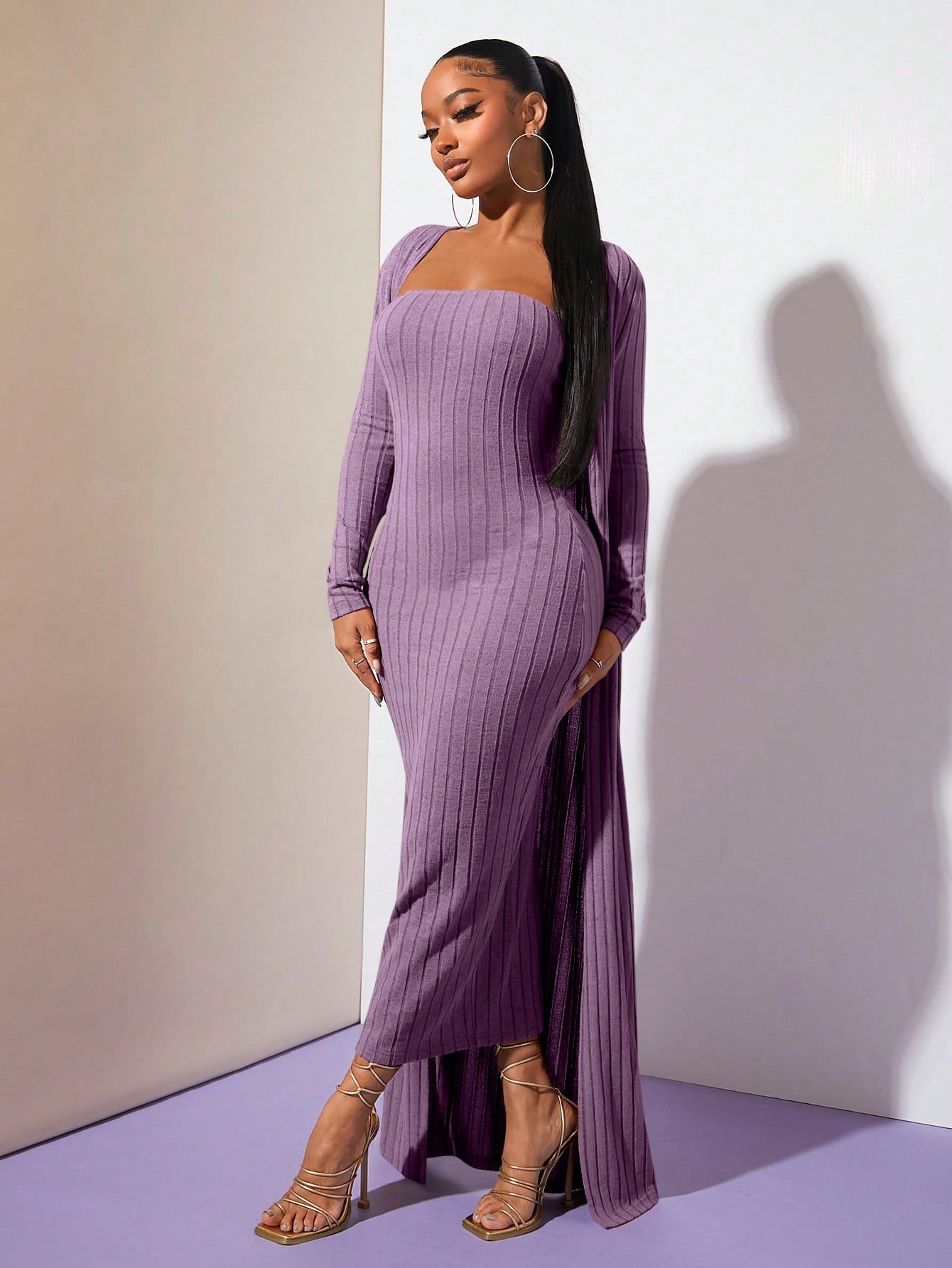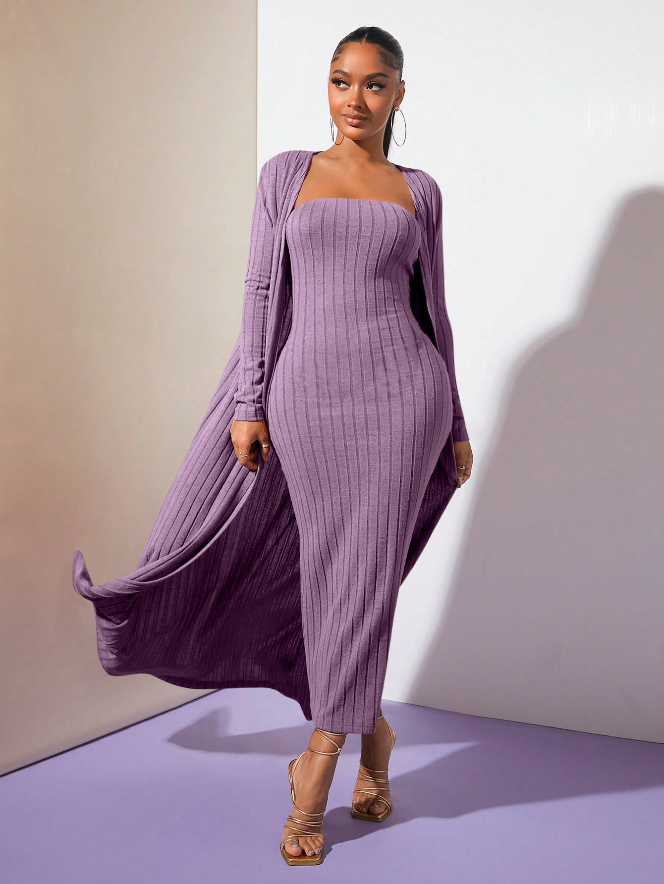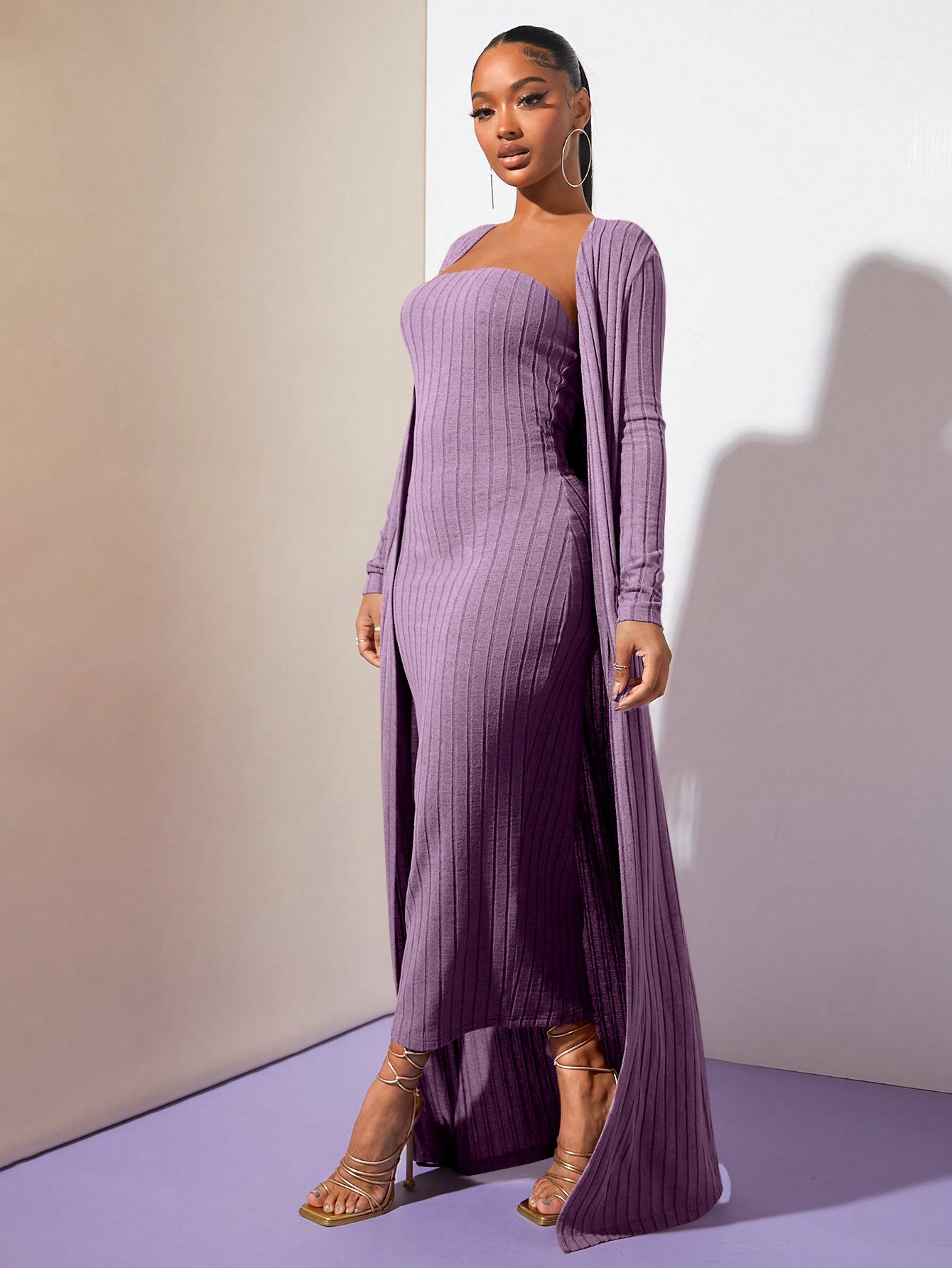 معطف موحدة اللون مفتوح امامي قطعة واحدة