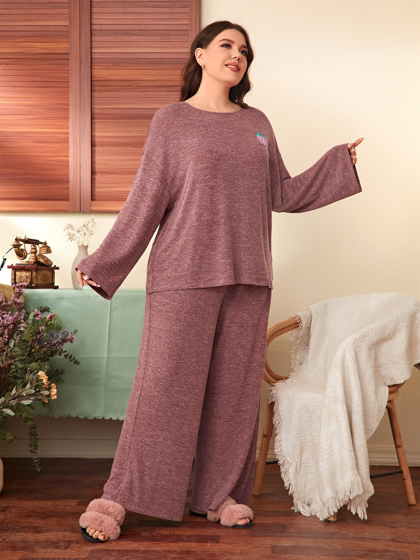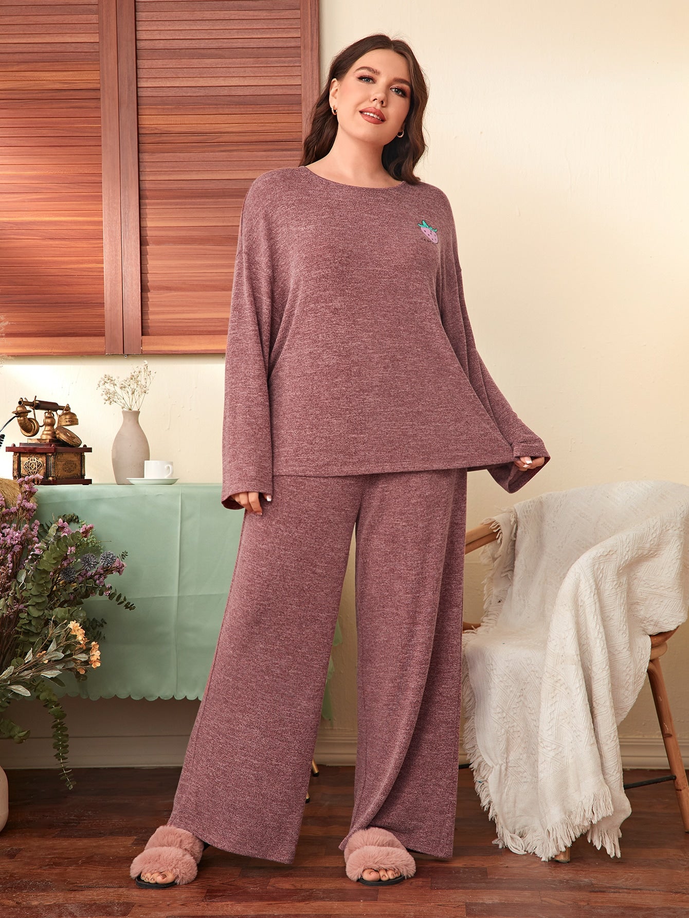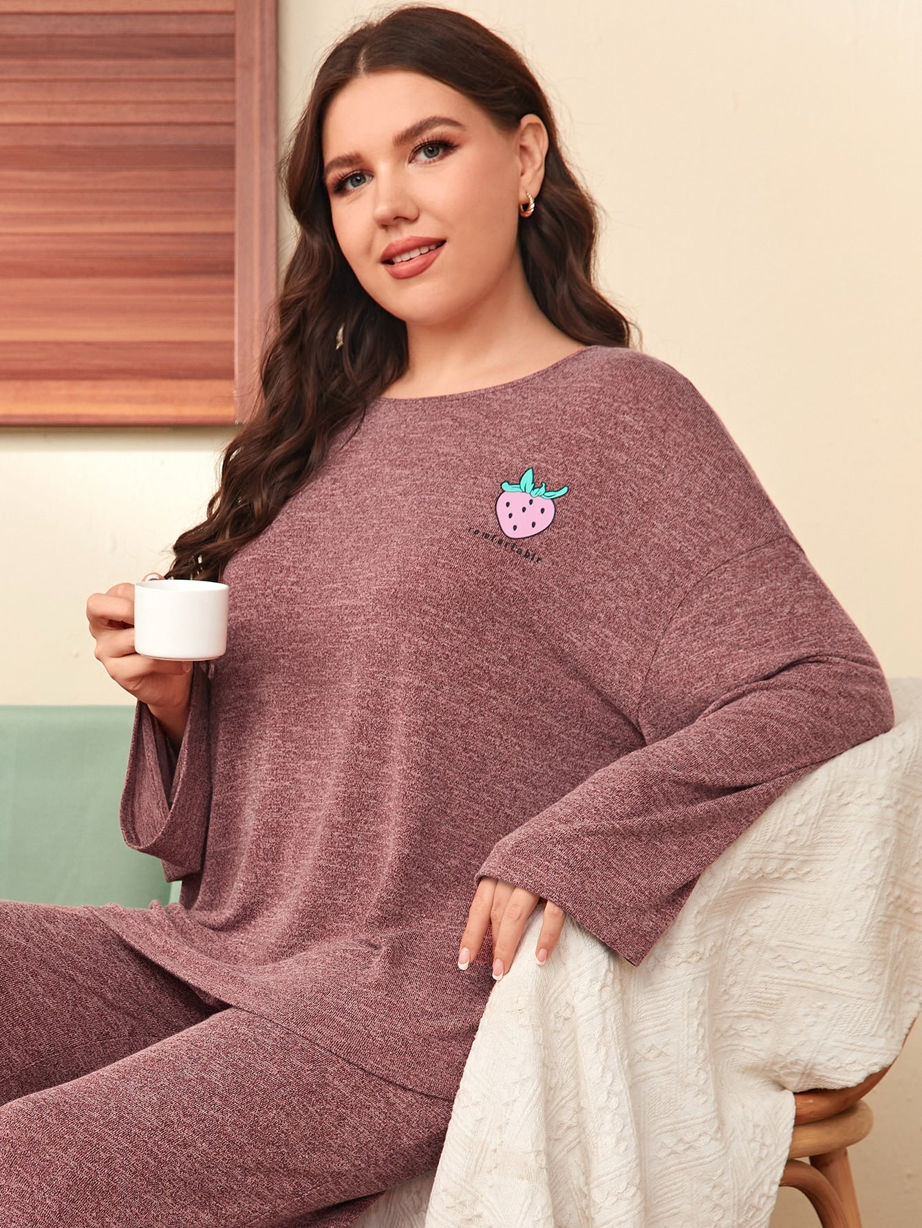 مقاس كبير بطباعة فراولة تي شيرت منخفض الاكتاف مع بنطلون بساق واسع طقم بيجامة