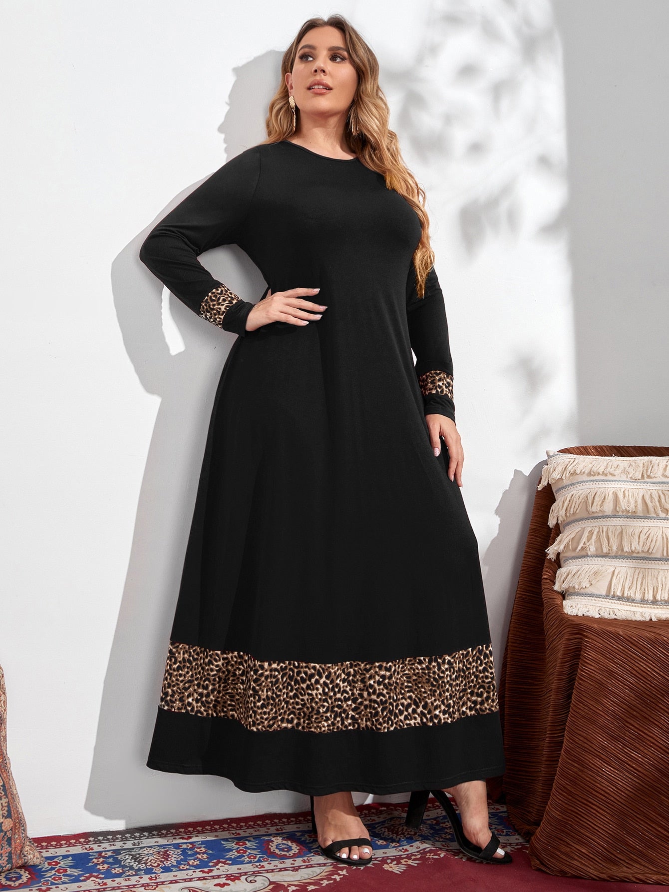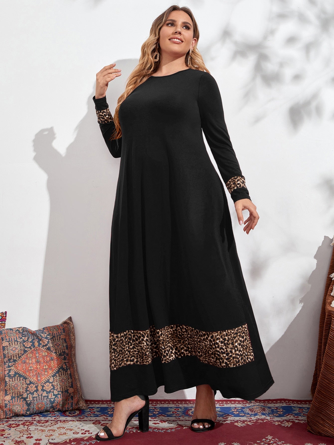 مقاس كبير فستان تي شيرت طباعة الفهد
