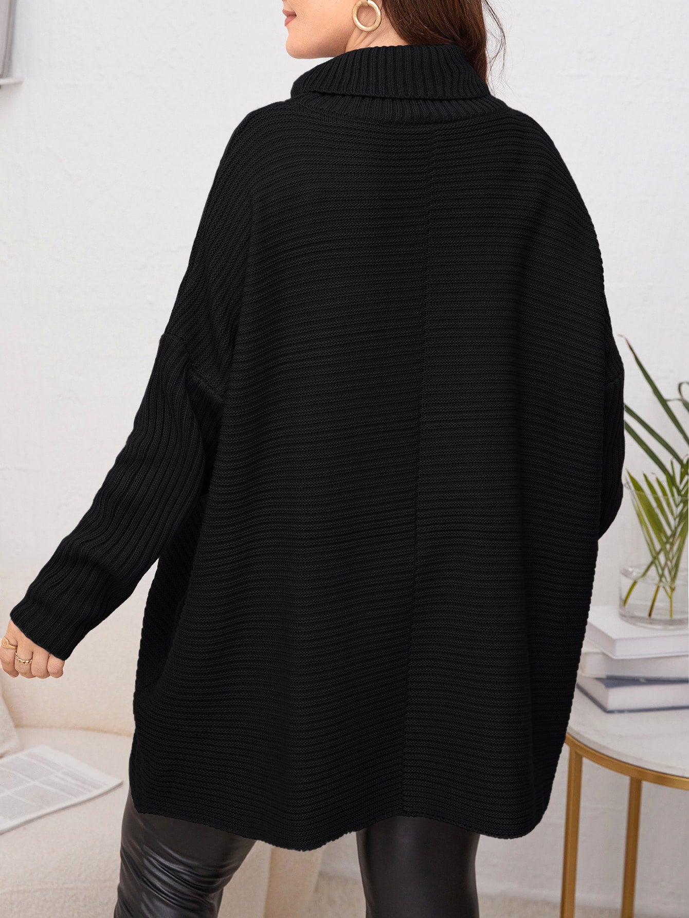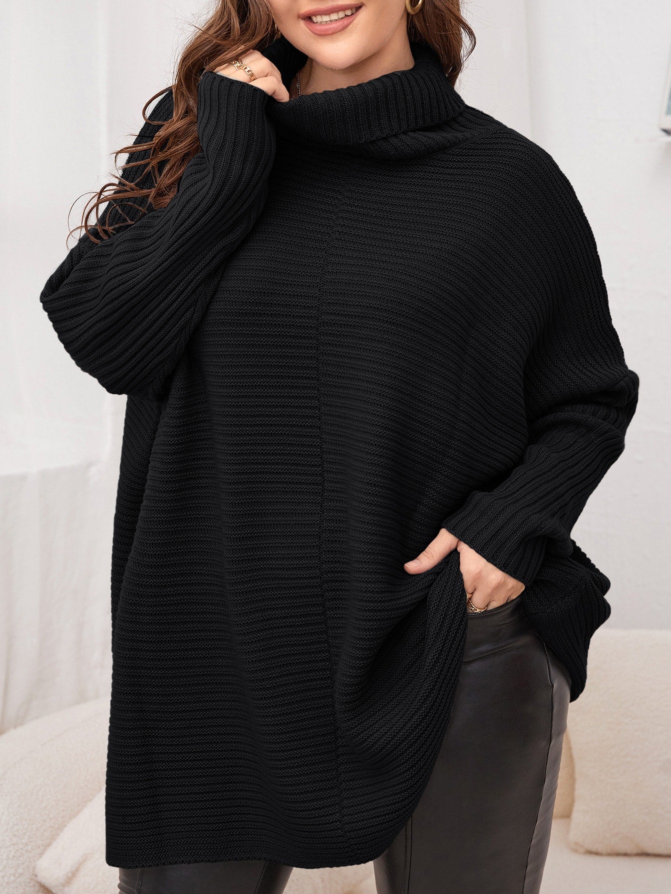 مقاس كبير كنزة صوف ياقة دائري اكمام جناح الخفاش