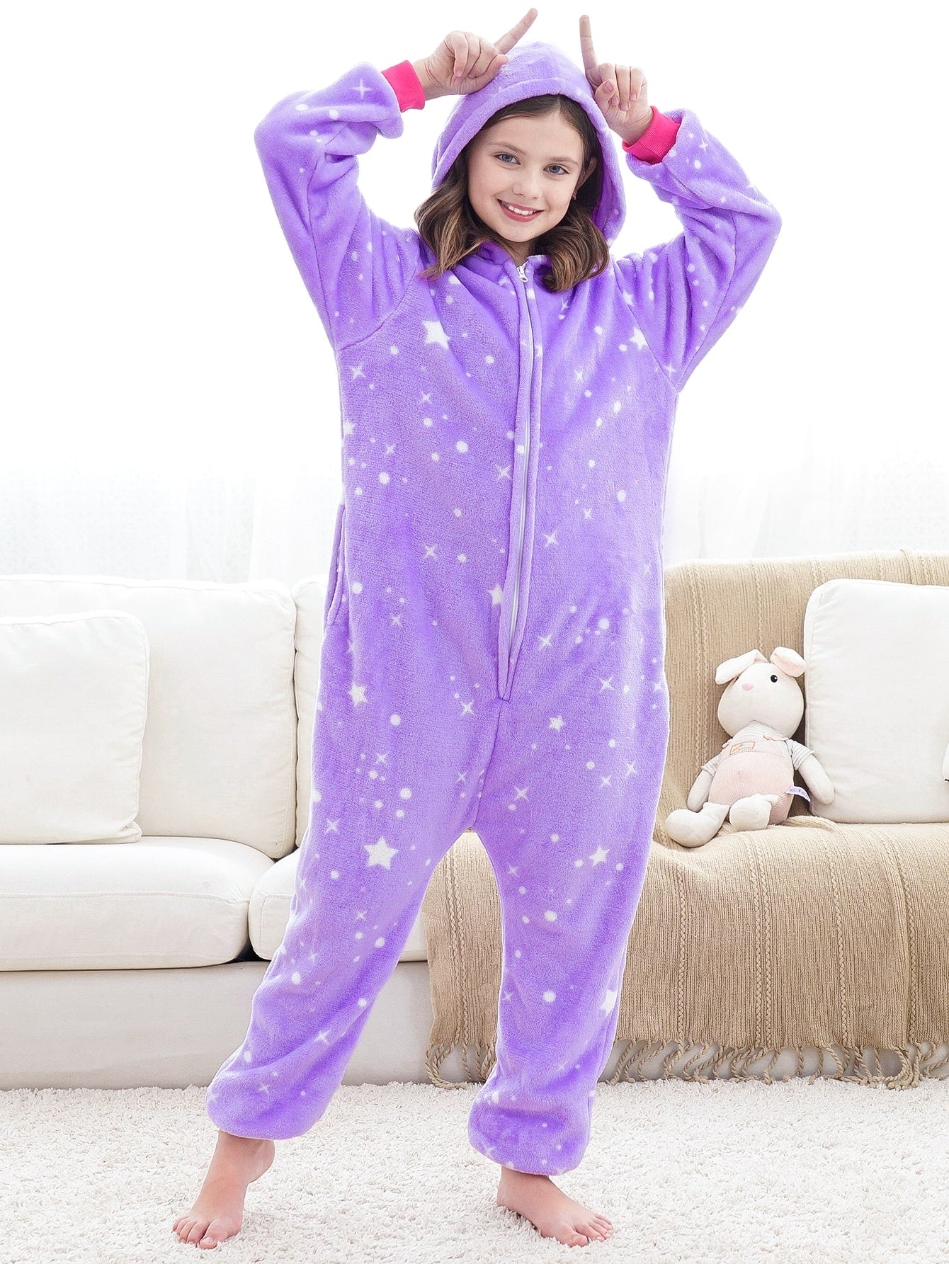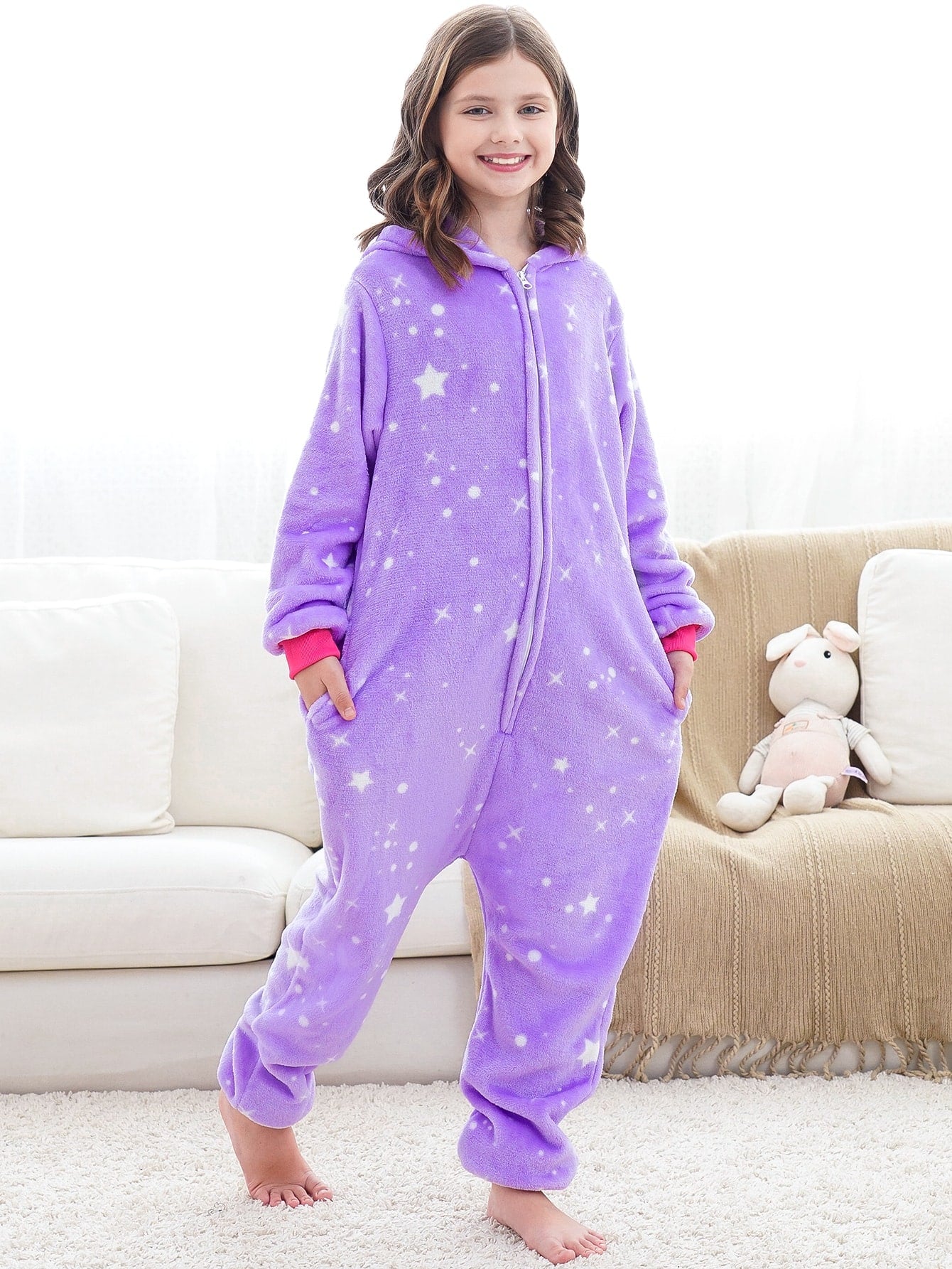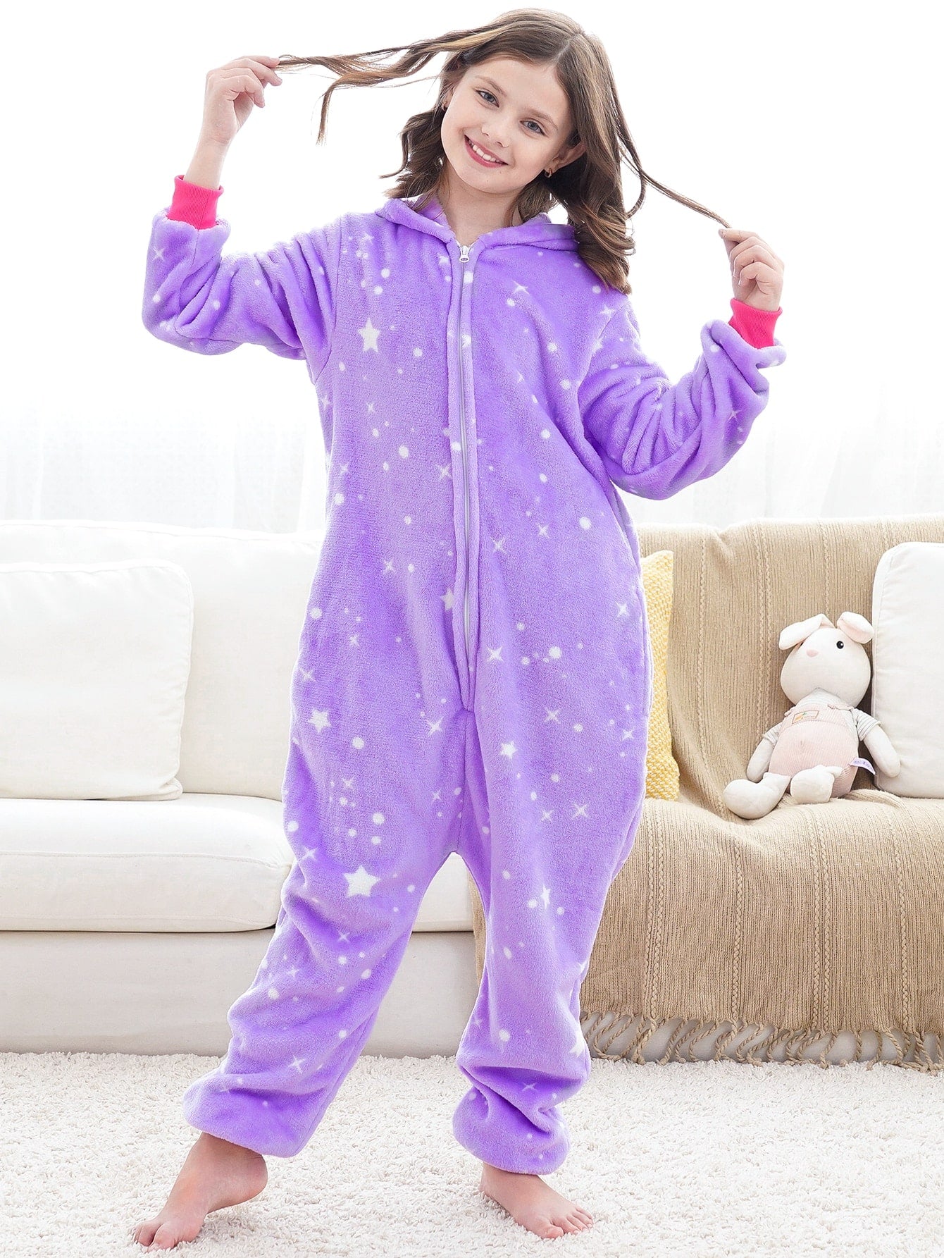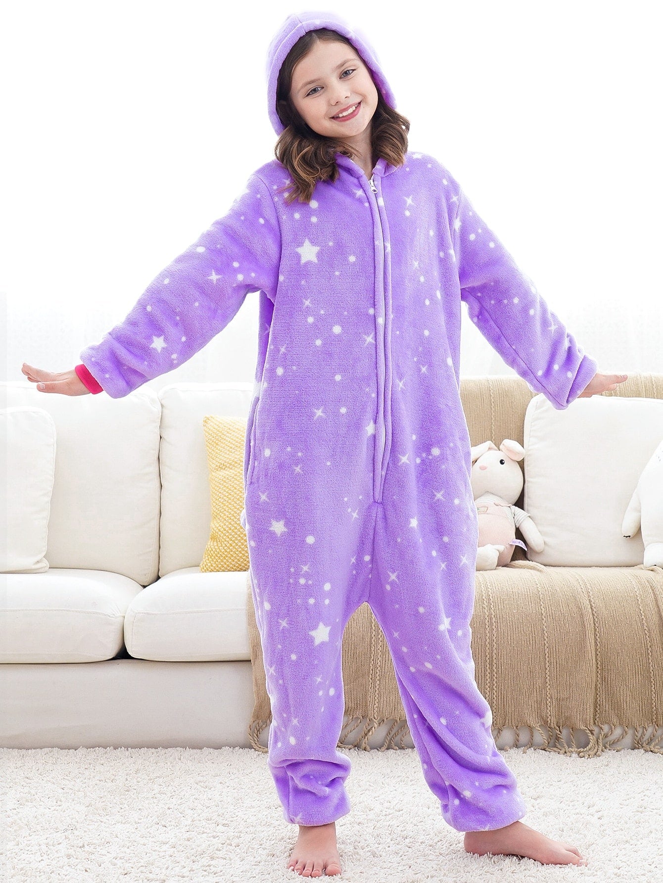 ملابس النوم القطعة الوحيدة بنمط دائرة بنفسجية و نجوم للفتيات