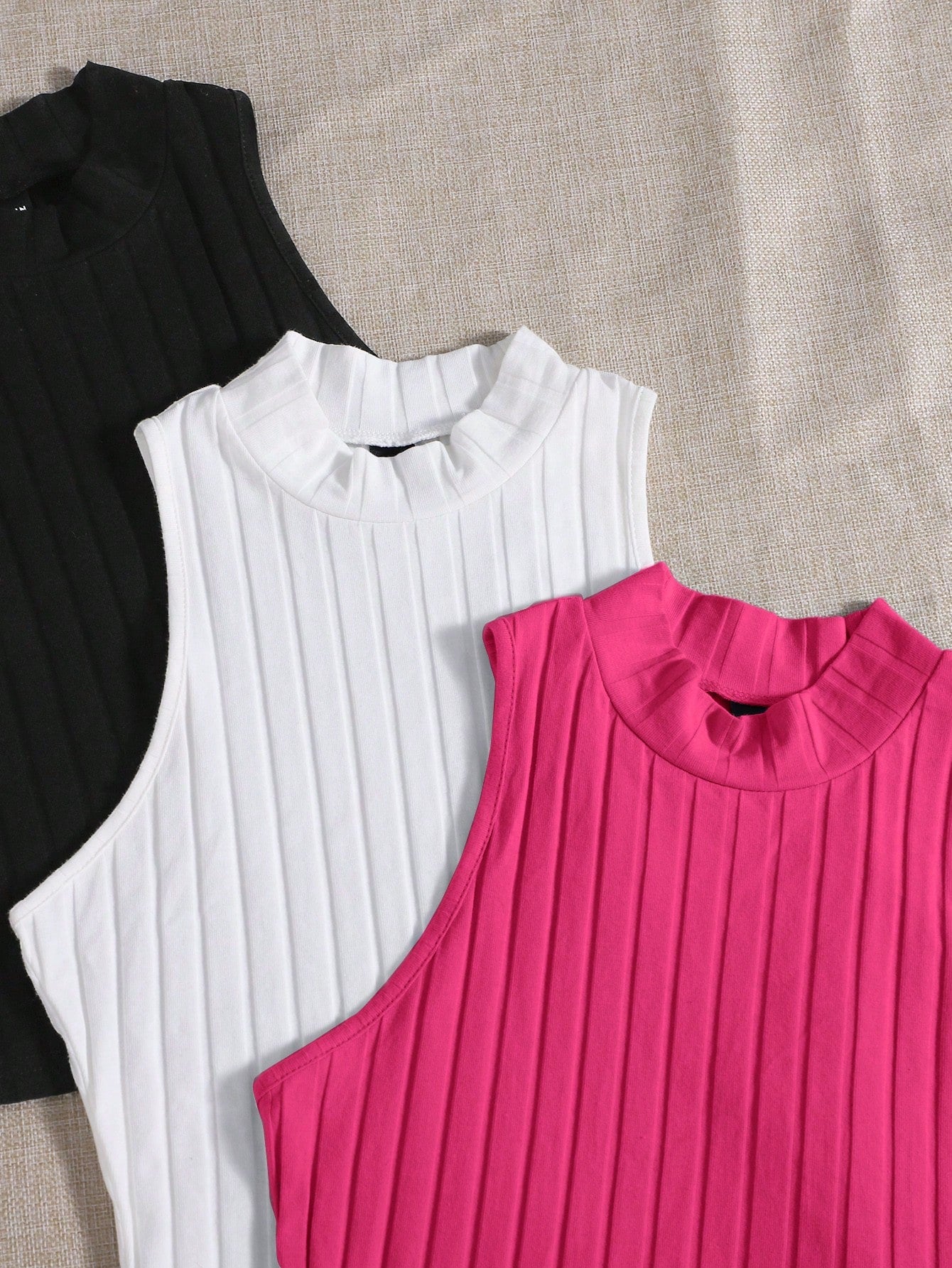 ملابس علوية بدون اكمام نسائي بتصميم اضلاع بلون سادة