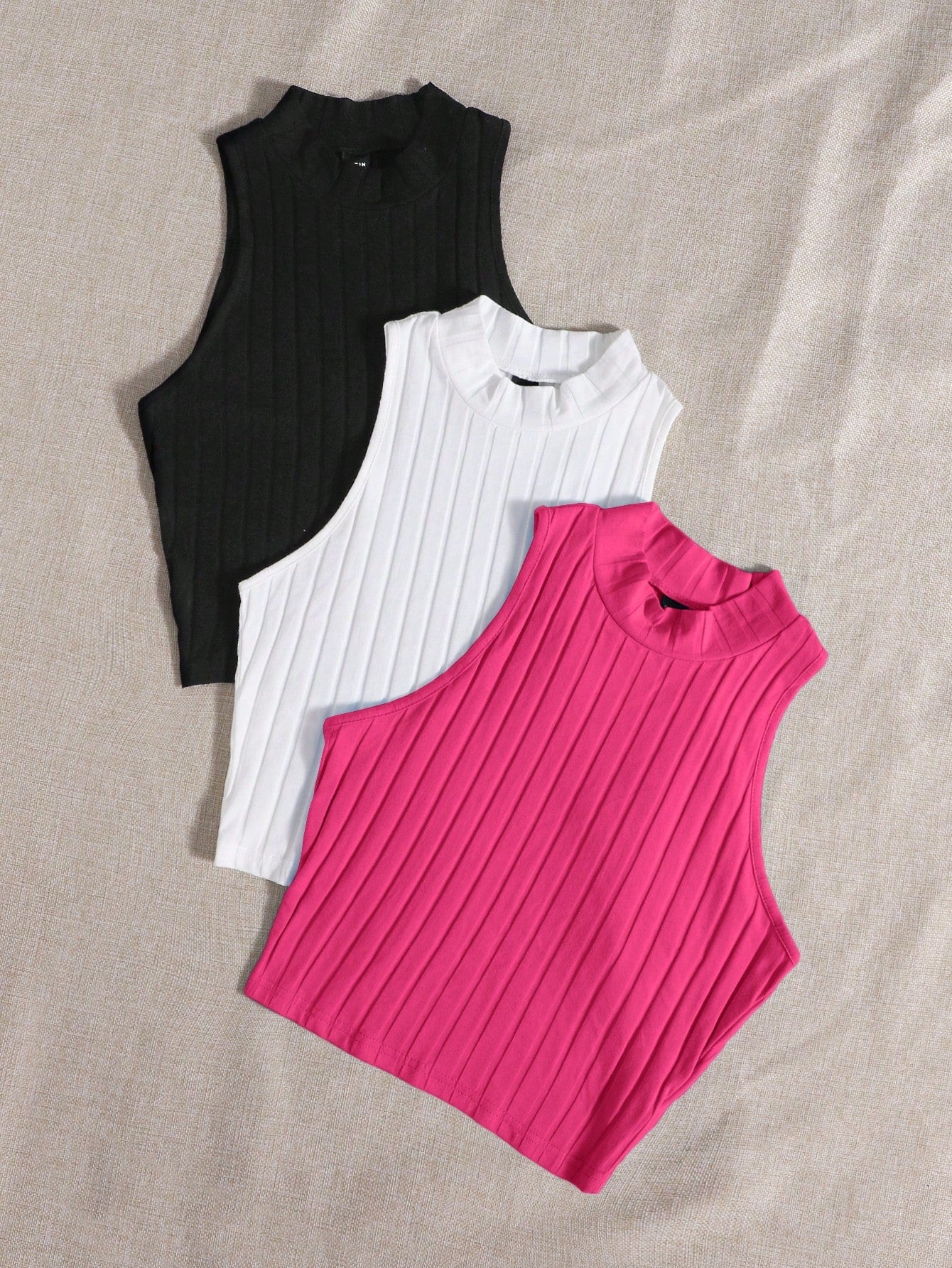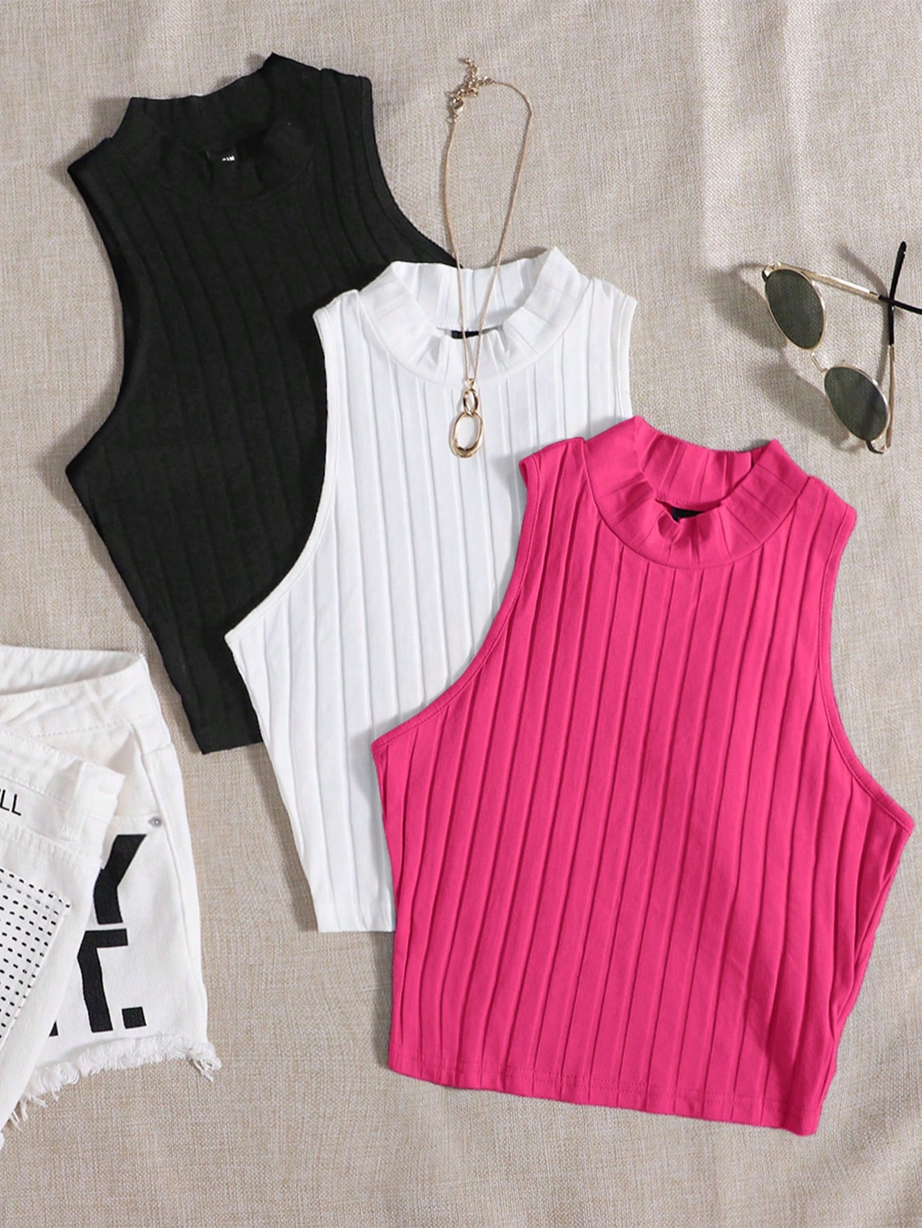 ملابس علوية بدون اكمام نسائي بتصميم اضلاع بلون سادة