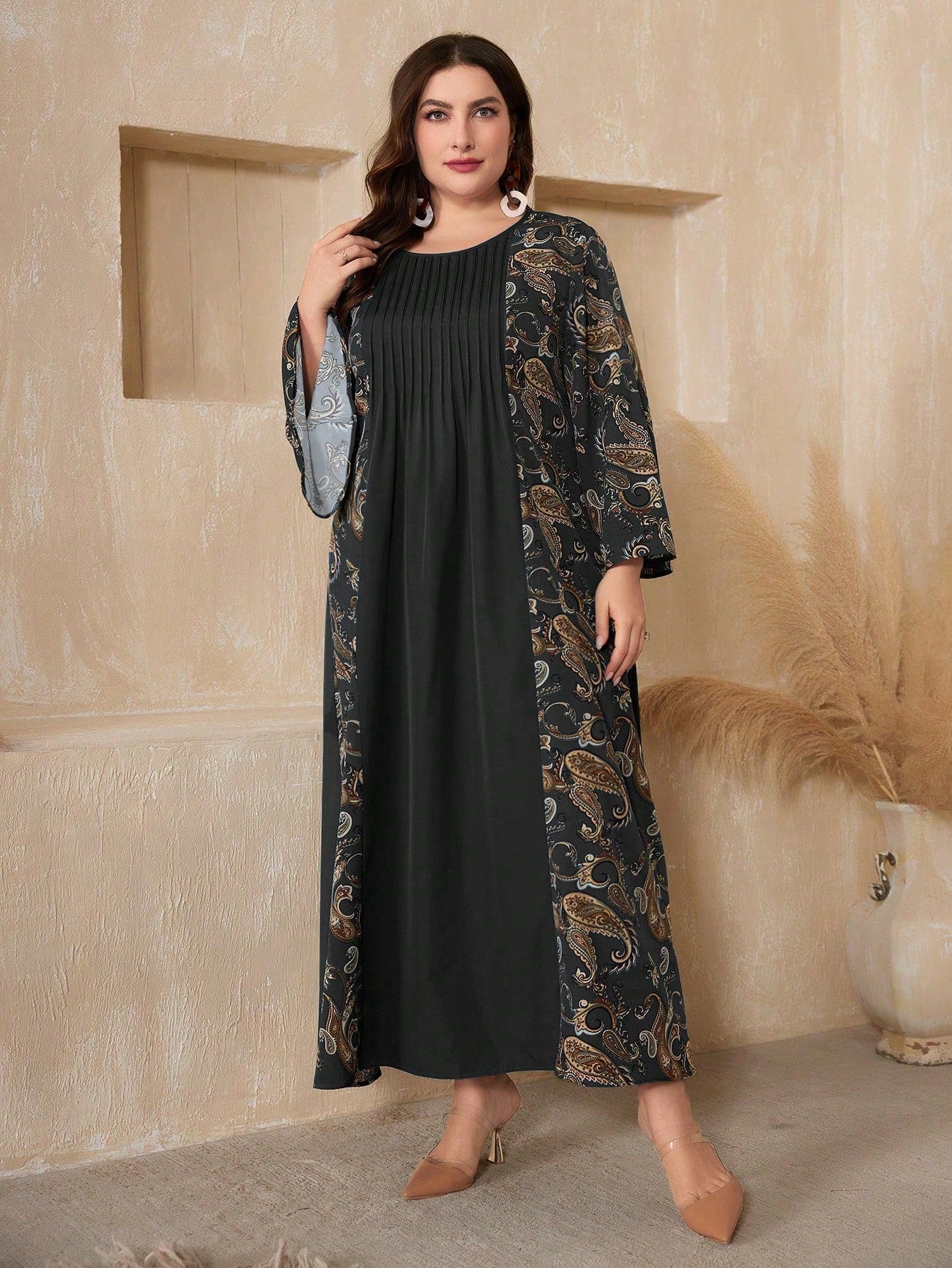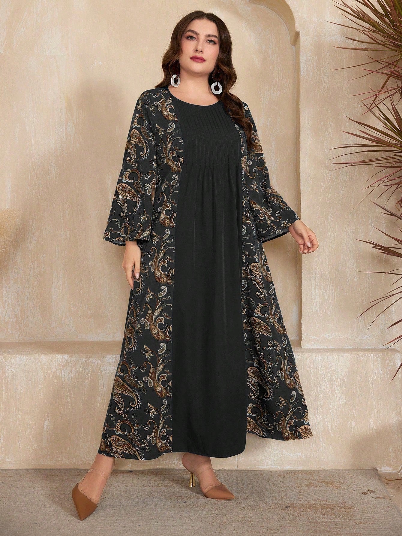 ملابس نسائية عربية بقبة دائرية وطبعة بايزلي واسعة للحجم الزائد