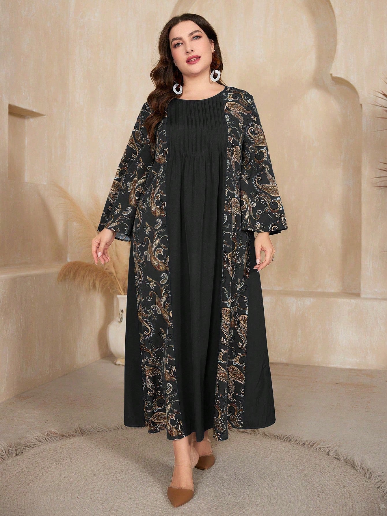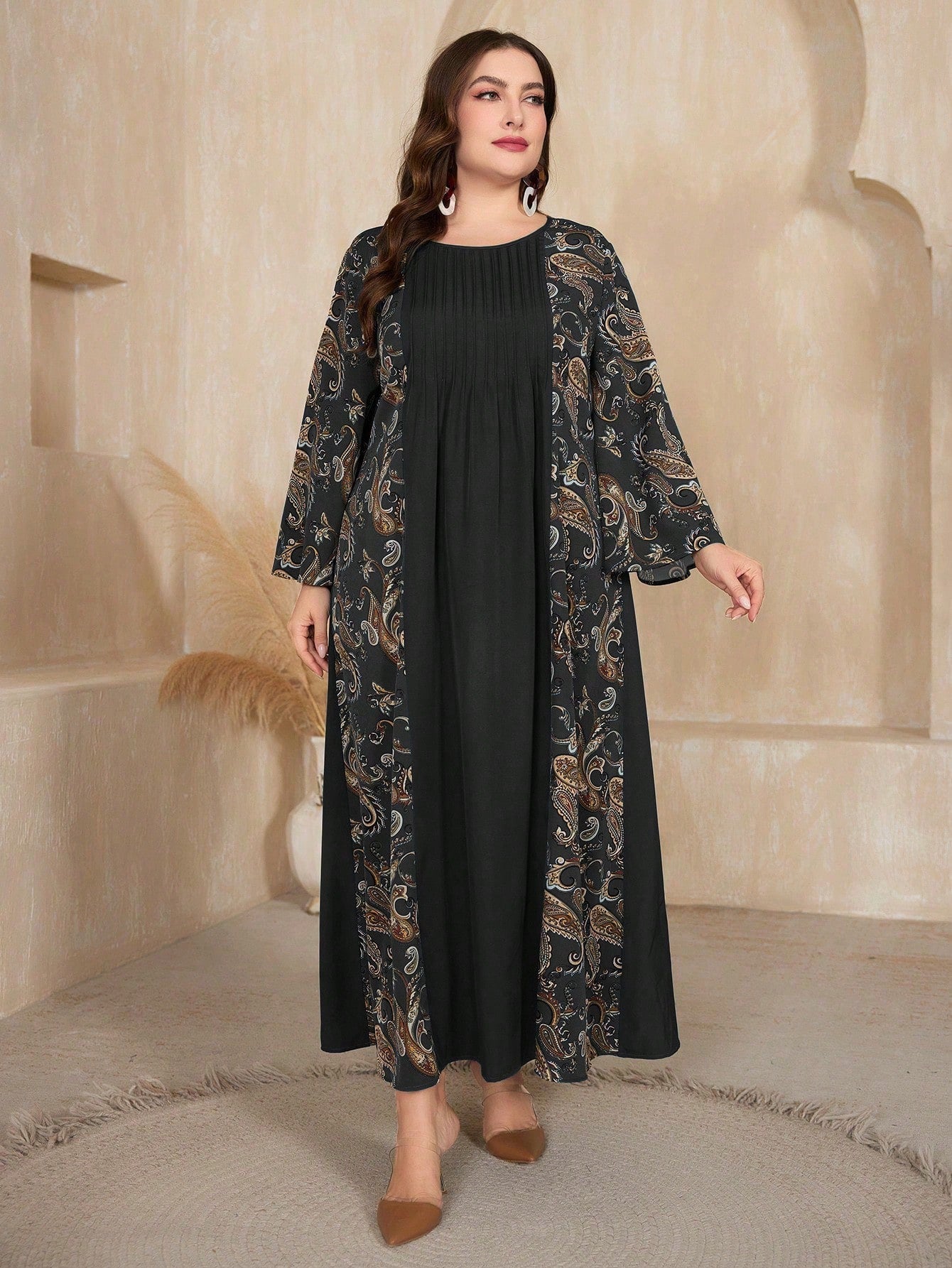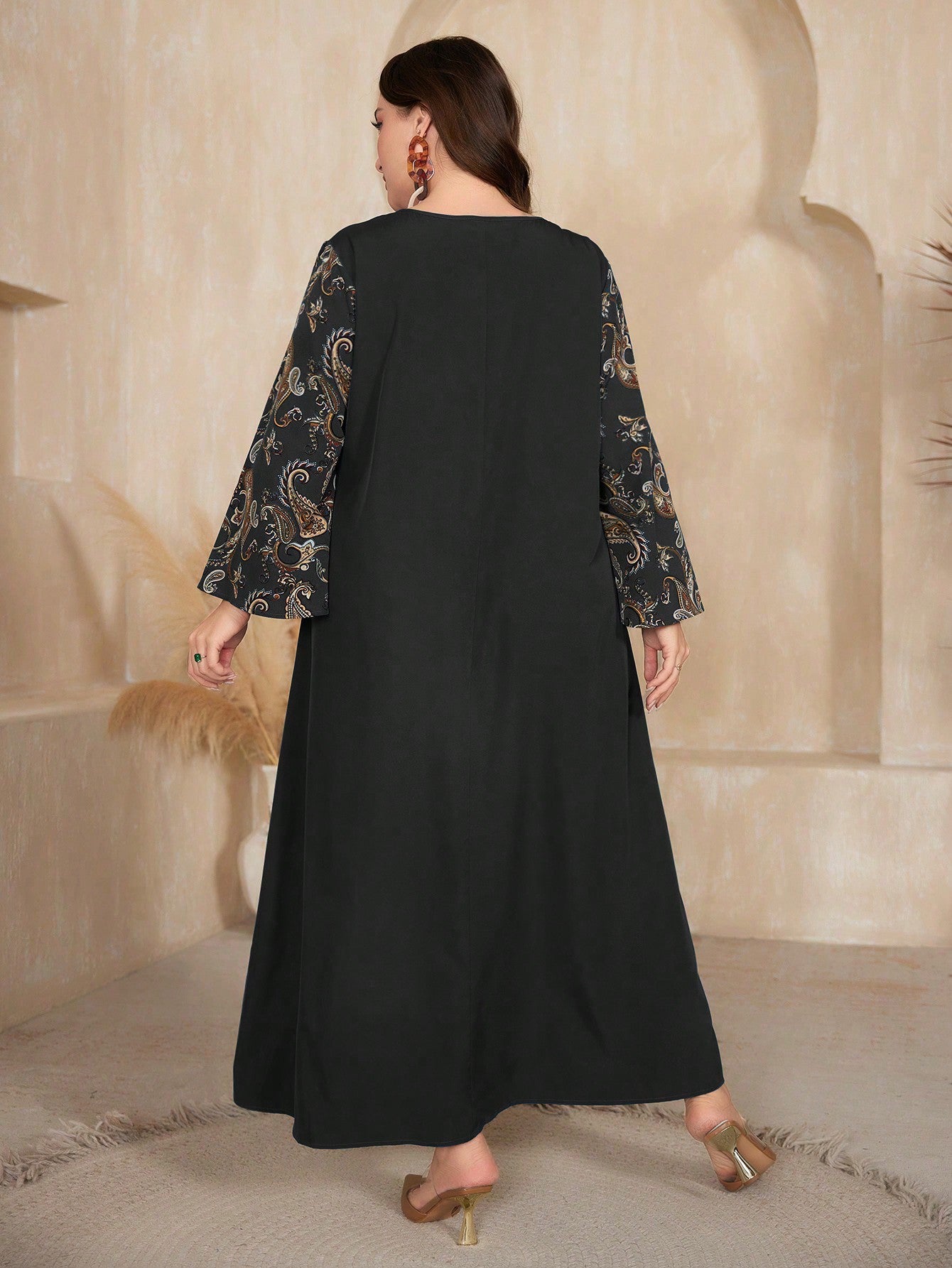 ملابس نسائية عربية بقبة دائرية وطبعة بايزلي واسعة للحجم الزائد