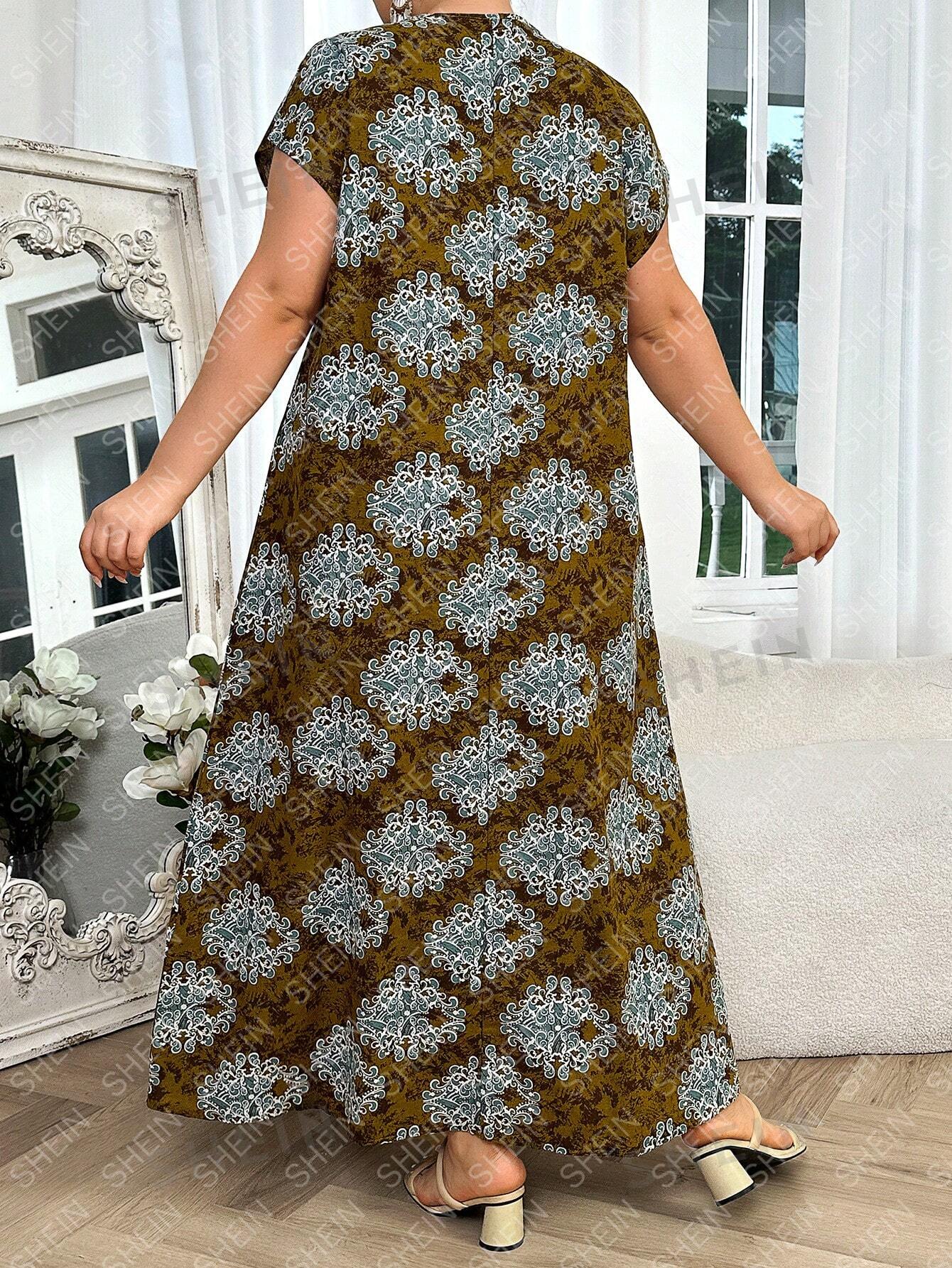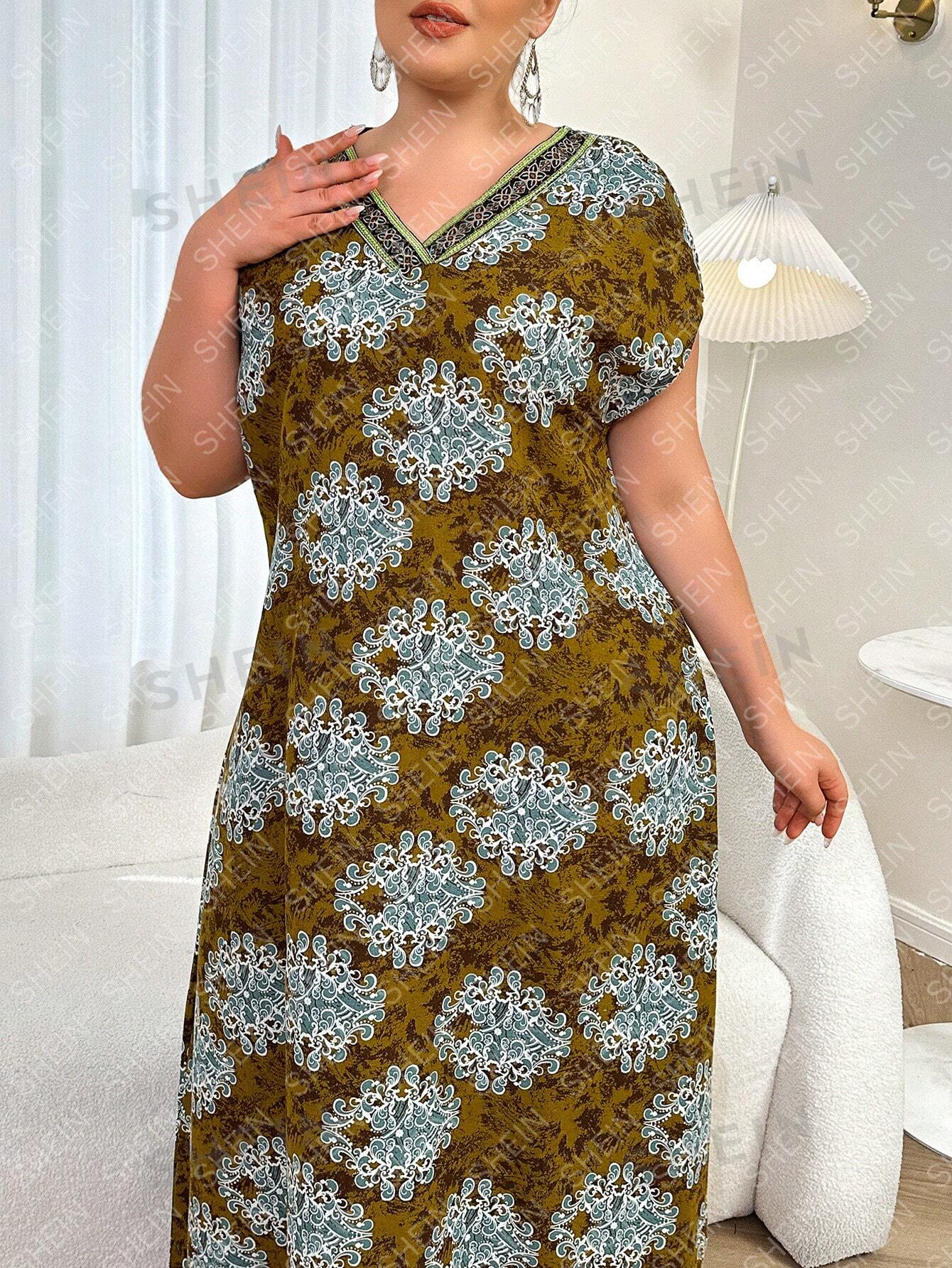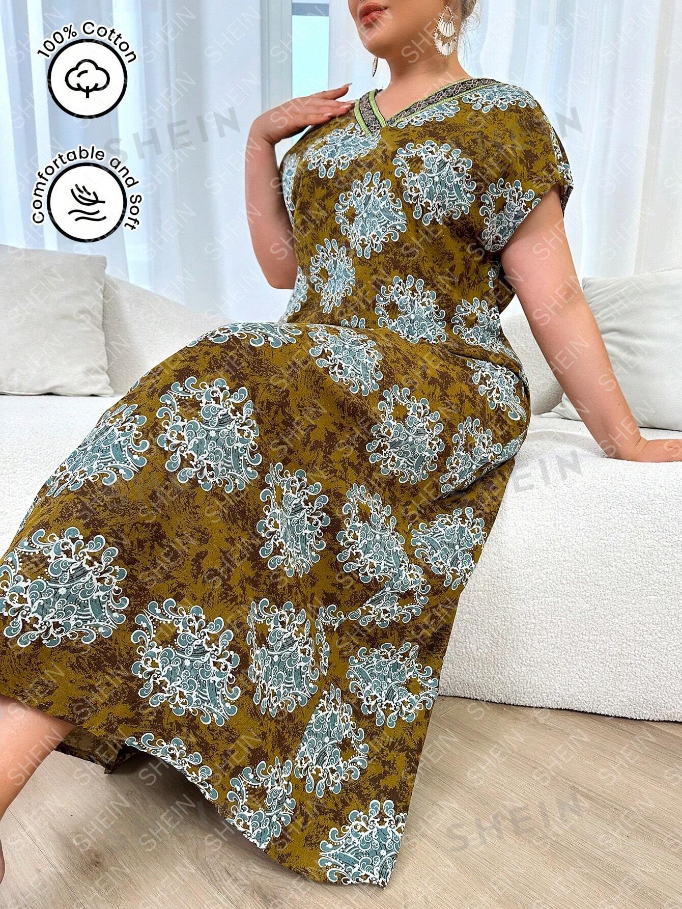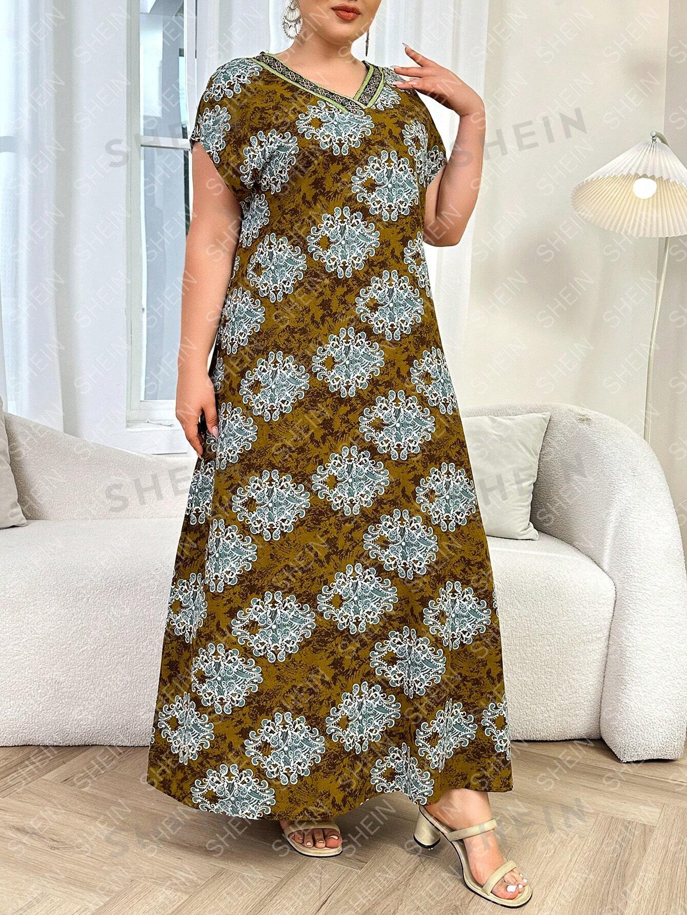ملابس نسائية يومية بالقياس الزائد مطبوع عليها رسومات عربية بسيطة