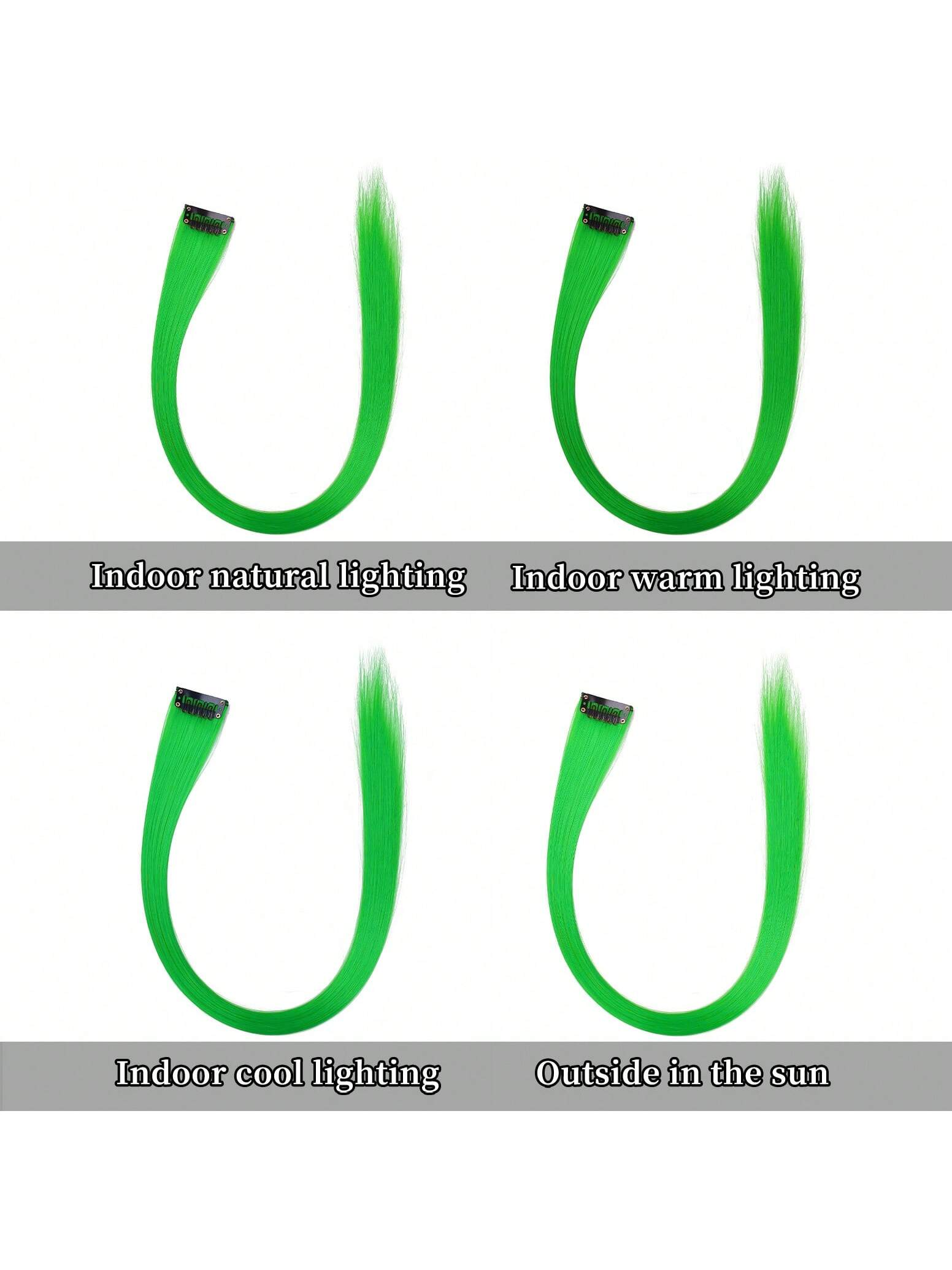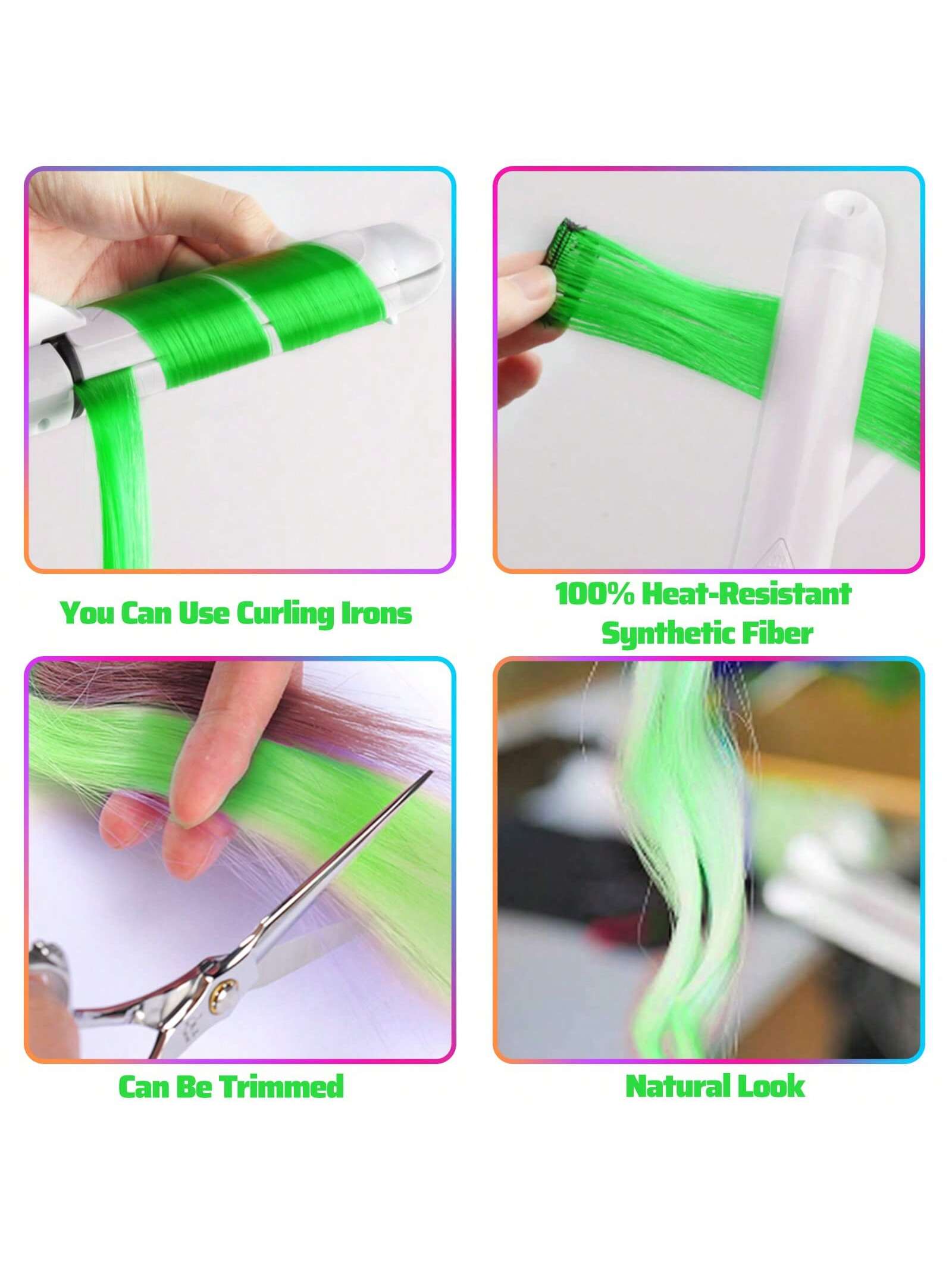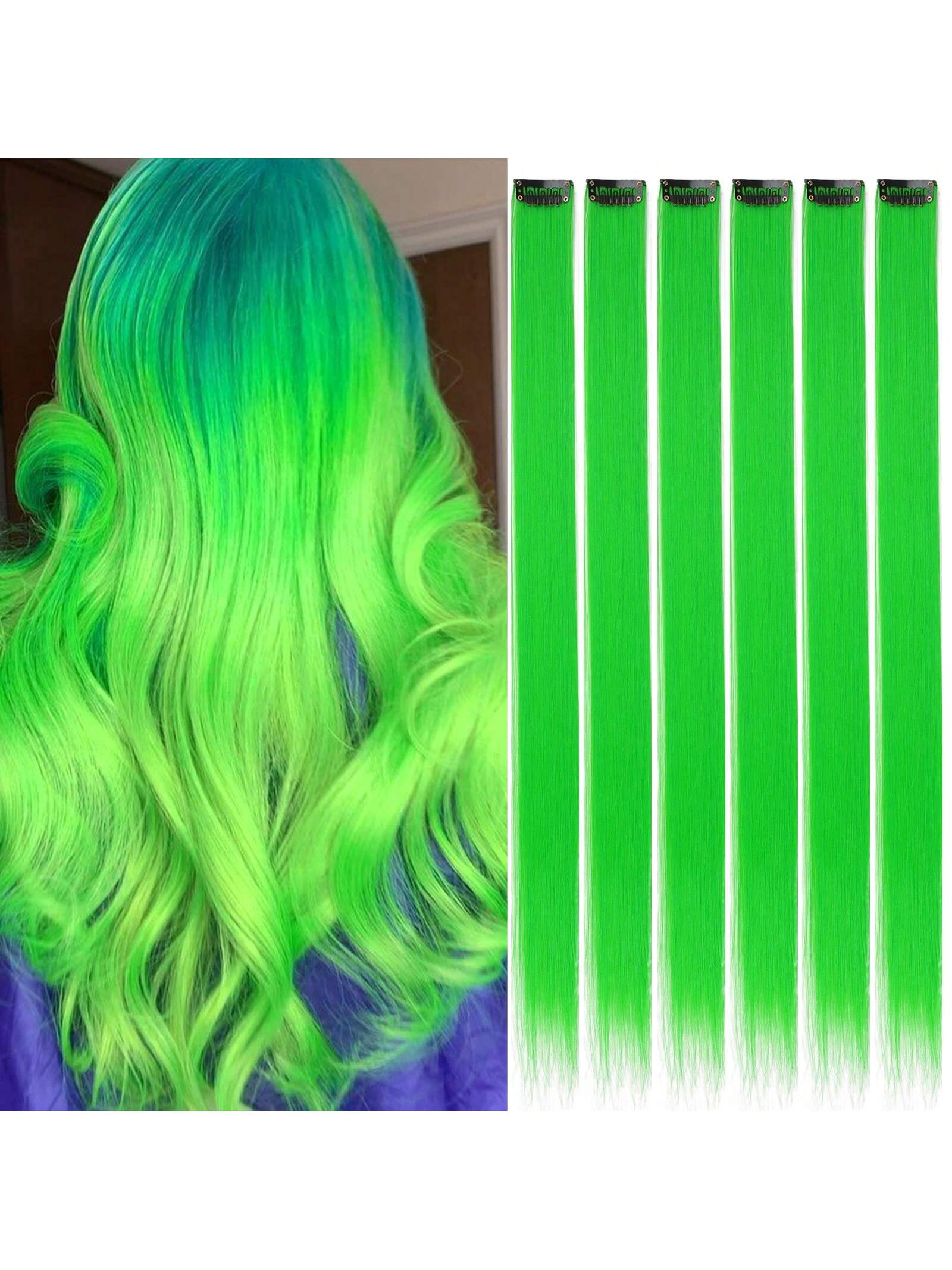 ملحقات شعر اصطناعية قصيرة مستقيمة ملونة ، 6 قطع لديها لمعان حرفي 20بوصة ، ملحقات شعر بلون أخضر لتنكر عيد الهالوين و حفلات الأزياء مناسبة للفتيات والنساء باروكة