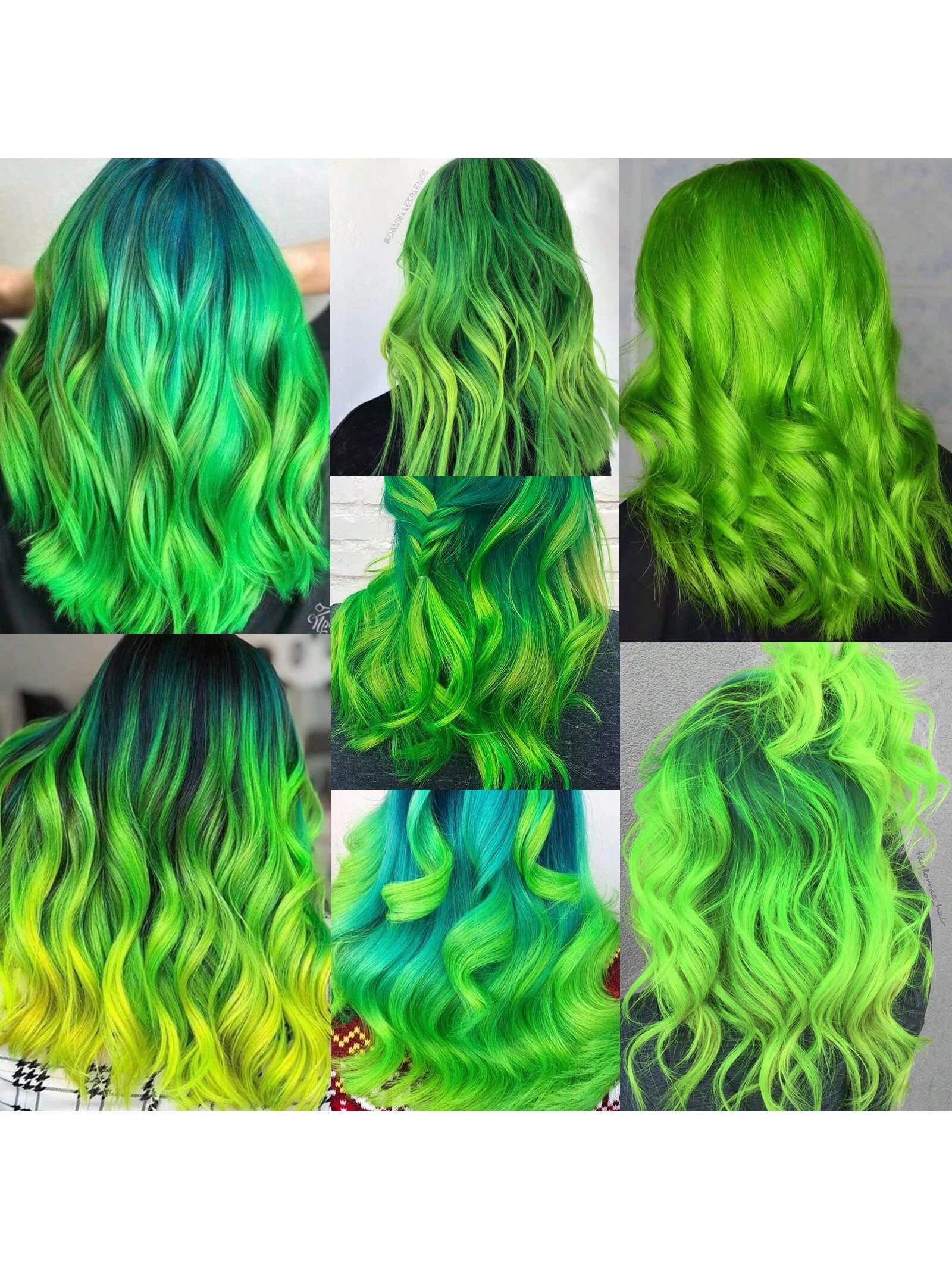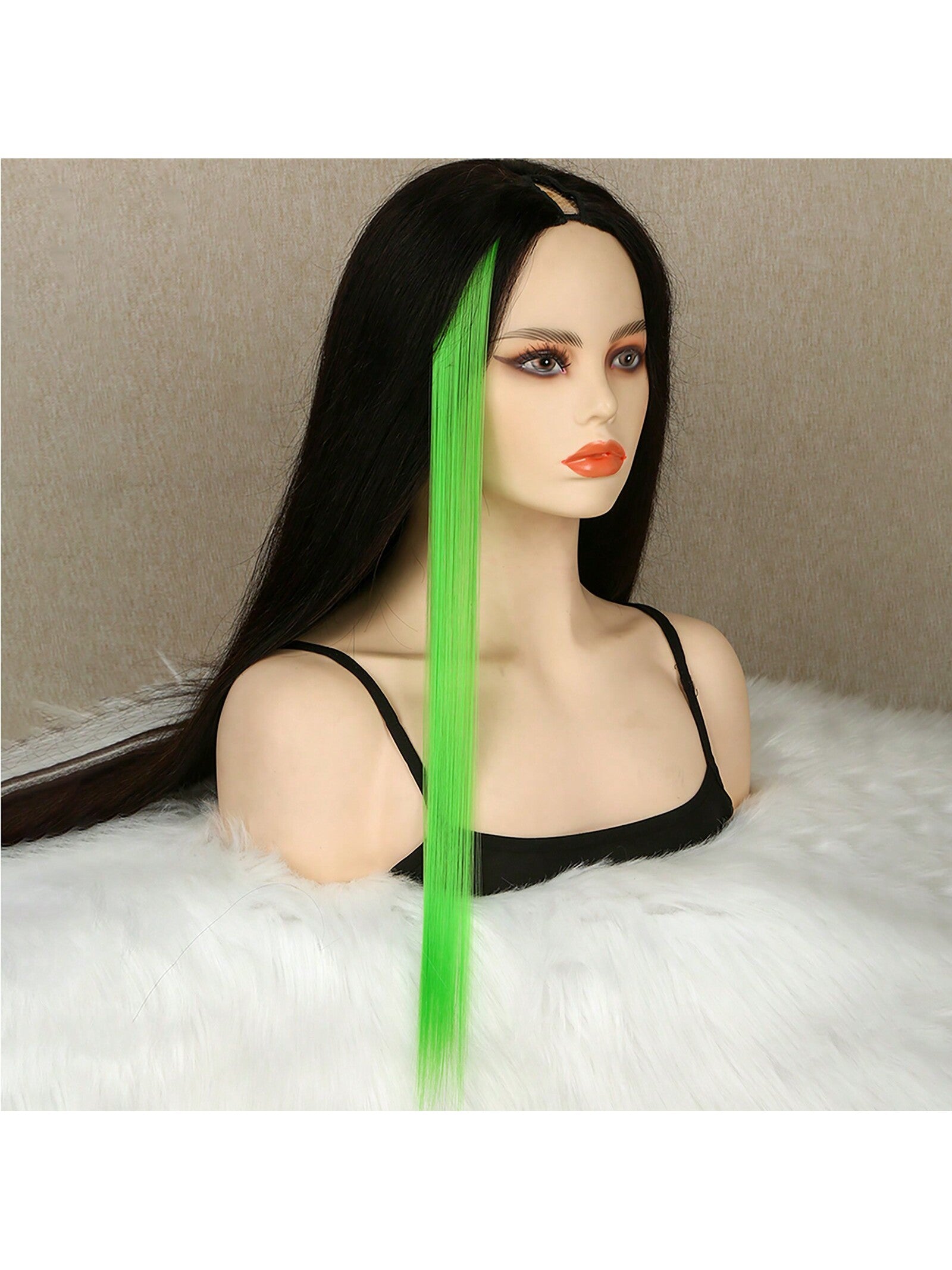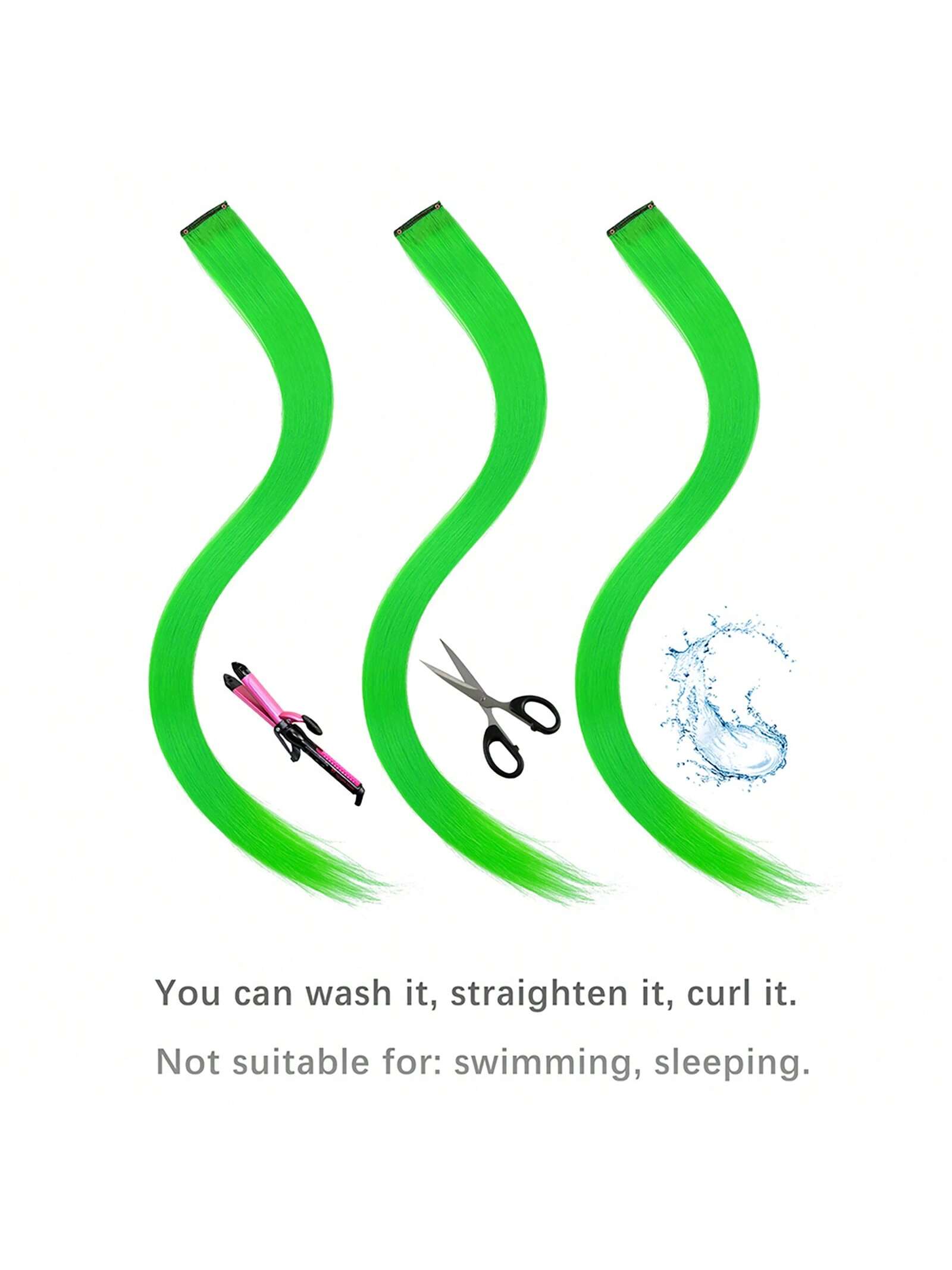ملحقات شعر اصطناعية قصيرة مستقيمة ملونة ، 6 قطع لديها لمعان حرفي 20بوصة ، ملحقات شعر بلون أخضر لتنكر عيد الهالوين و حفلات الأزياء مناسبة للفتيات والنساء باروكة