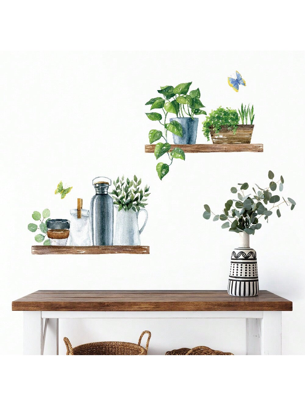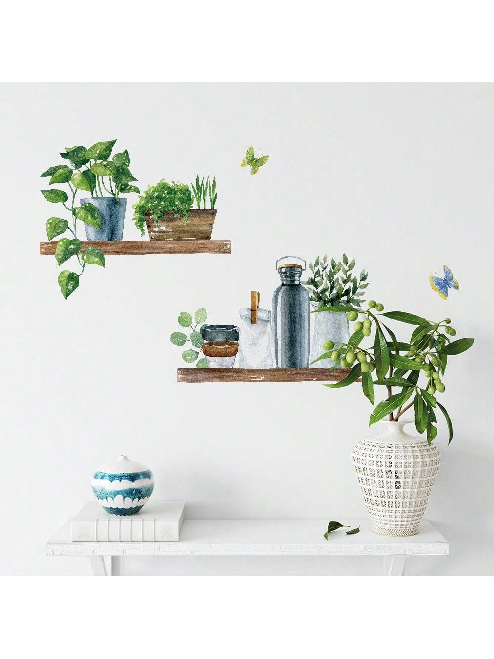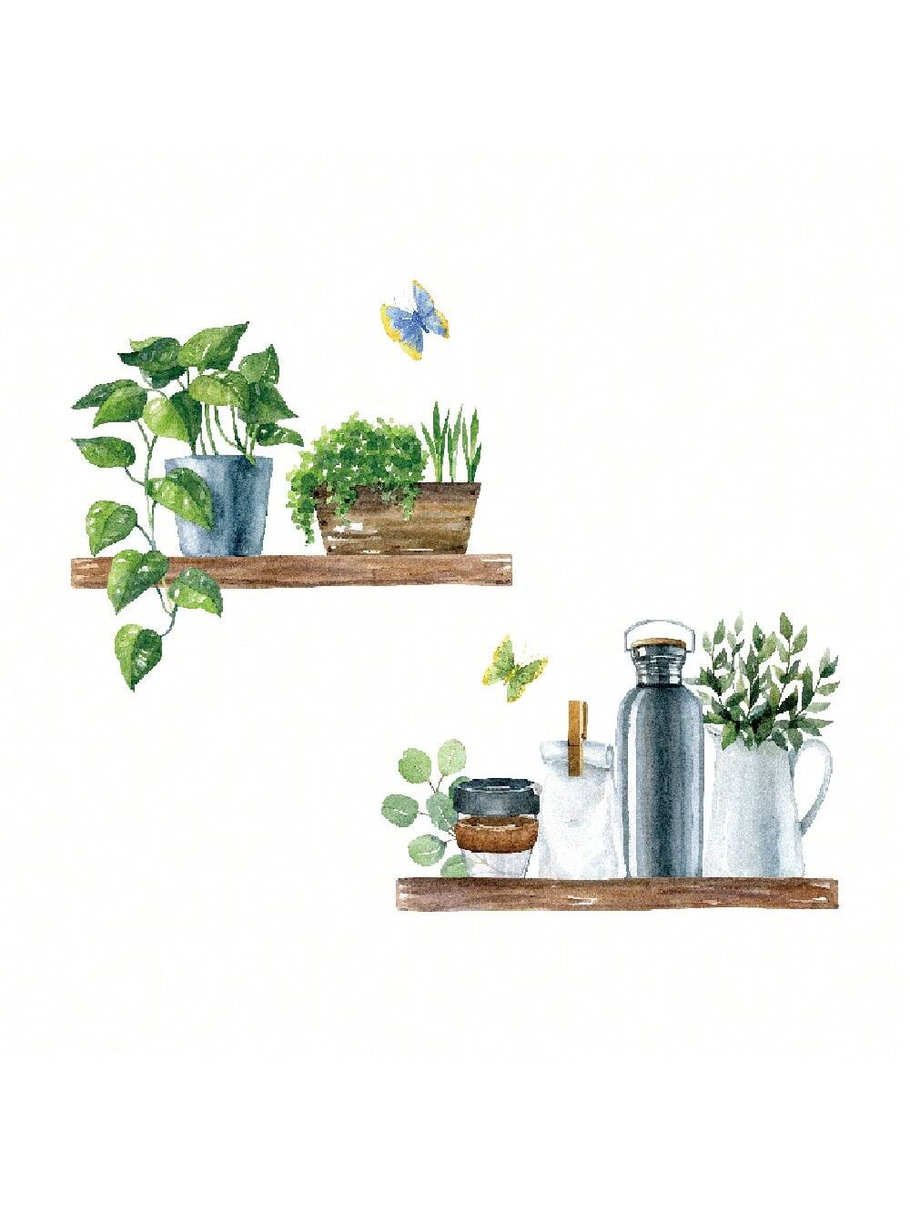 ملصق جداري مقاوم للماء يحمل صورة نباتات مزروعة بتقنية ألوان مائية