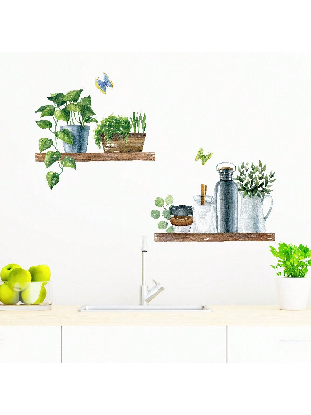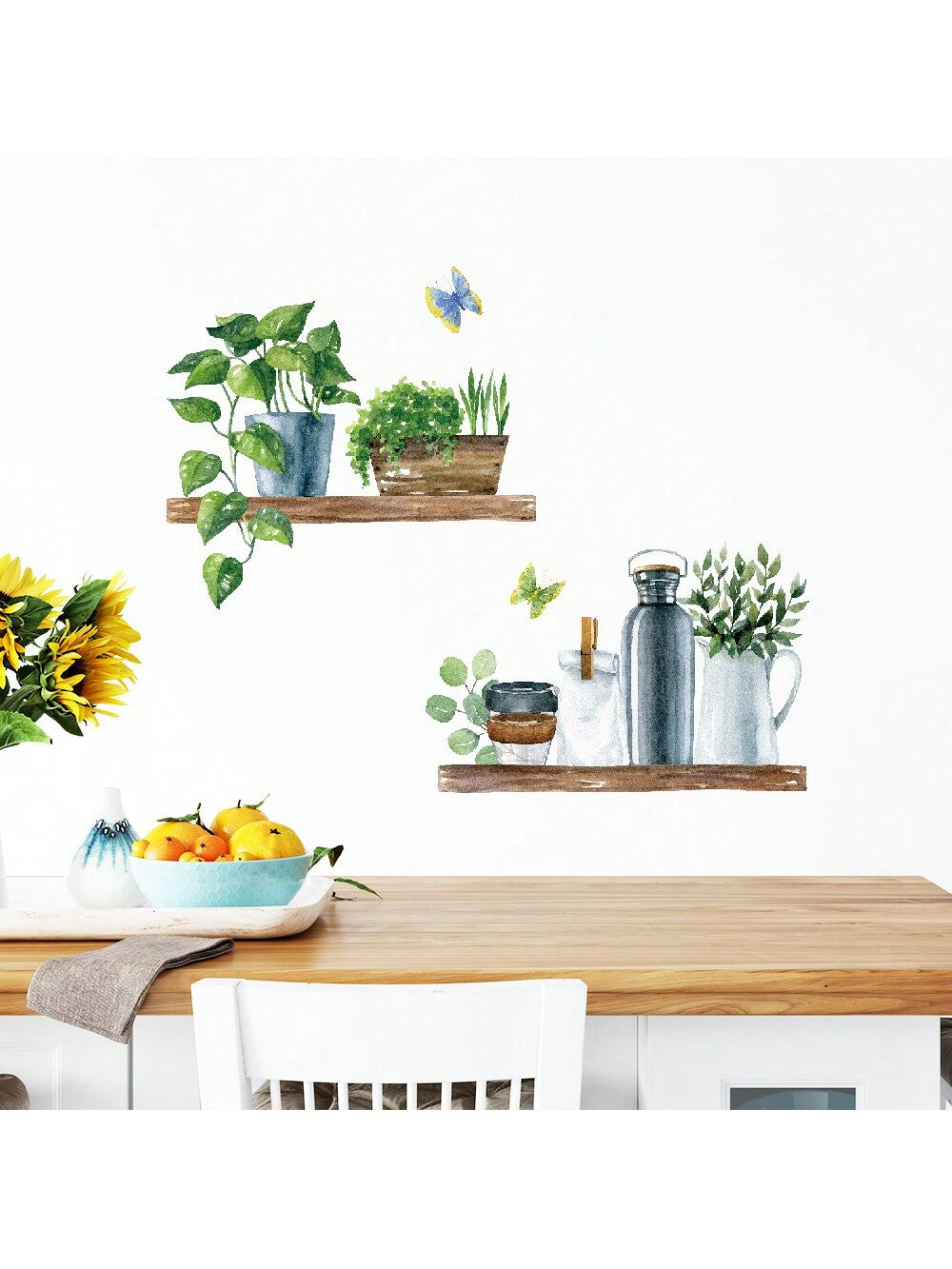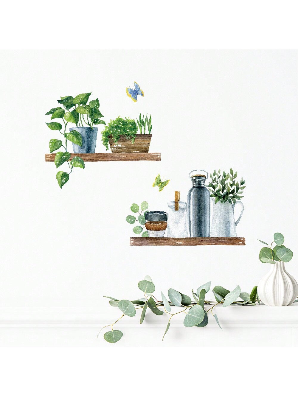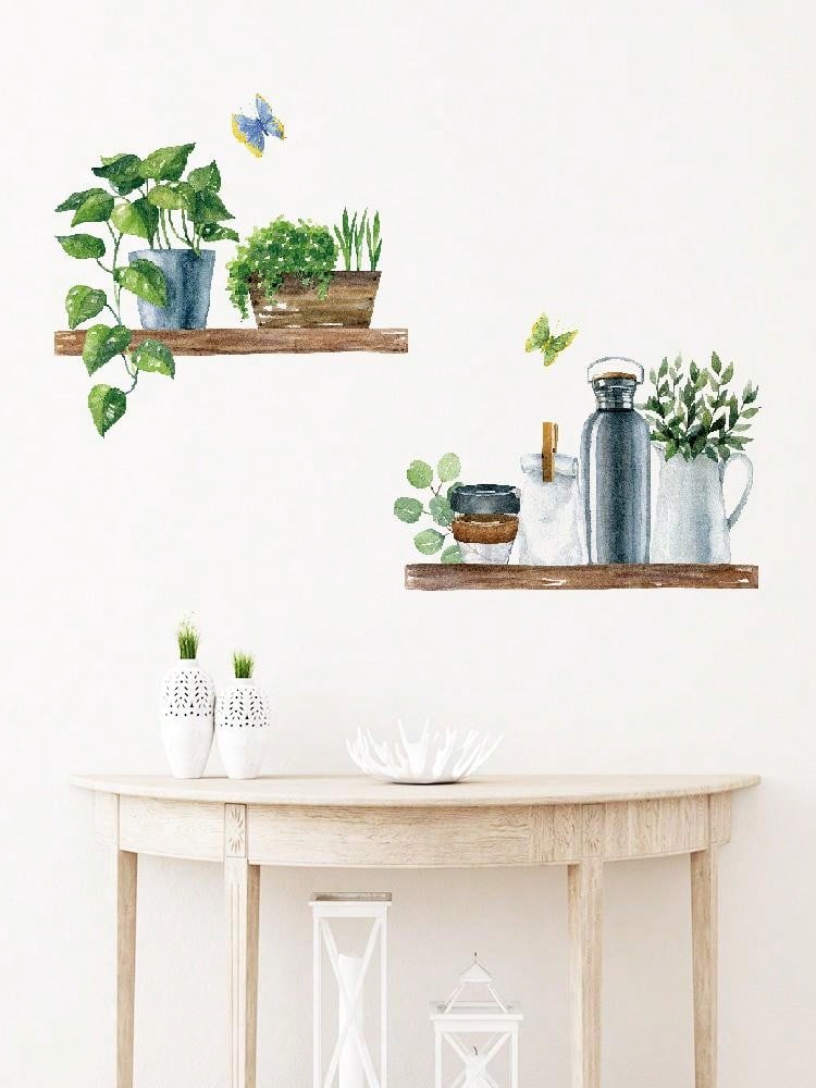 ملصق جداري مقاوم للماء يحمل صورة نباتات مزروعة بتقنية ألوان مائية