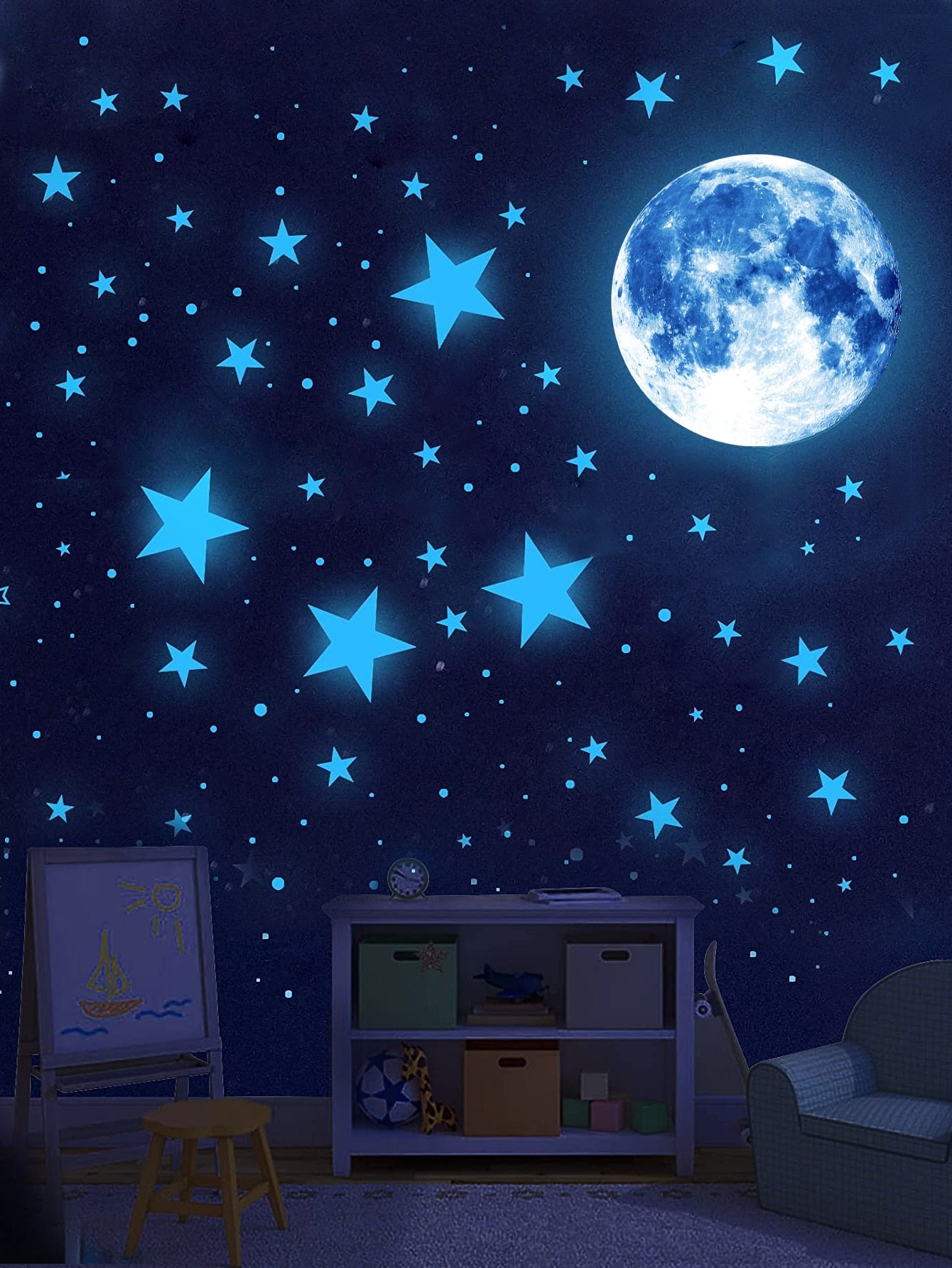 ملصق حائط مطبوع عليه نجمة وقمر