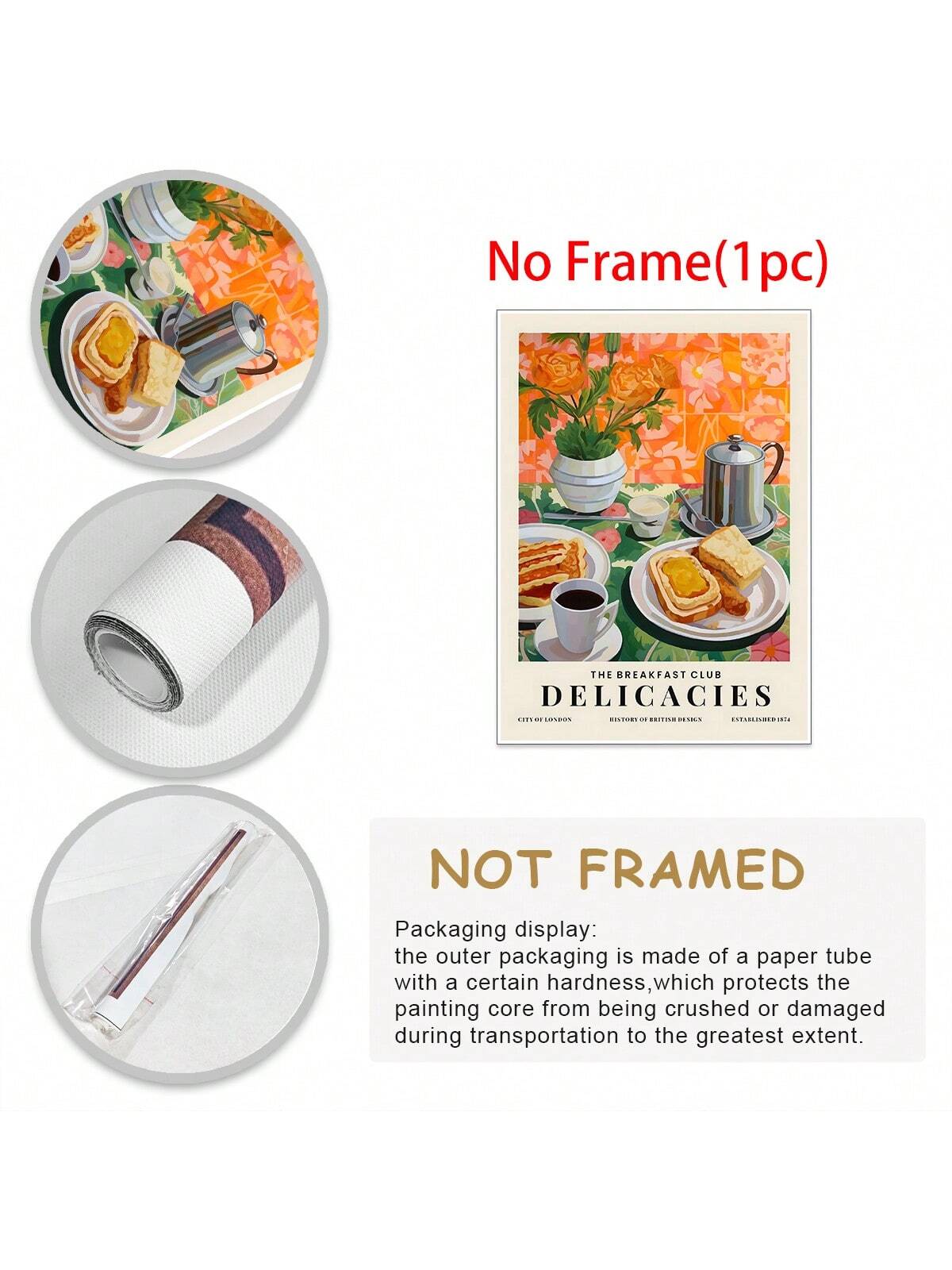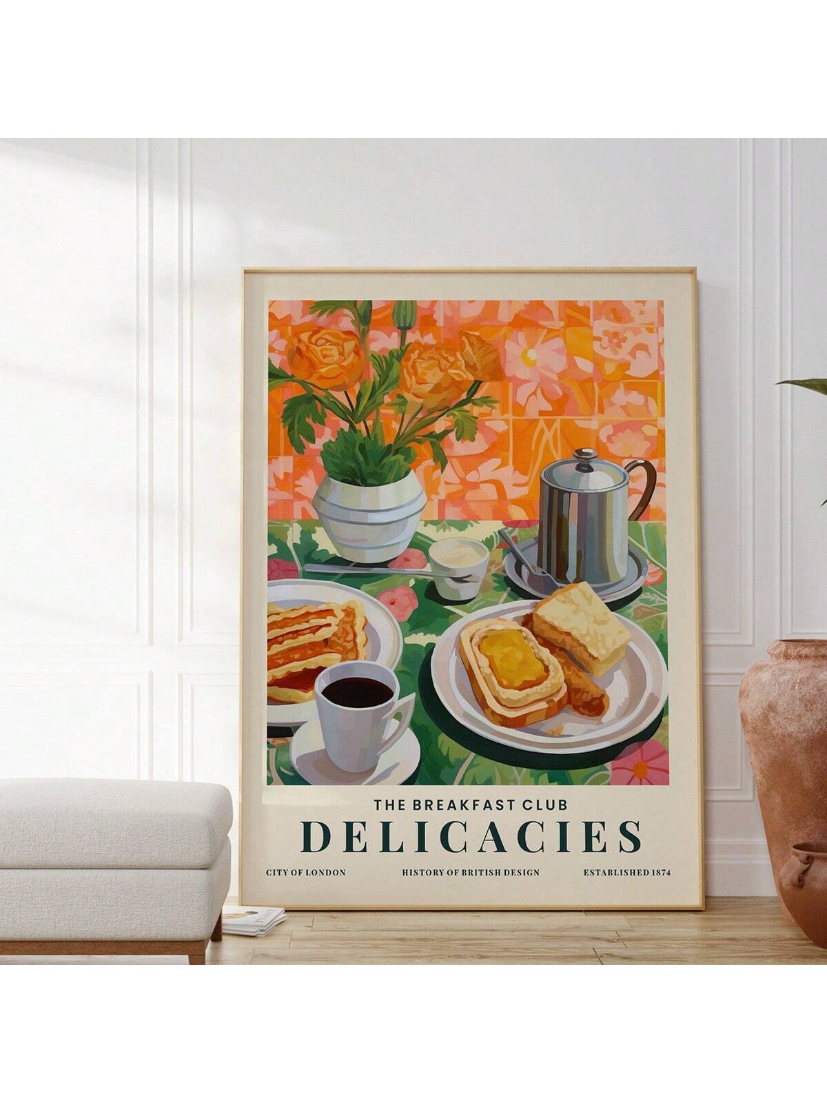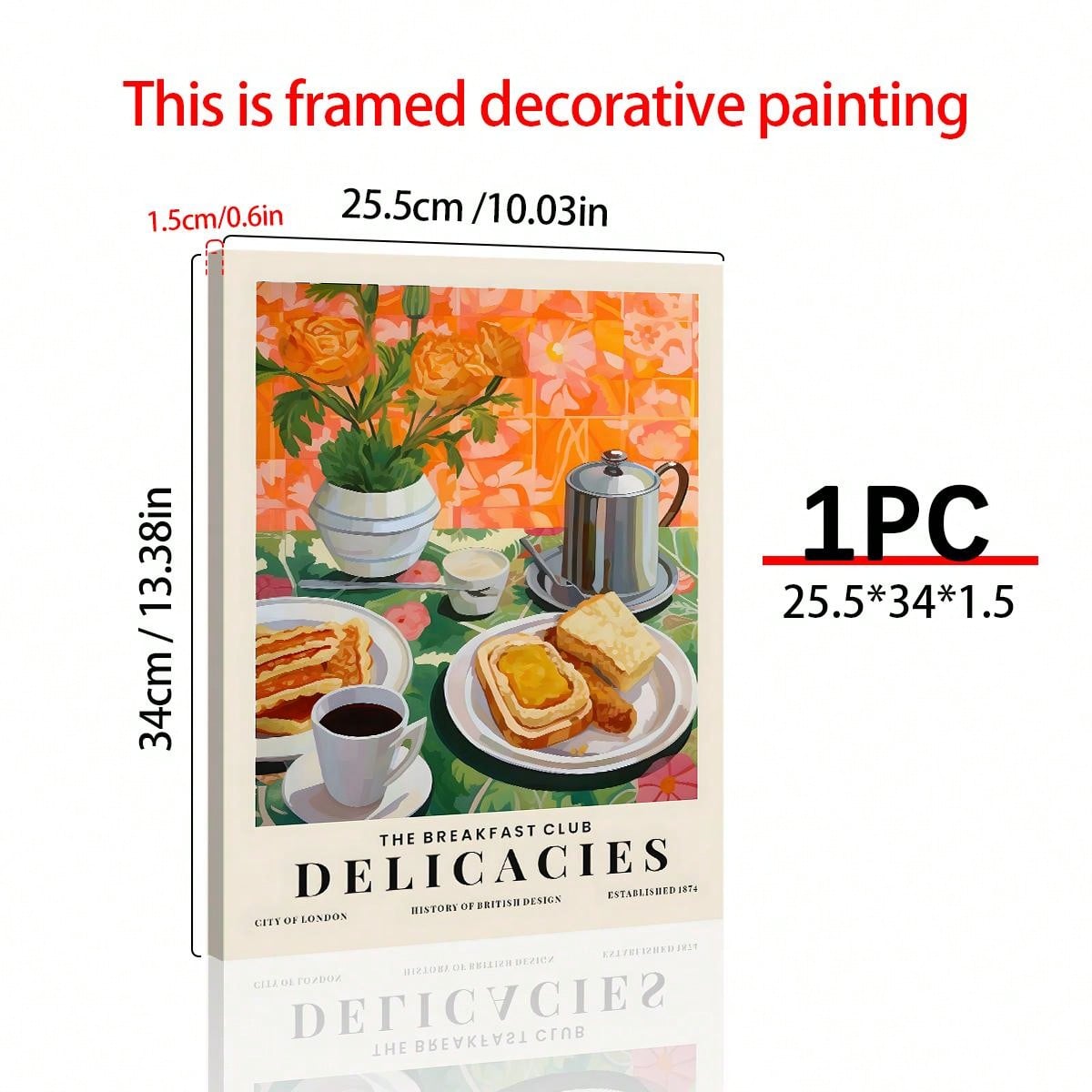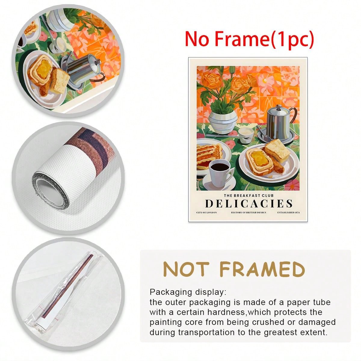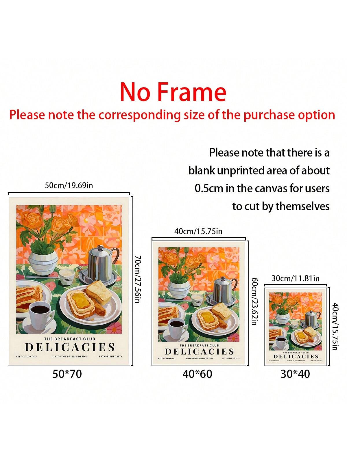 ملصق طبيعة صامتة مطبوع بالشاي والخبز لوجبة الإفطار، ملصق جداري للمطبخ، زهور، ملصقات ملونة، هدية للمحبين للطعام، ديكور ممتع، ملصقات كانفاس للمطبخ المنزلي