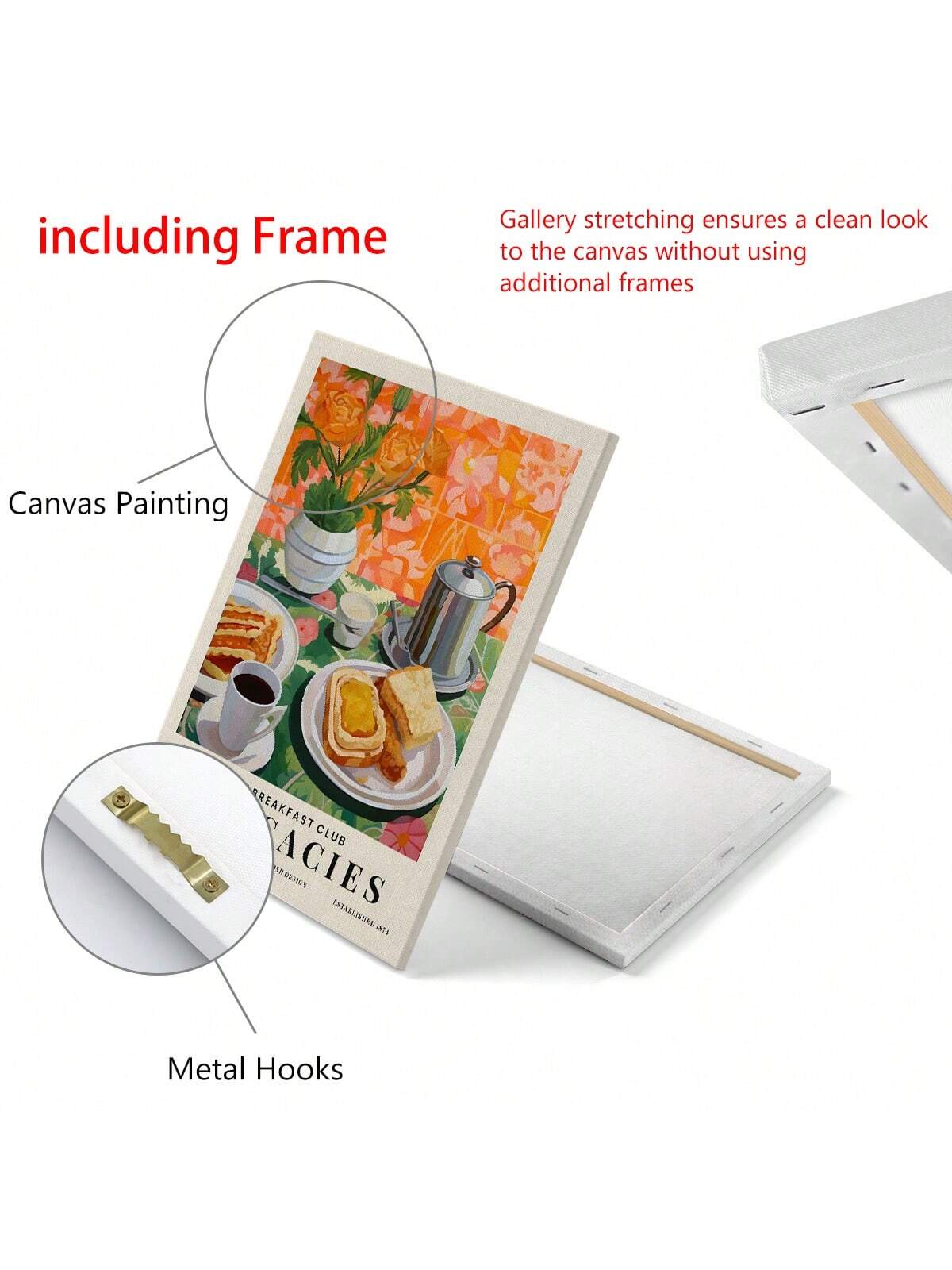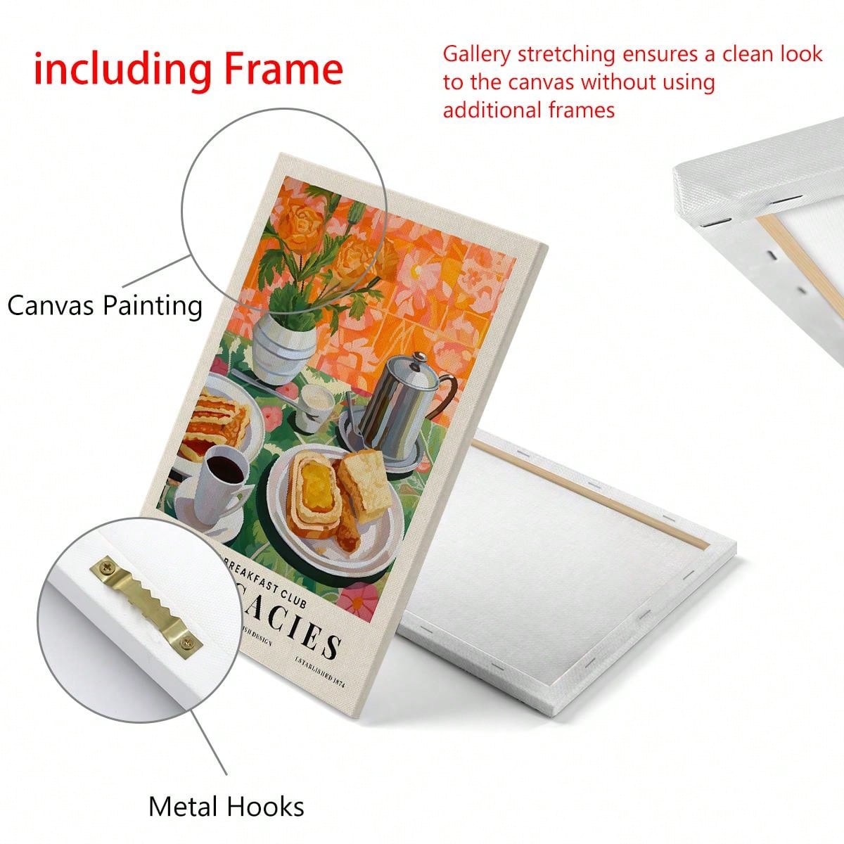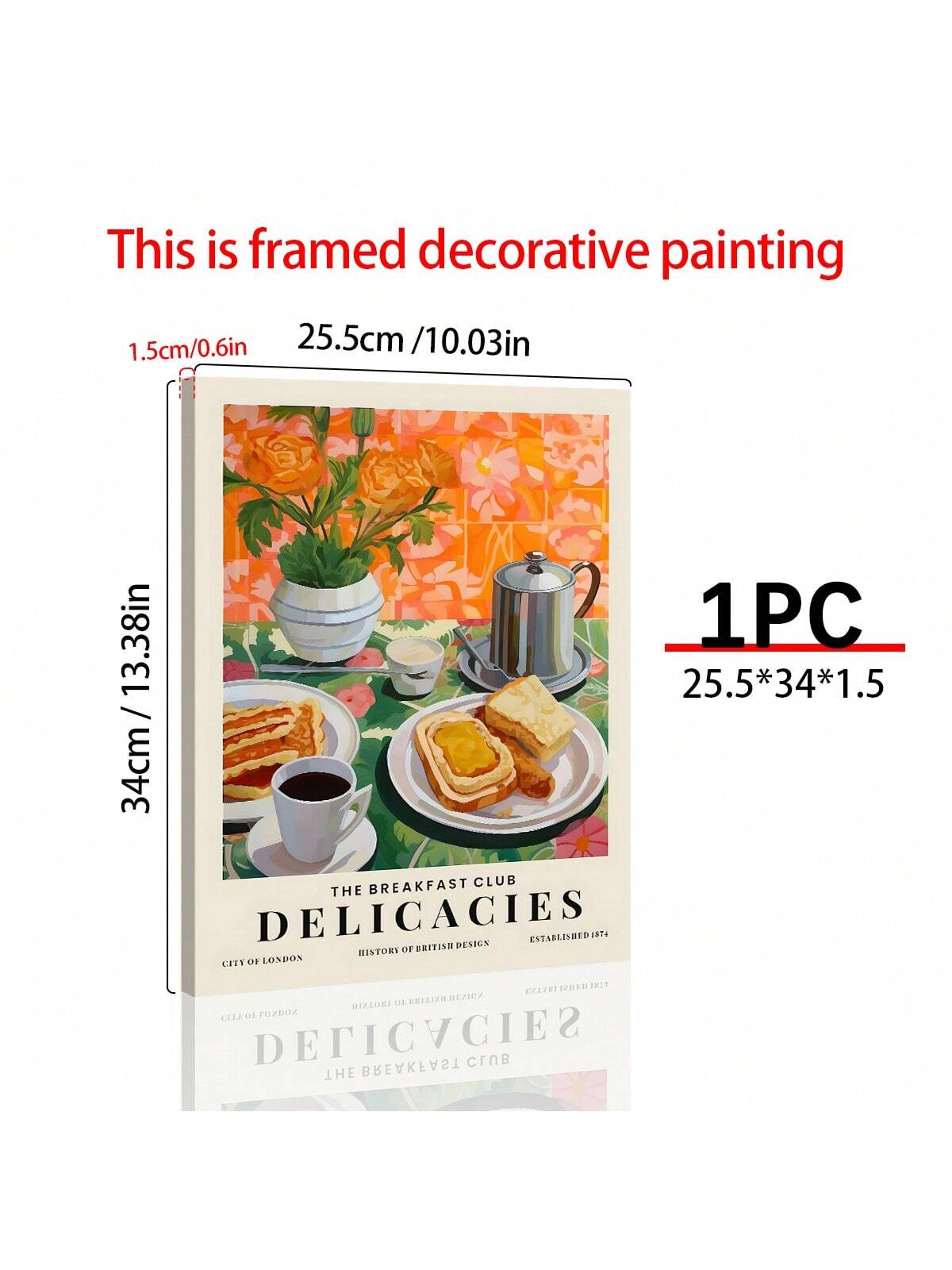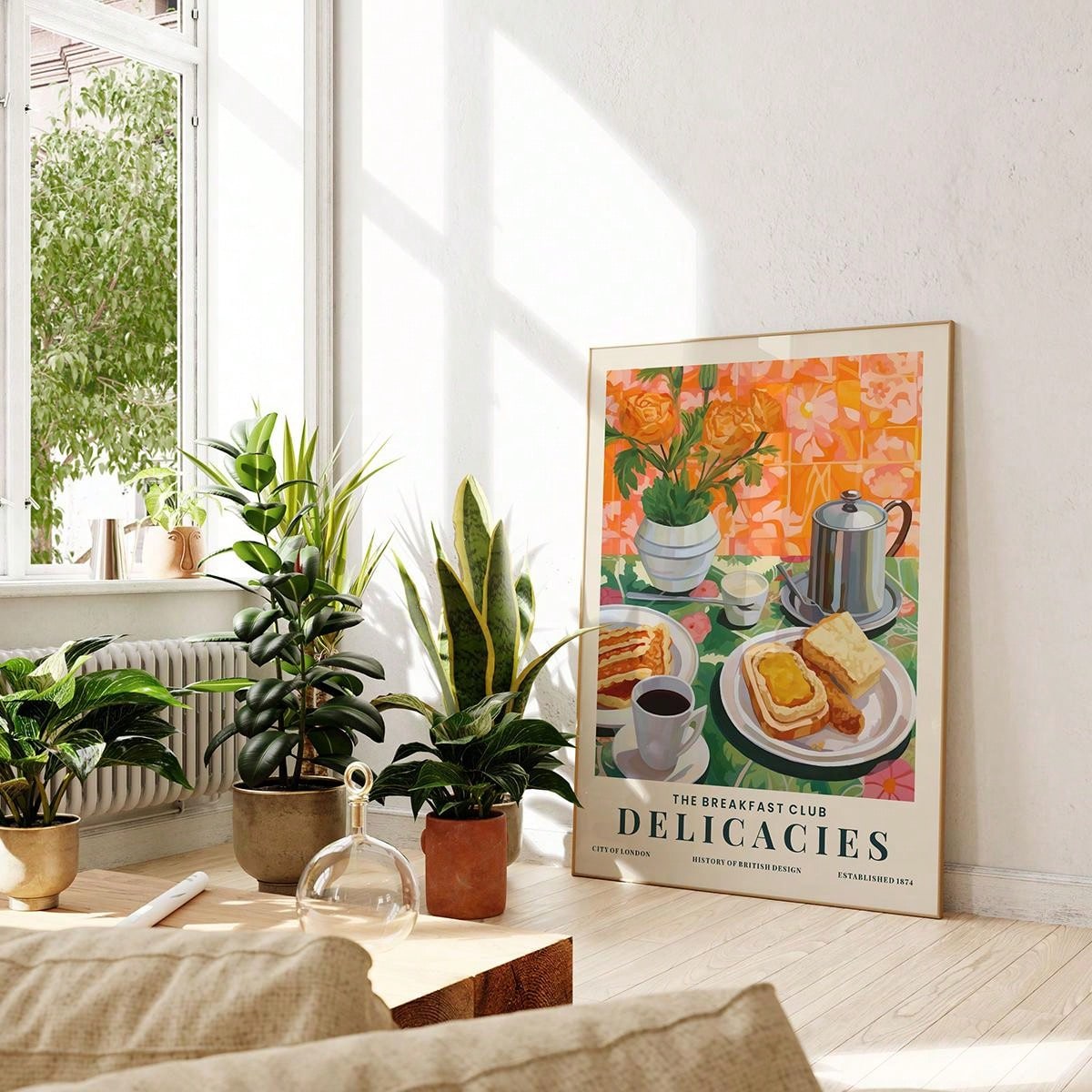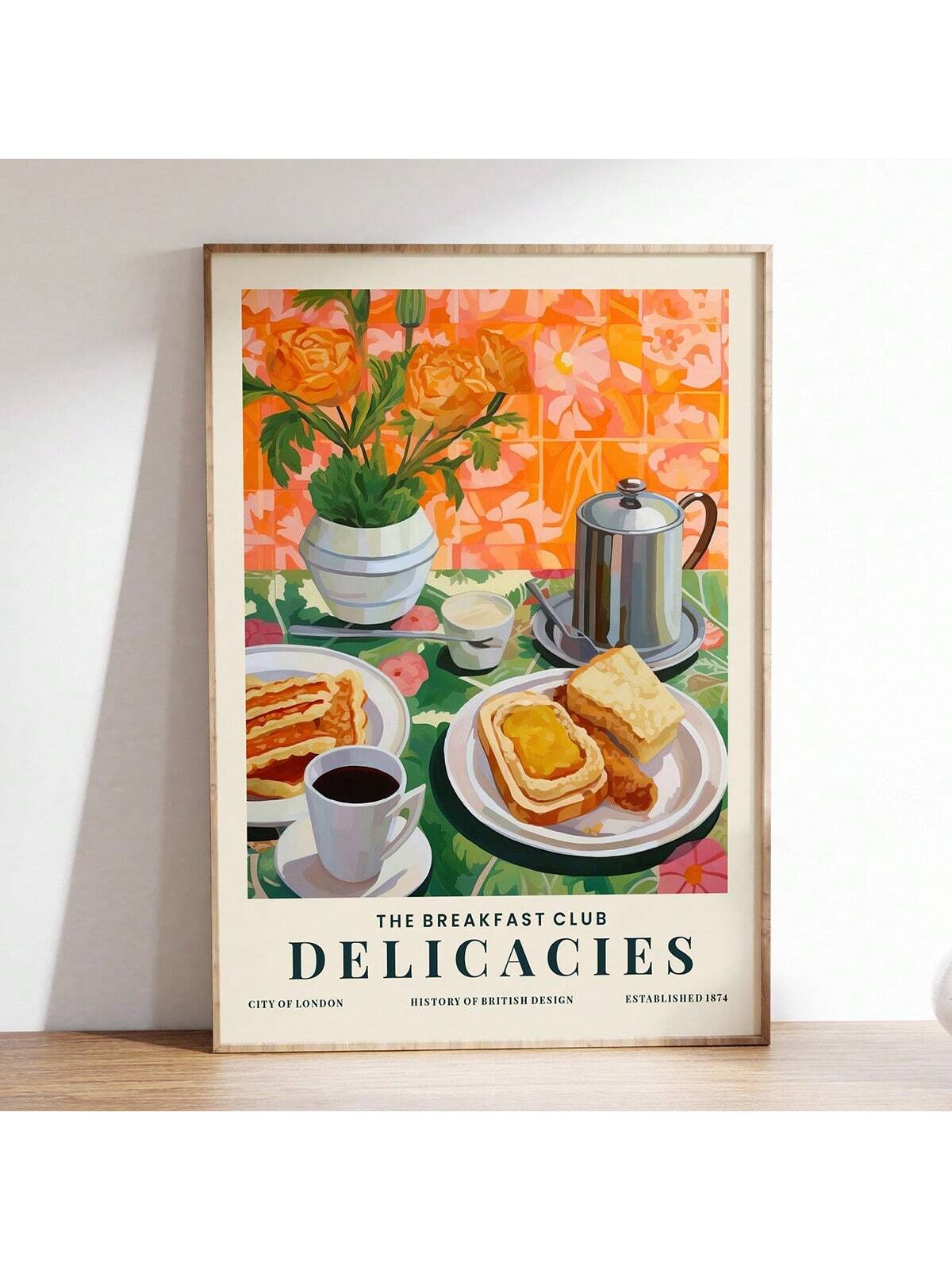 ملصق طبيعة صامتة مطبوع بالشاي والخبز لوجبة الإفطار، ملصق جداري للمطبخ، زهور، ملصقات ملونة، هدية للمحبين للطعام، ديكور ممتع، ملصقات كانفاس للمطبخ المنزلي