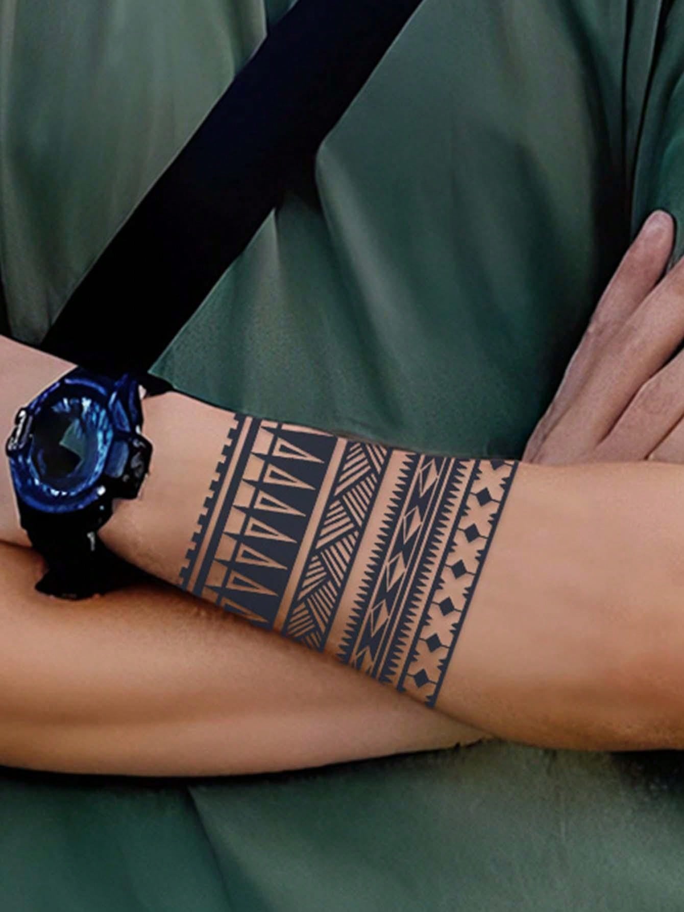 ملصق وشم مؤقت مبتكر للخط المستقيم مقاوم للماء وغير لامع للذراع أو المعصم للرجال تاتو تاتو ابيض ملصق ووشمشم وشم ملصق وشم وشم