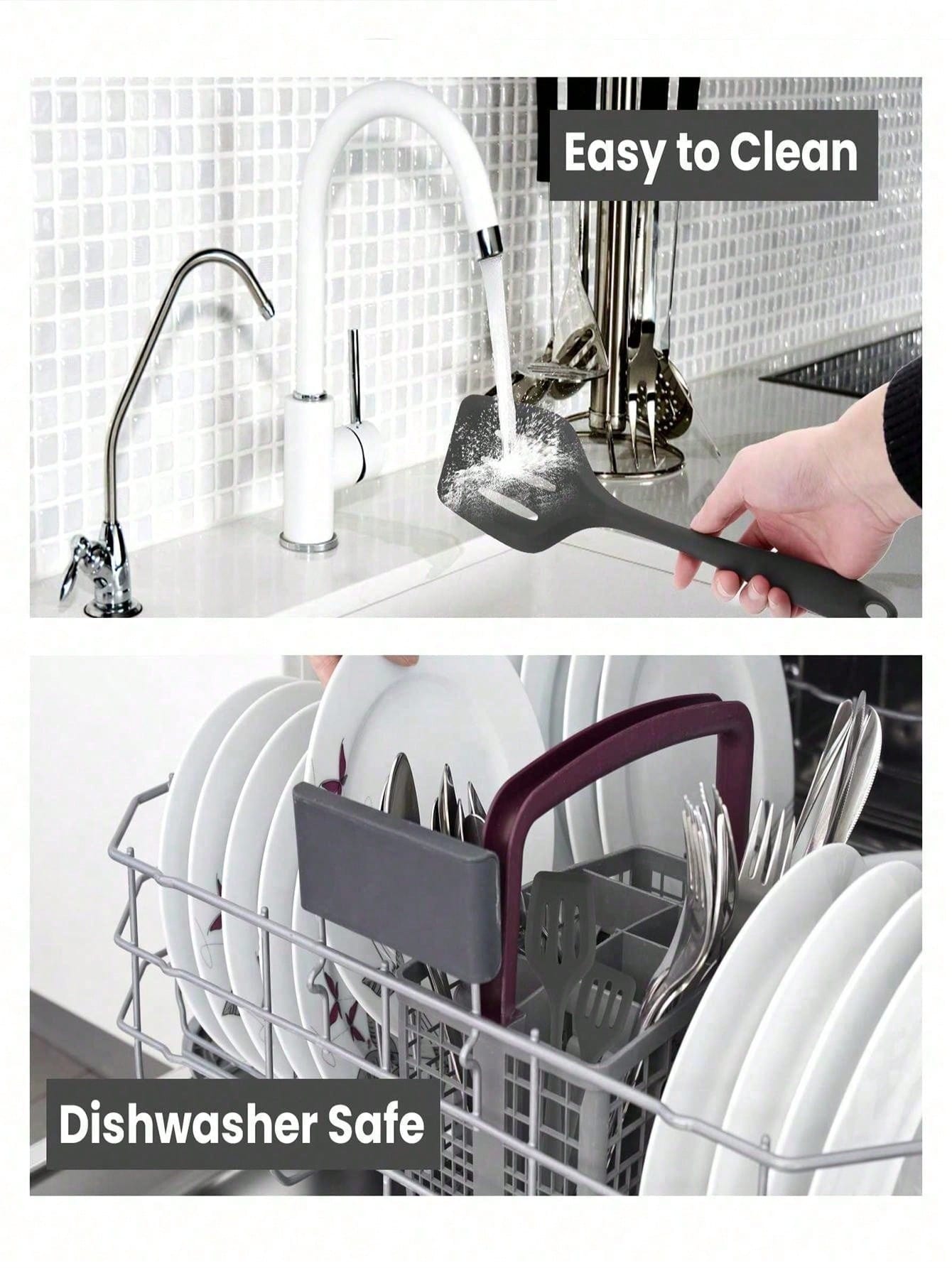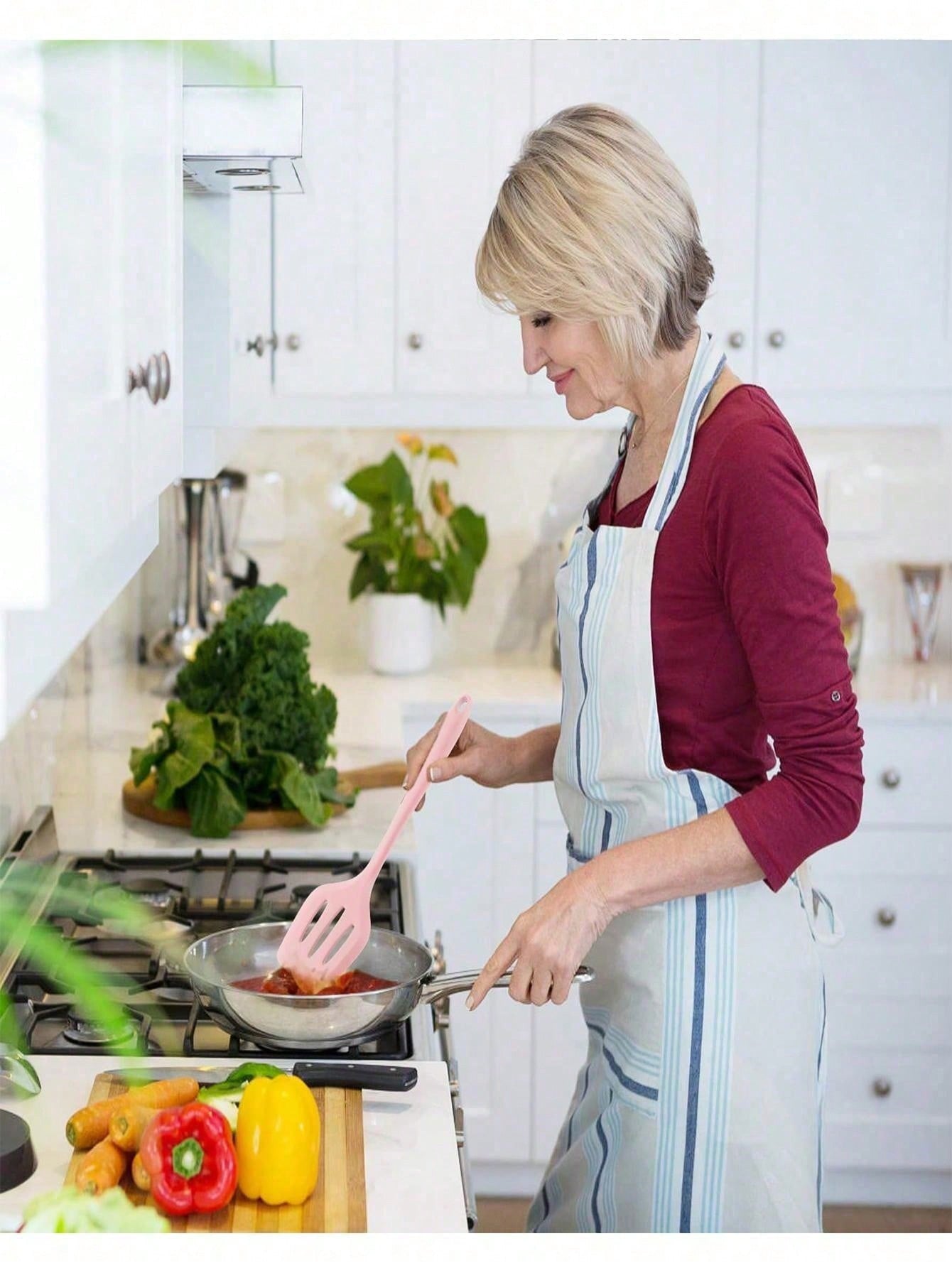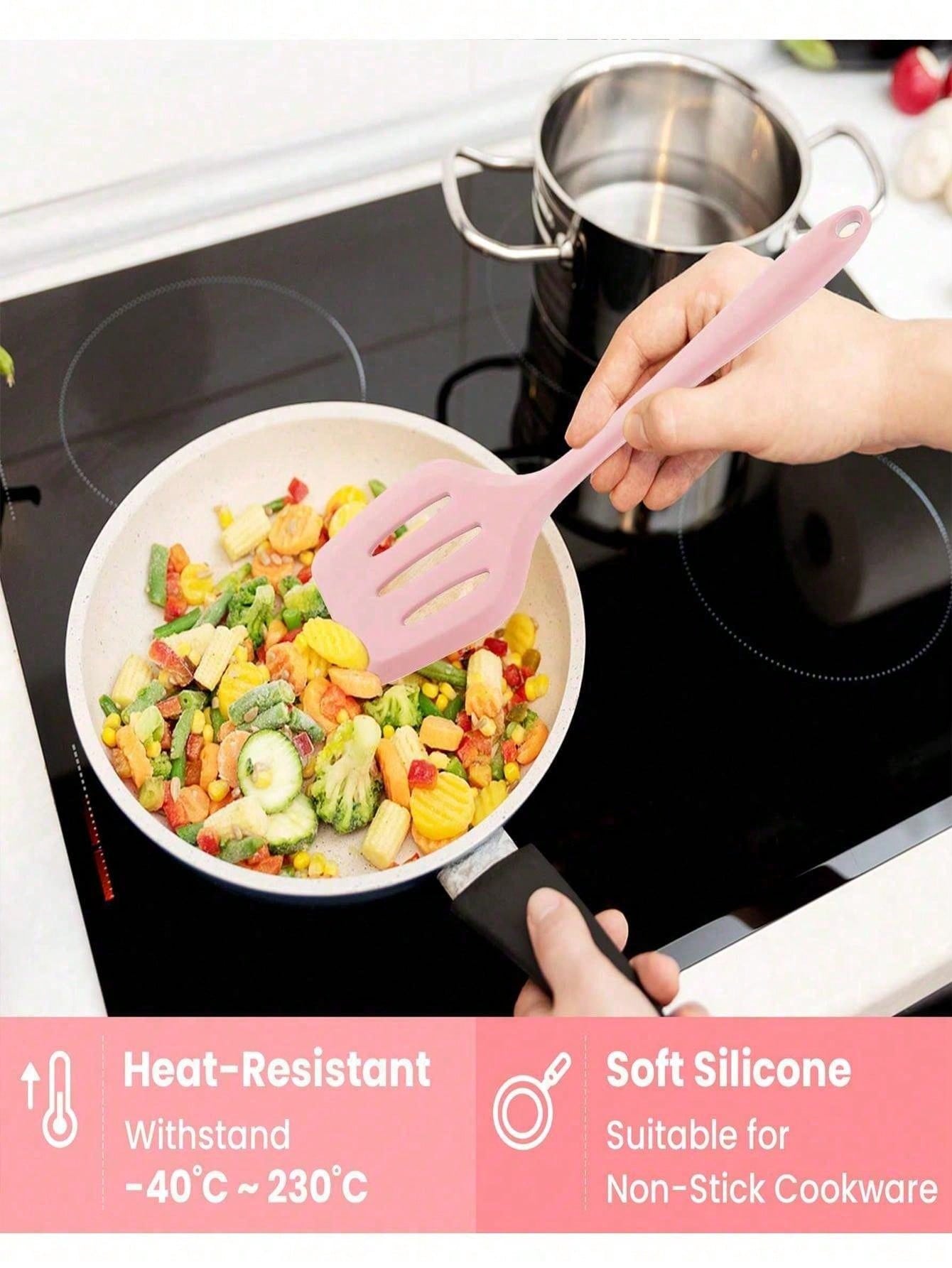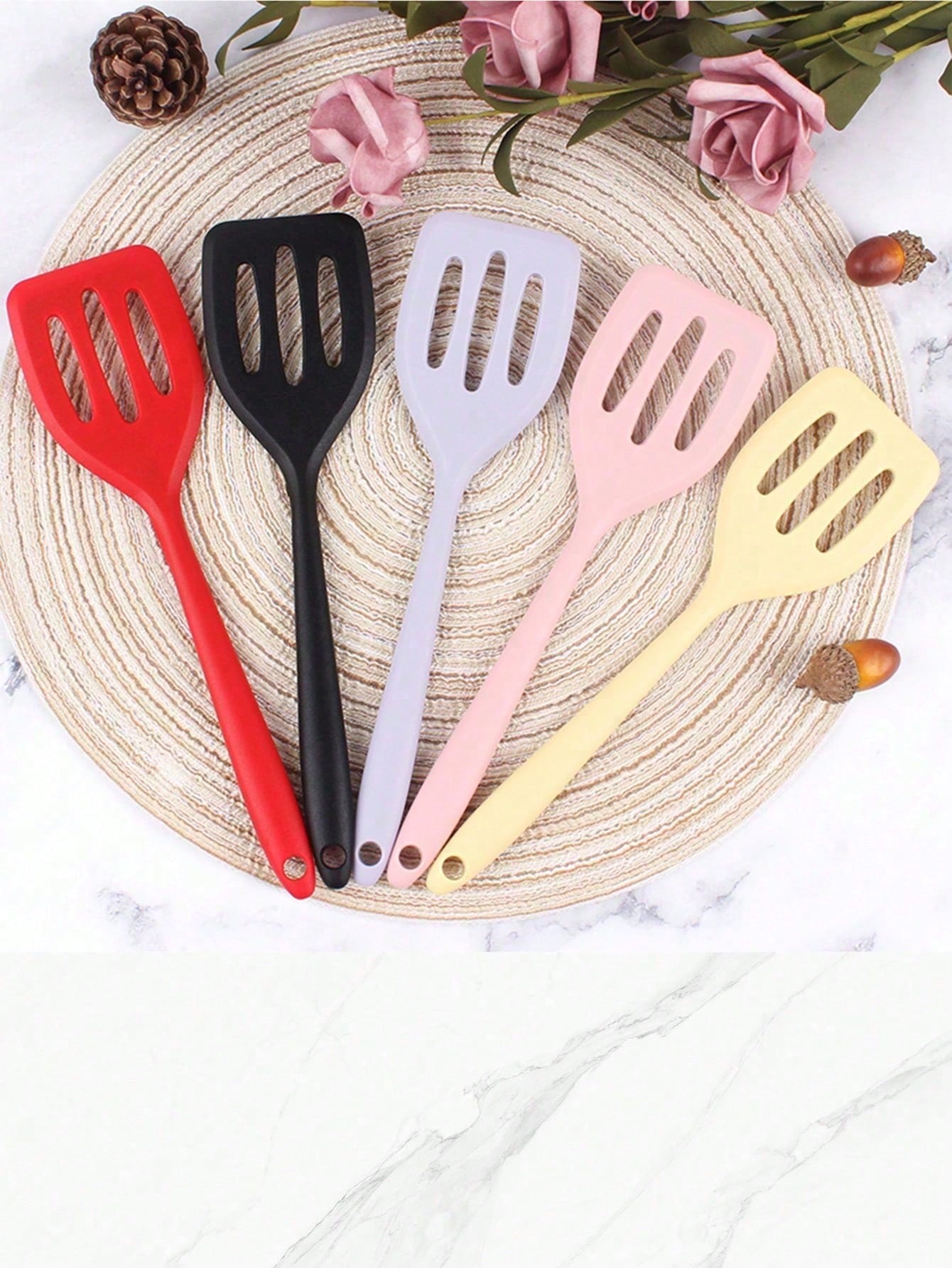 ملعقة مثقبة سيليكونية بمقبض ، ملعقة صغيرة لا تلتصق للأسماك، اللحوم المشوية والمقلاة السطحية ، مقاومة للحرارة ومملعة سيليكونية متينة وسهلة التنظيف