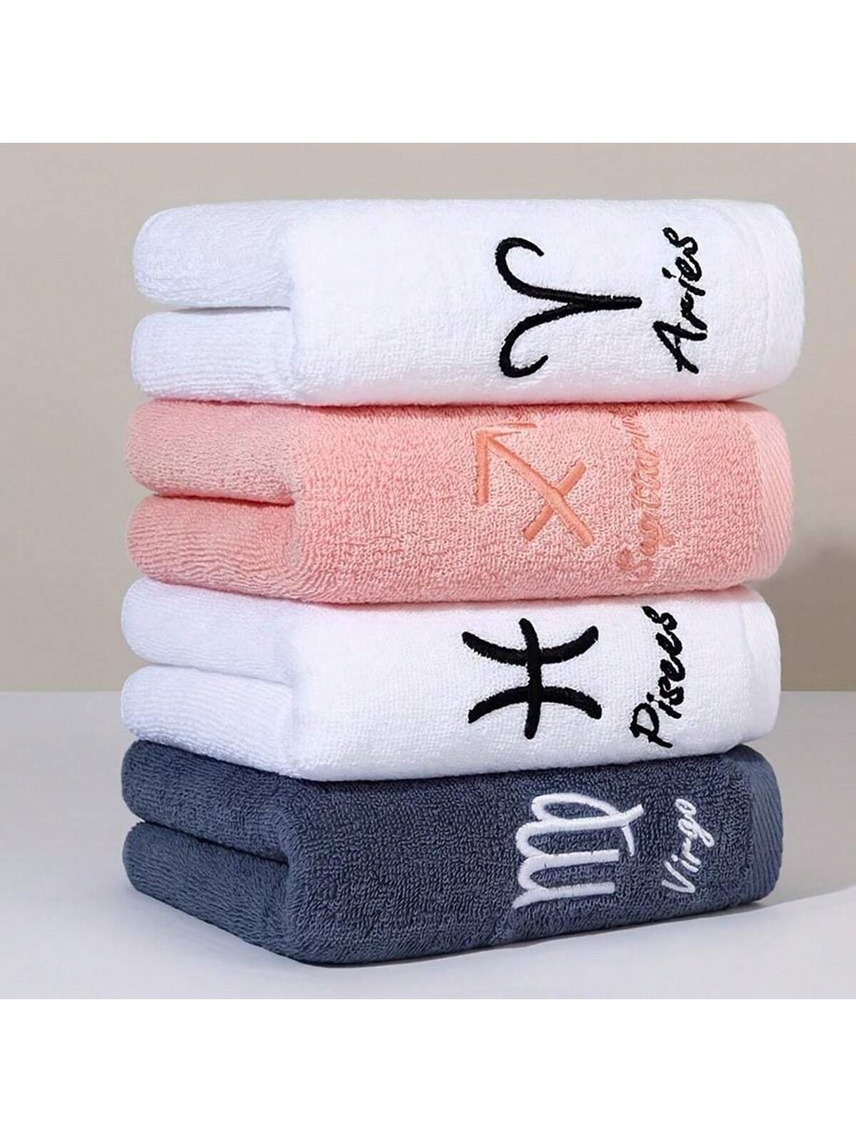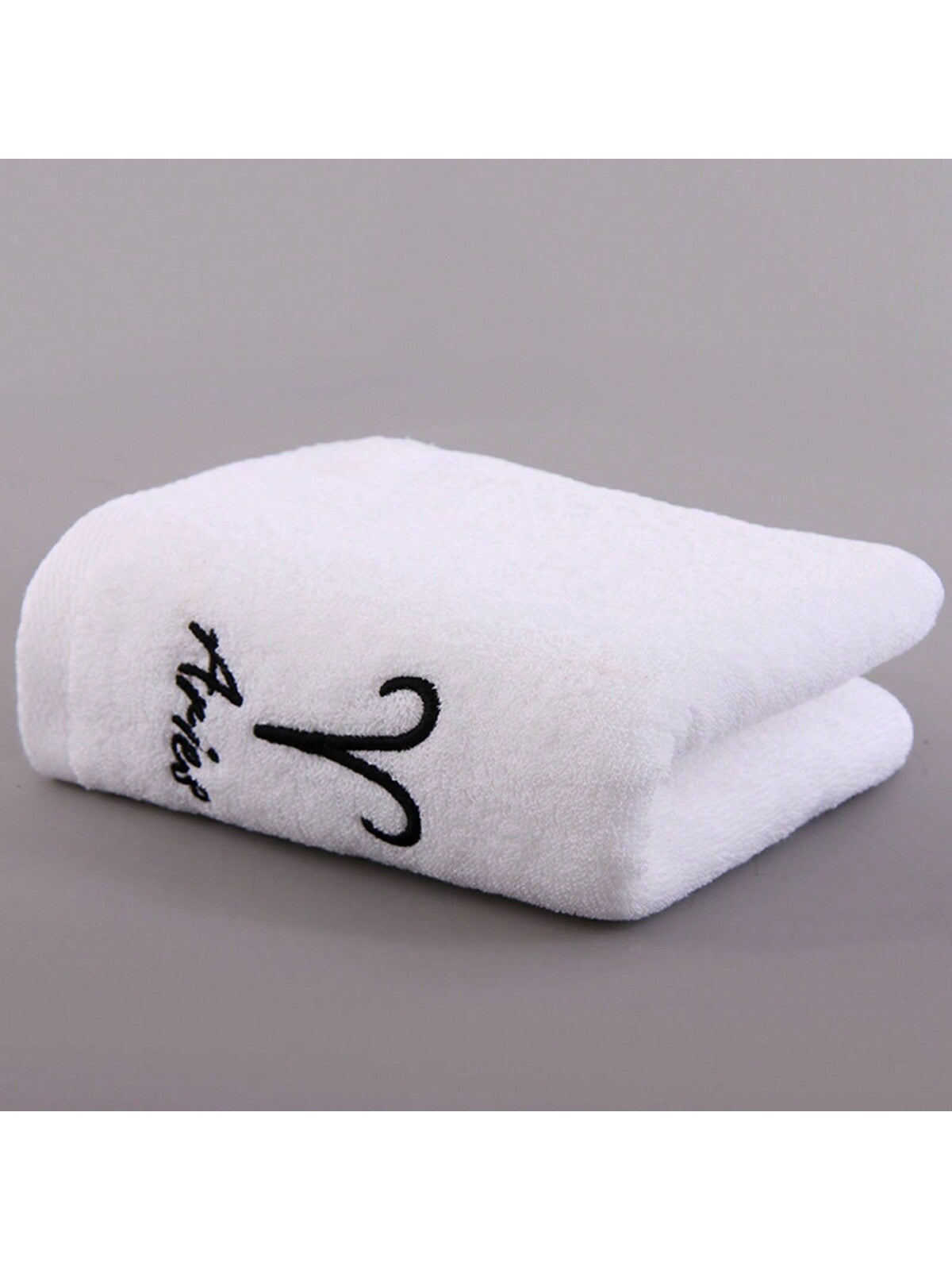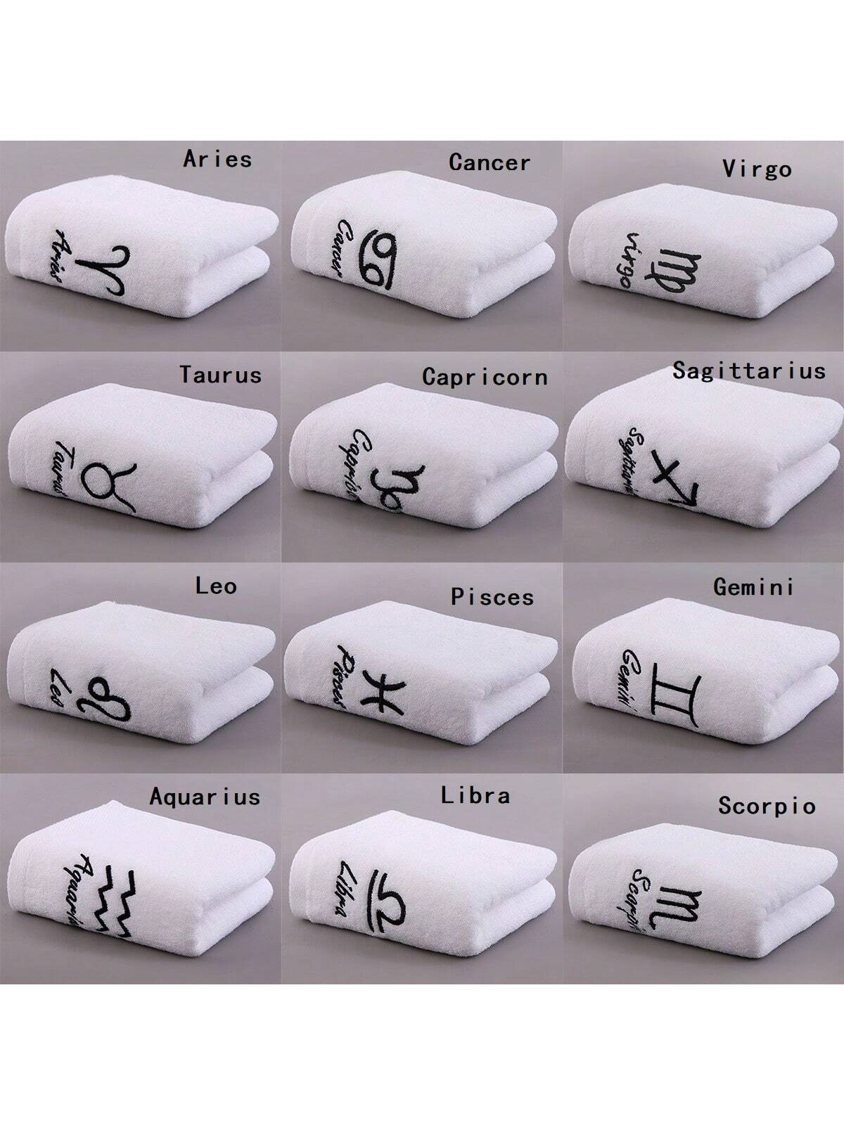 منشفة بيضاء ناعمة وامتصاصية مع تطريز برج الفلك، مناسبة للاستحمام وغسل الوجه