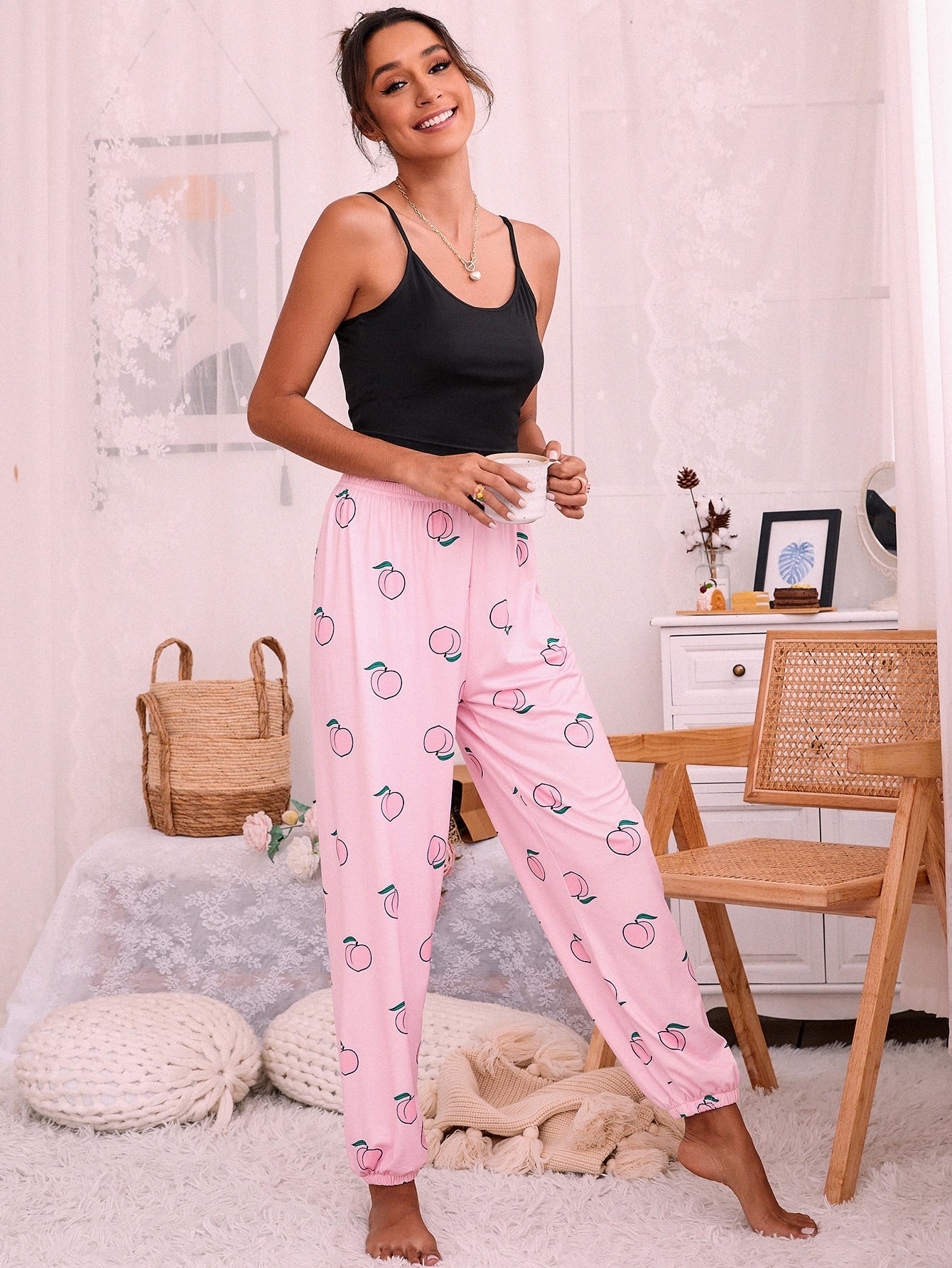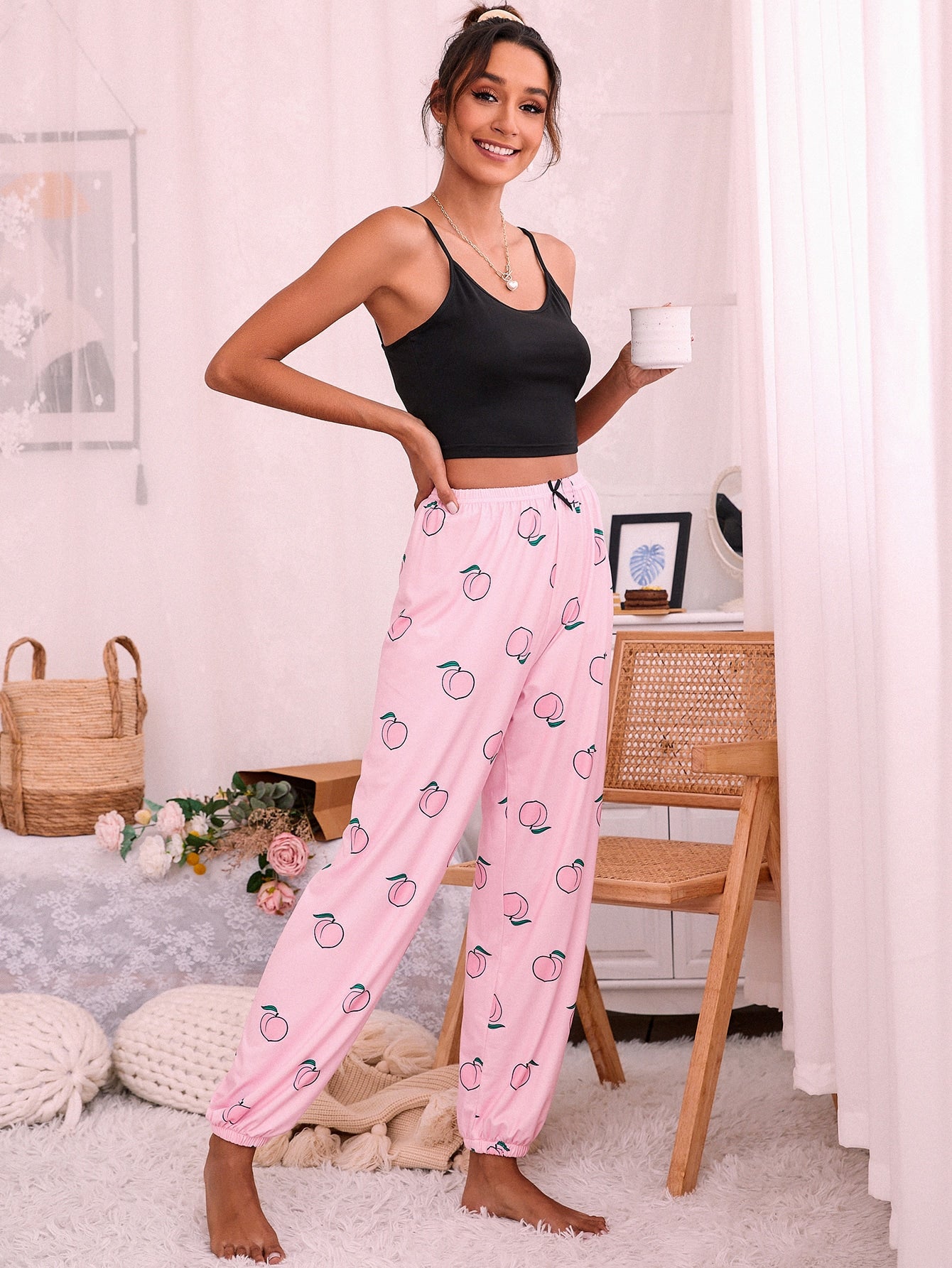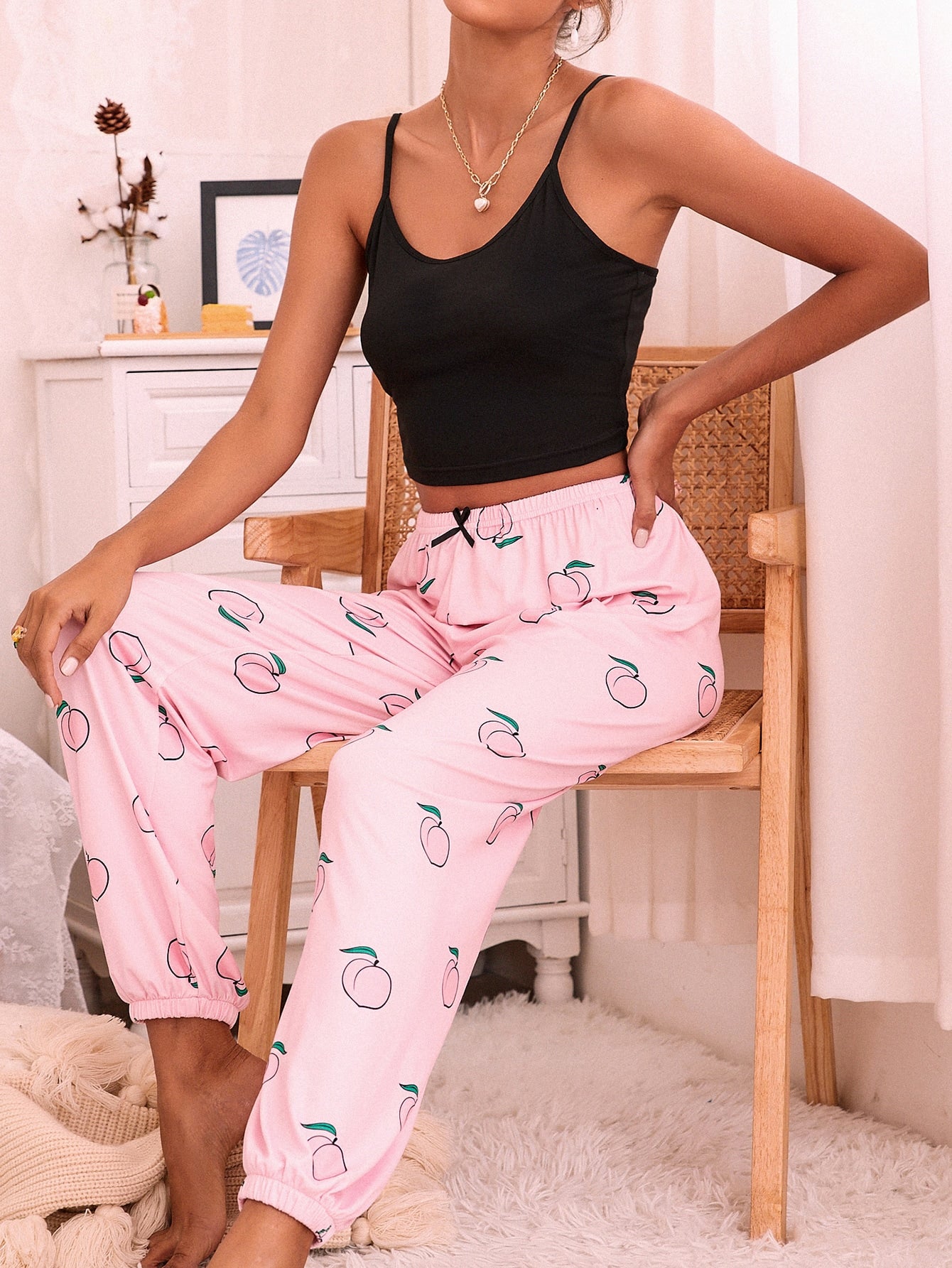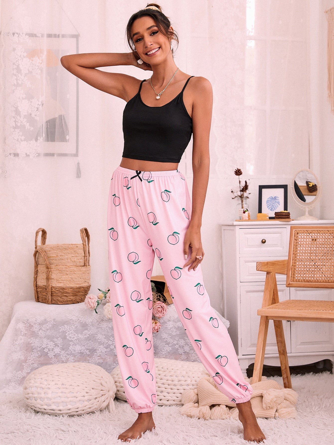 موحدة اللون صدرية كامي و طباعة الخوخ بنطلون طقم بيجامة