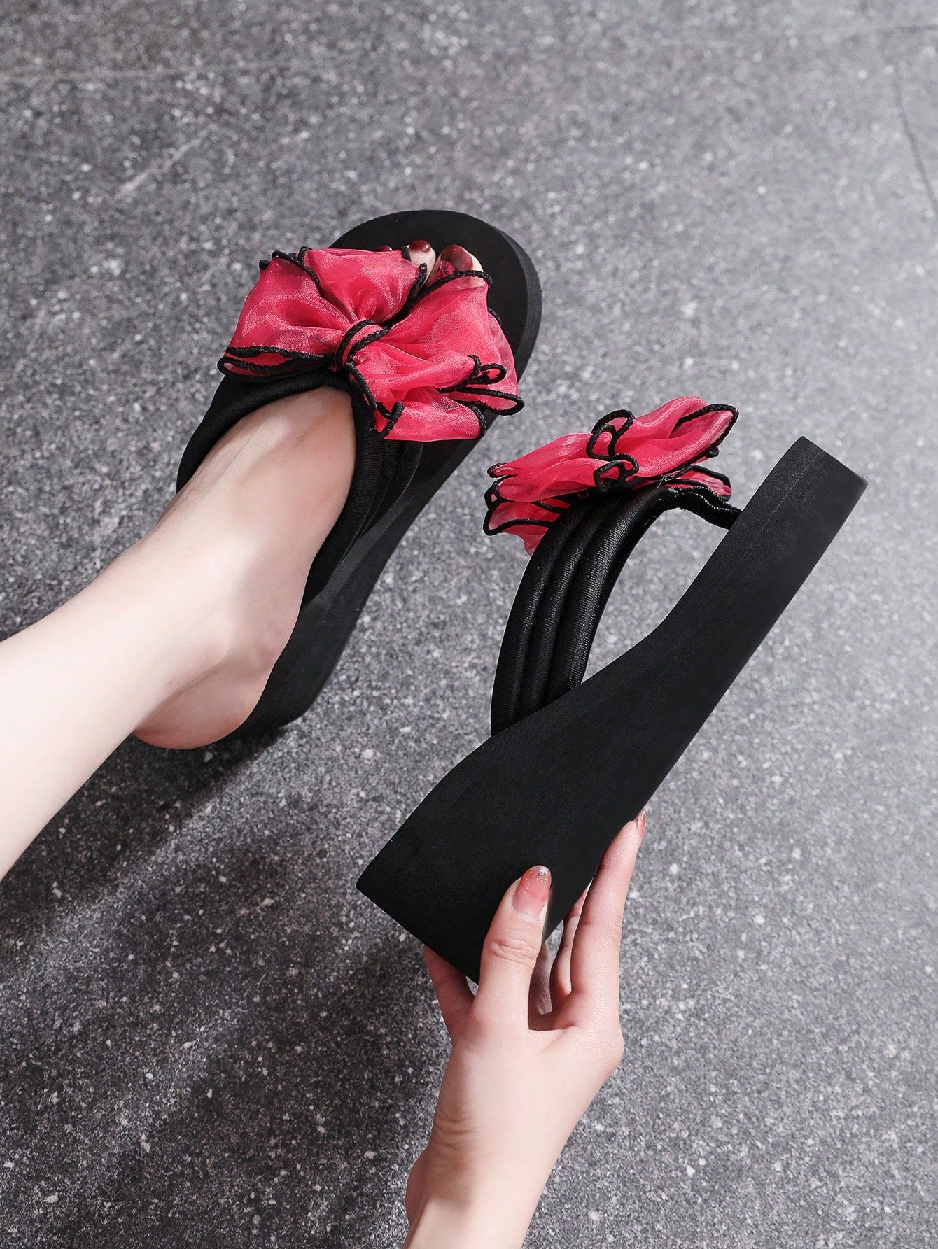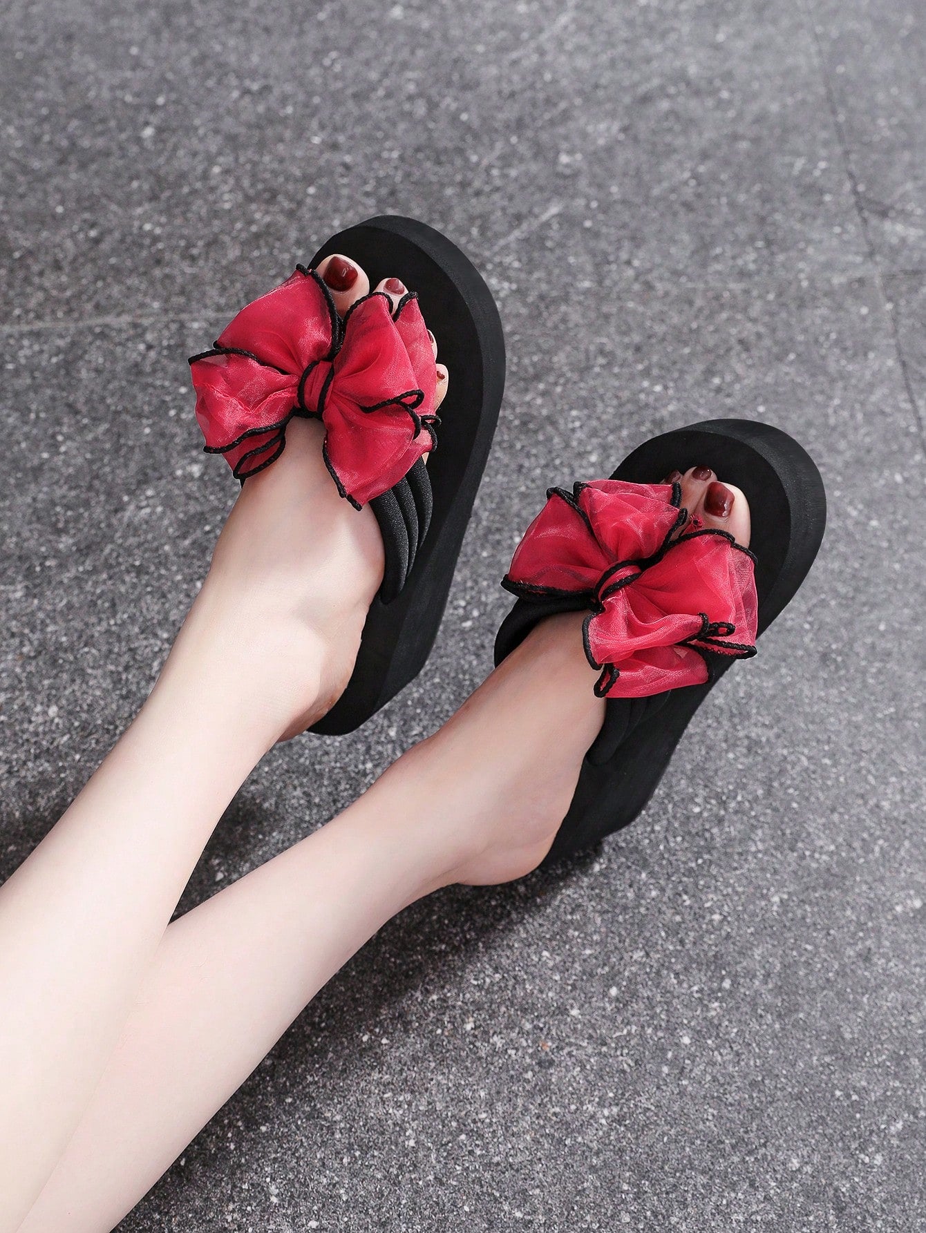 موضة شباشب للنساء , مزخرف بعقدة الفراشة اصبع قدم تصميم شبشب