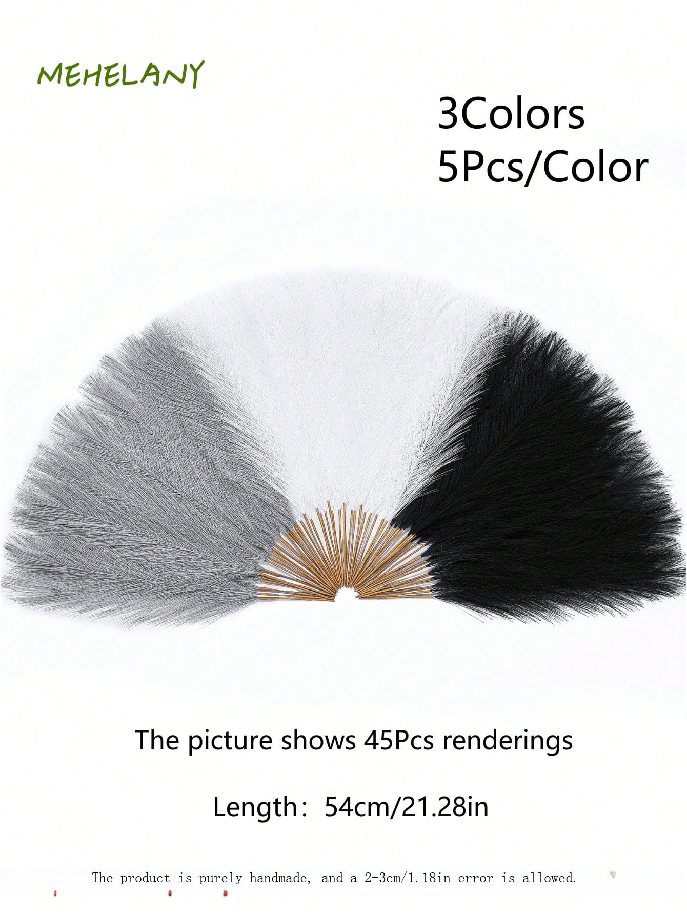 نباتات بامباس اصطناعية 15 قطعة بسيطة 54 سم/21.28 بوصة، زهرة اصطناعية كثيفة سوداء، بيضاء، رمادية ملونة