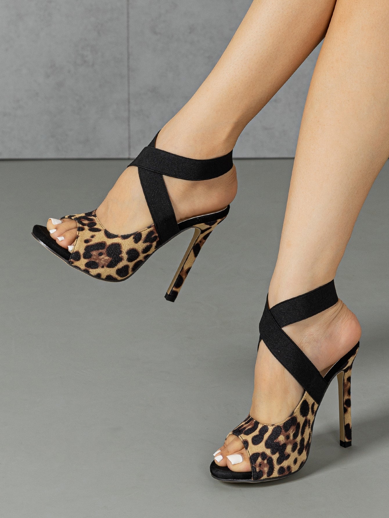 نساء جلد سويدي الاصطناعي نمط الفهد صنادل , باصابع قدم عميق خنجر كعب الصنادل حزام الكاحل