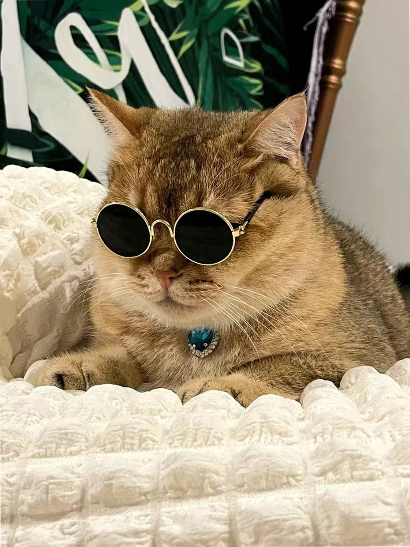 نظارات حيوانات الأليفة الملونة بالذهب والوردي والأخضر، إكسسوار الحيوانات الأليفة المضحكة بتصميم شخصية الدب للقطط والكلاب