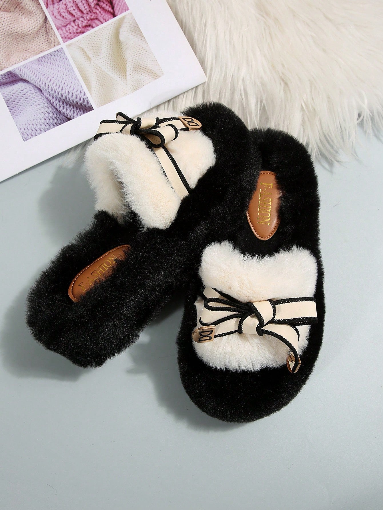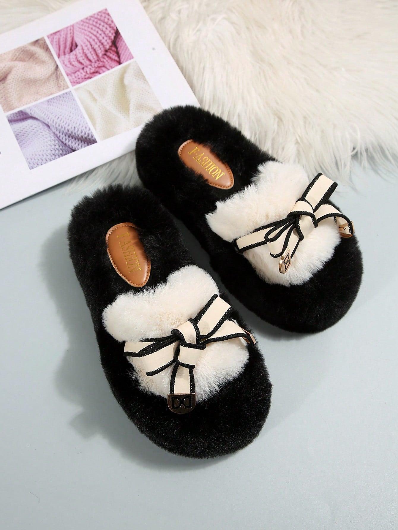 نعال للسيدات بتصميم كاجوال رائج في 2024، سميكة القاعدة ومرتفعة، قطعة شعر دافئة، مقاومة للانزلاق للإستخدام الداخلي والخارجي