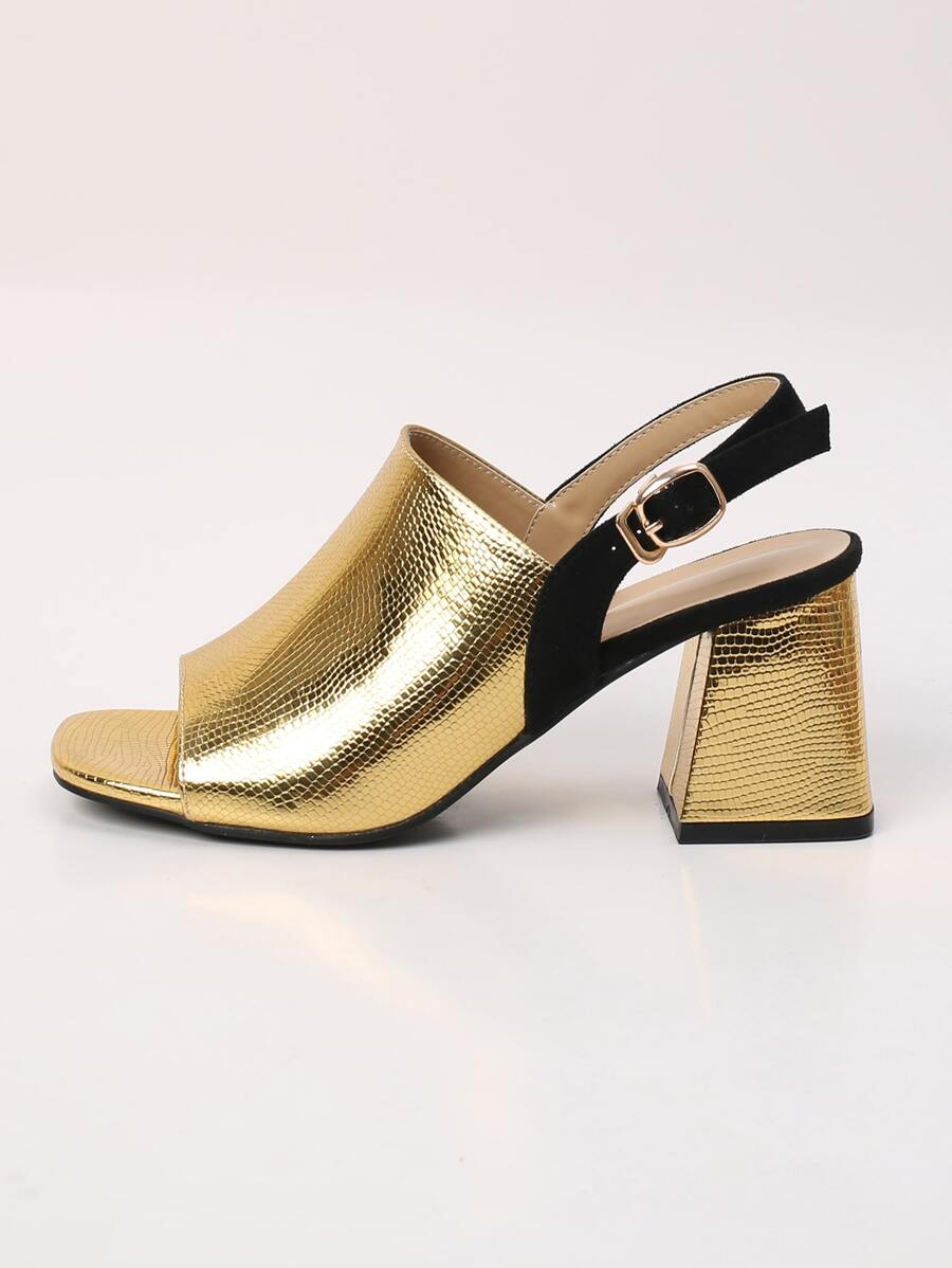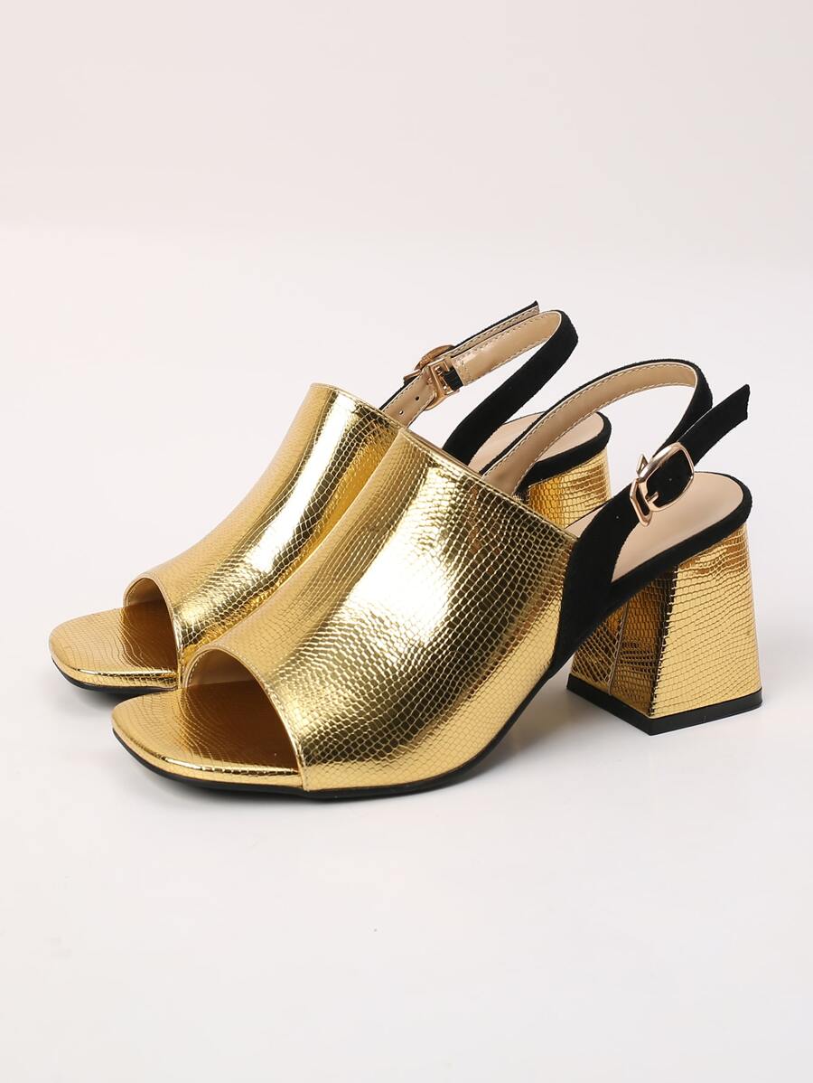 نعال نسائي ، صنادل براقة بكعب منحوتة ضبابية صفراء