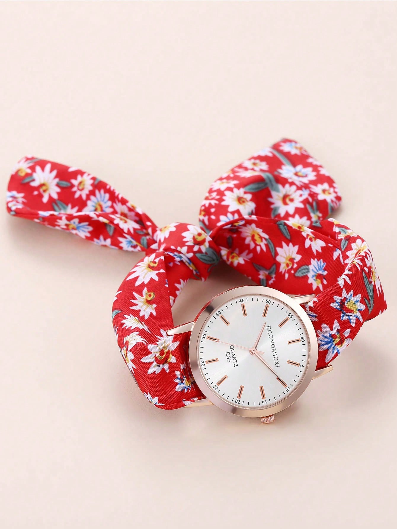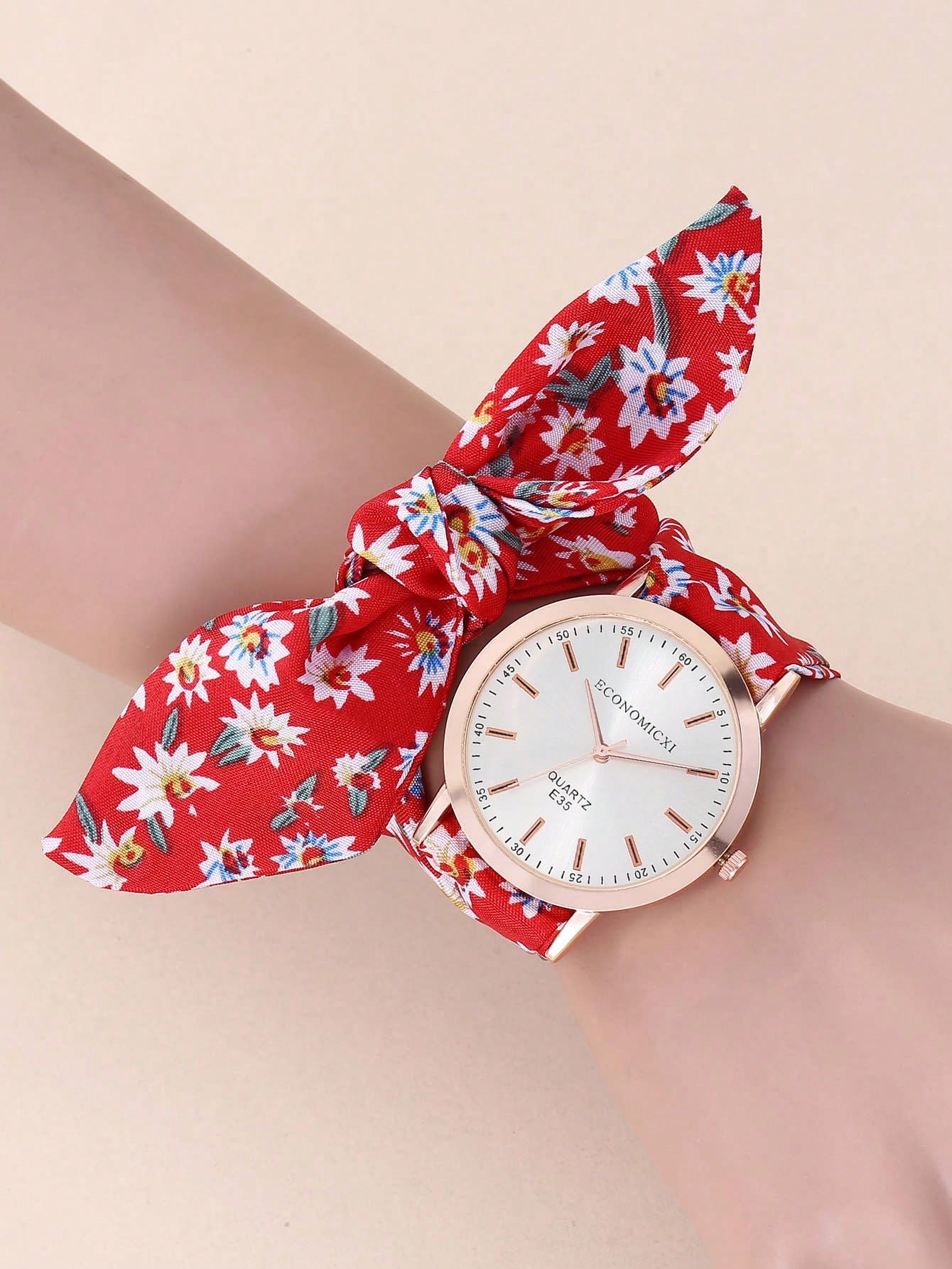 نمط زهري بتصميم وشاح توايلي مخملي حزام الموضة مستدير قرص كوارتز الى الحياة اليومية قطعة واحدة نساء