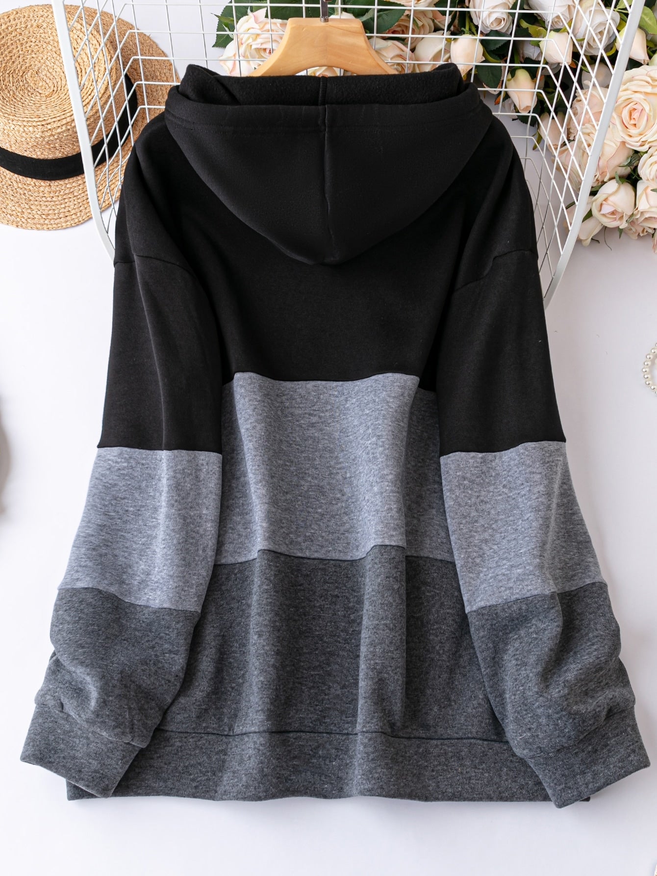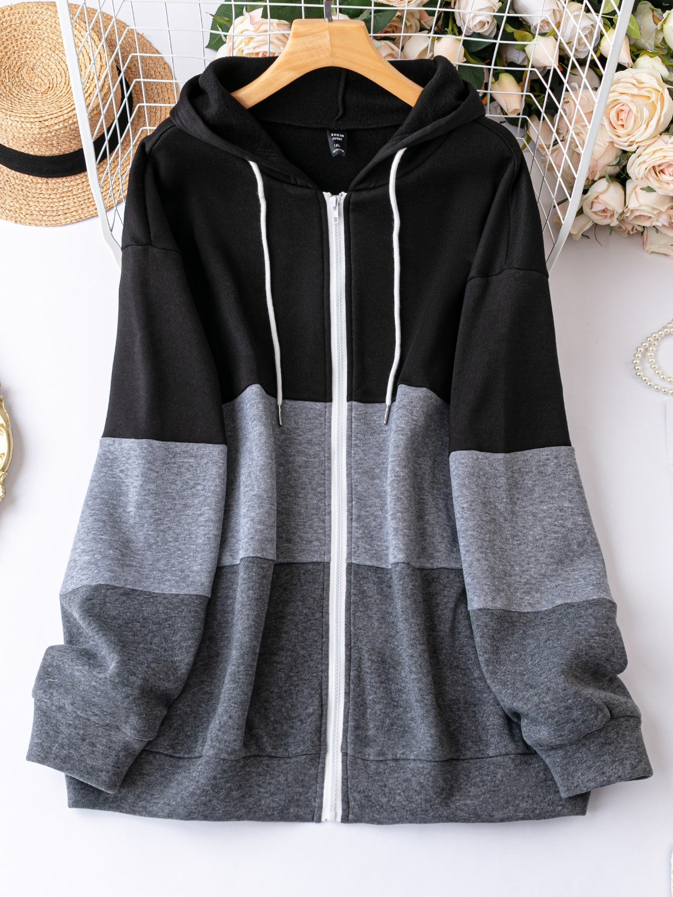هودي ألوان متباينة سستة رباط مقاس كبير